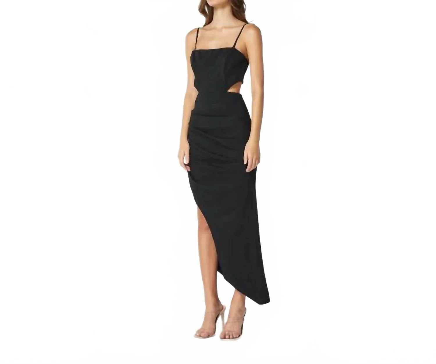 Просто добавьте шлепанцы или мюли, и вы готовы. Ощутите элегантность с платьем-миди Undern от ELLIATT, идеально подходящим для того, чтобы произвести впечатление на любой праздничной вечеринке. Это женское платье-футляр с изящными тонкими бретелями сшито из утонченного черного крепа. Оно отличается четкими линиями и соблазнительным вырезом на талии, обеспечивая современный стиль и очарование. Застежка - молния. Уход - только химчистка. Идеально подходит для Дня святого Валентина и летних мероприятий, это монохромное платье с однотонным узором и квадратным вырезом.