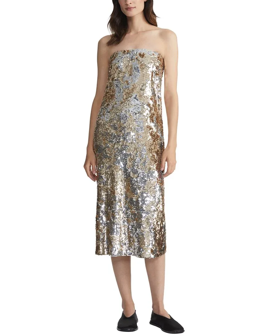 • Платье миди без бретелей, металлизированное, разноцветное