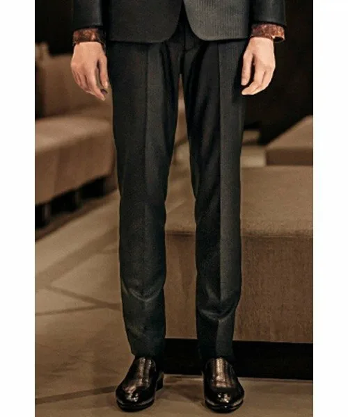 Изготовлены из камвольной шерсти с блестящим теневым жаккардовым узором. Изготовлены из тонкой пряжи 2/90 x 2/90 T/W, специальная обработка и отделка придают им элегантный блеск.