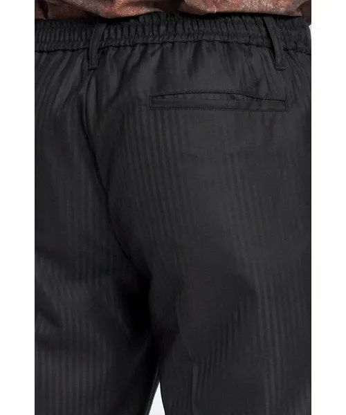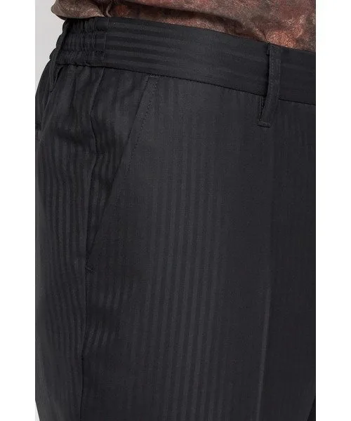 Эти зауженные брюки свободного кроя изготовлены из камвольной шерсти с теневым жаккардовым узором, обладающим элегантным блеском.