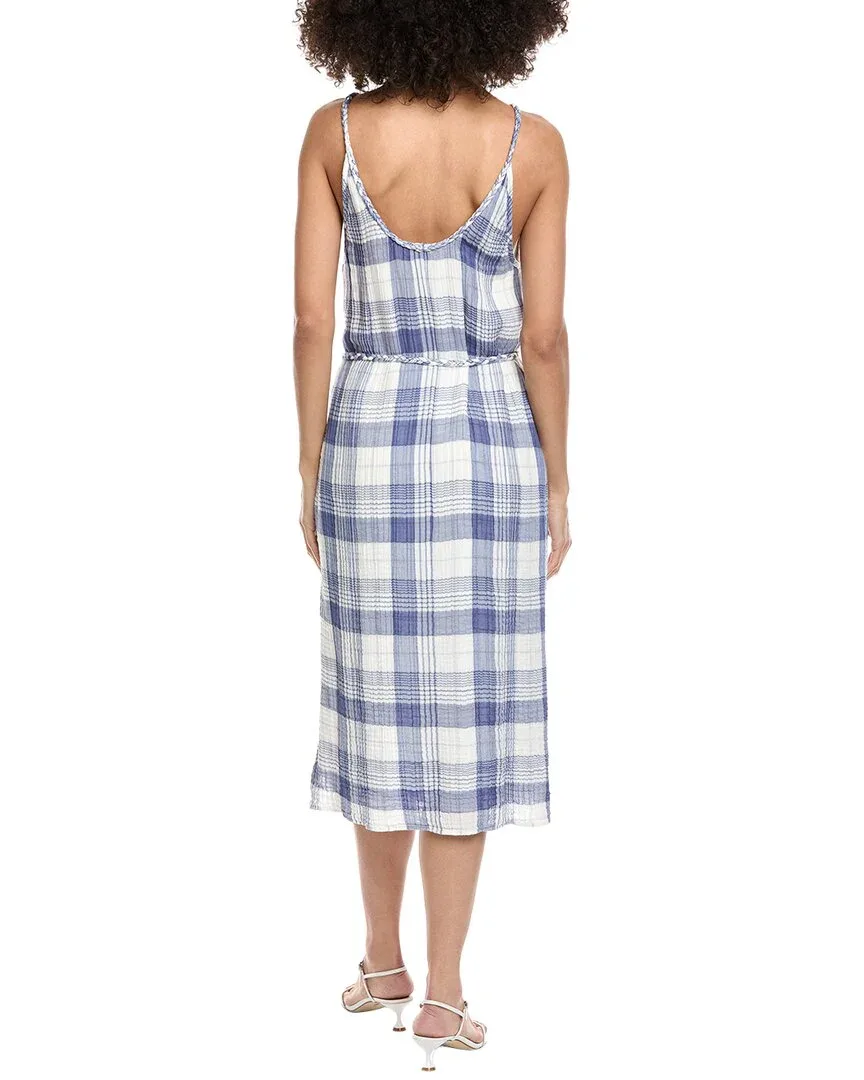 • Платье-миди с плетеным воротником-халтером в клетку «Тихоокеанский синий».