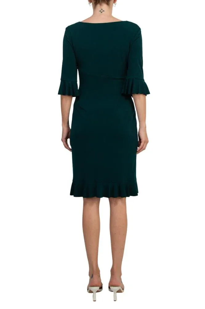 Это платье-футляр с рукавами-колоколами длиной 3/4 отличается шикарным облегающим силуэтом и стильными рукавами-колоколами, создавая утонченный и элегантный образ, подходящий как для деловой обстановки, так и для официальных мероприятий. Универсальный дизайн гарантирует изысканность и удобство ношения для любого случая.