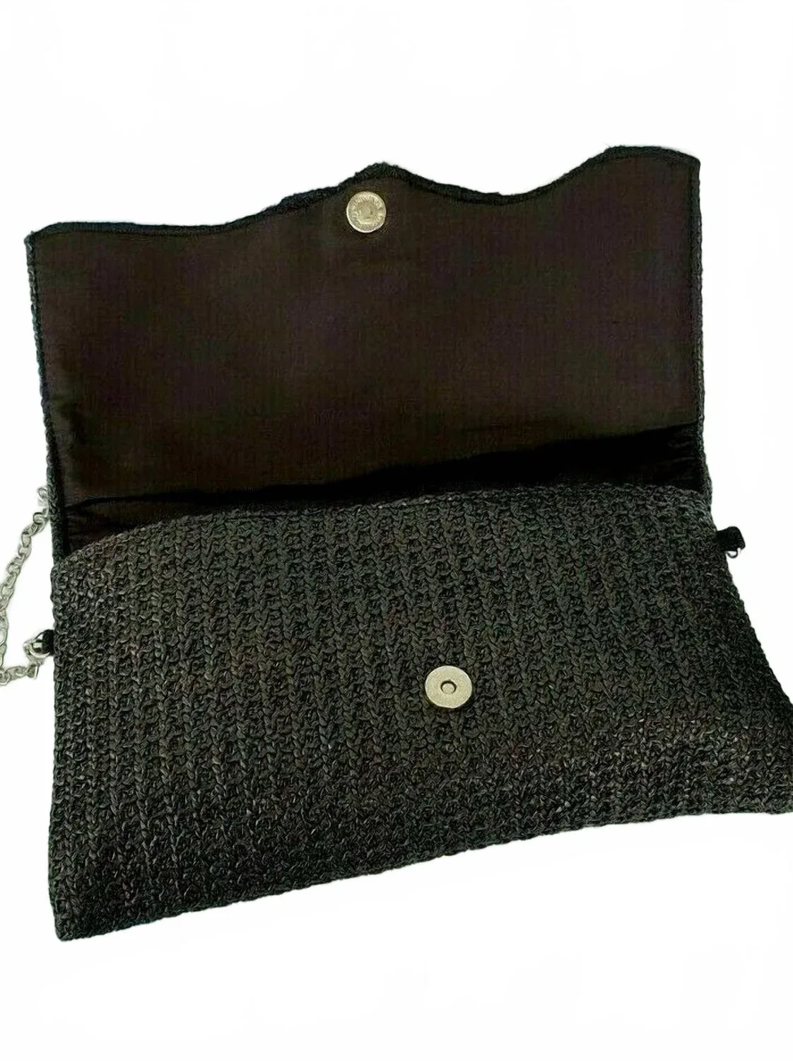 Помада - есть. Мятные конфеты - есть. Кредитная карта - есть. Милая маленькая сумочка, в которую поместится все необходимое. Эта сумочка изготовлена ​​из легкой тканой ткани черного цвета, имеет клапан и магнитную застежку. Внутри есть один накладной карман, размеры: 12 1/4 дюйма в ширину и 7 1/4 дюйма в высоту.