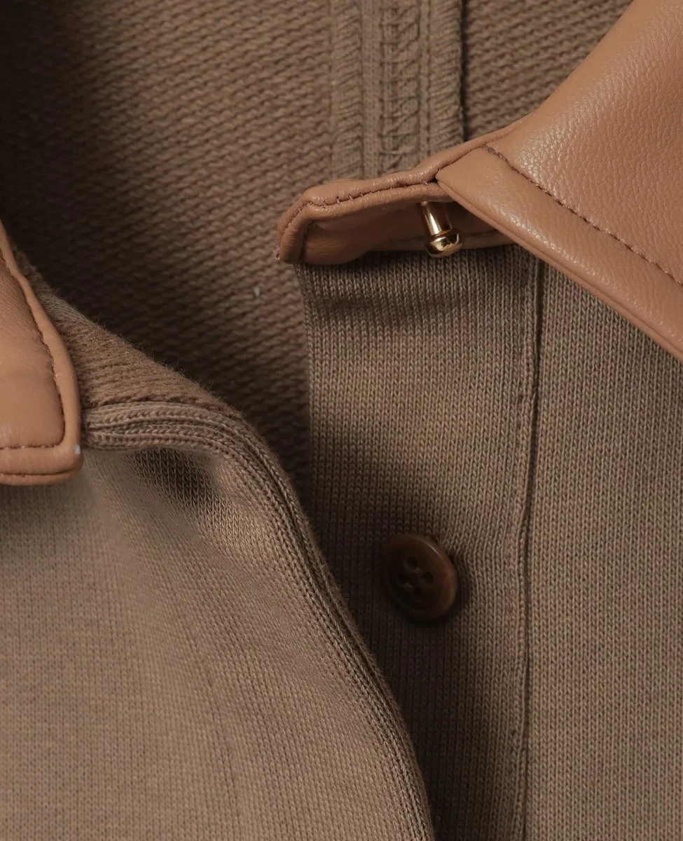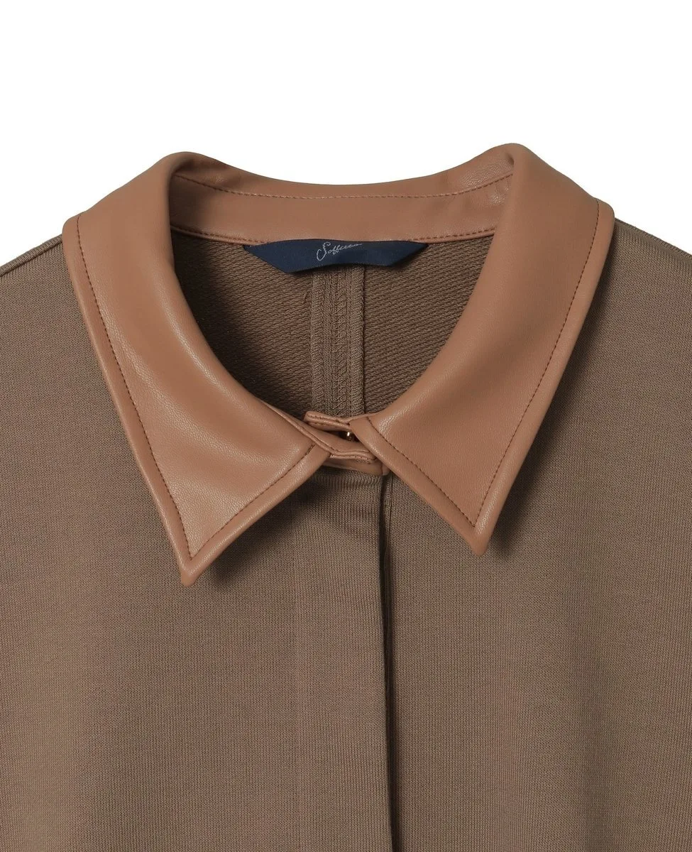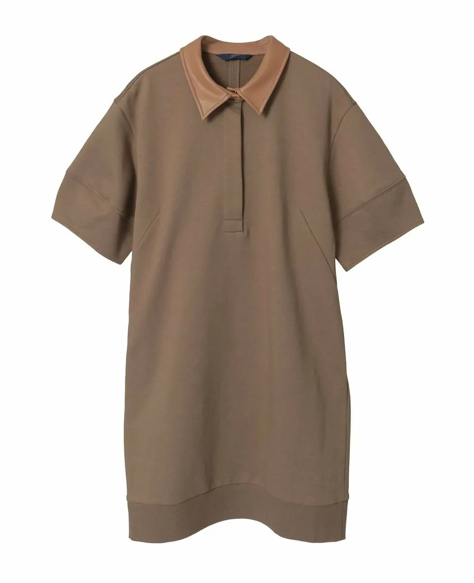 Платье сшито из плотного, упругого флиса с красивой текстурой, создающей структурированный и современный вид. Воротник выполнен из искусственной кожи. С правой стороны есть молния, что делает его идеальным для ношения поверх другой одежды.