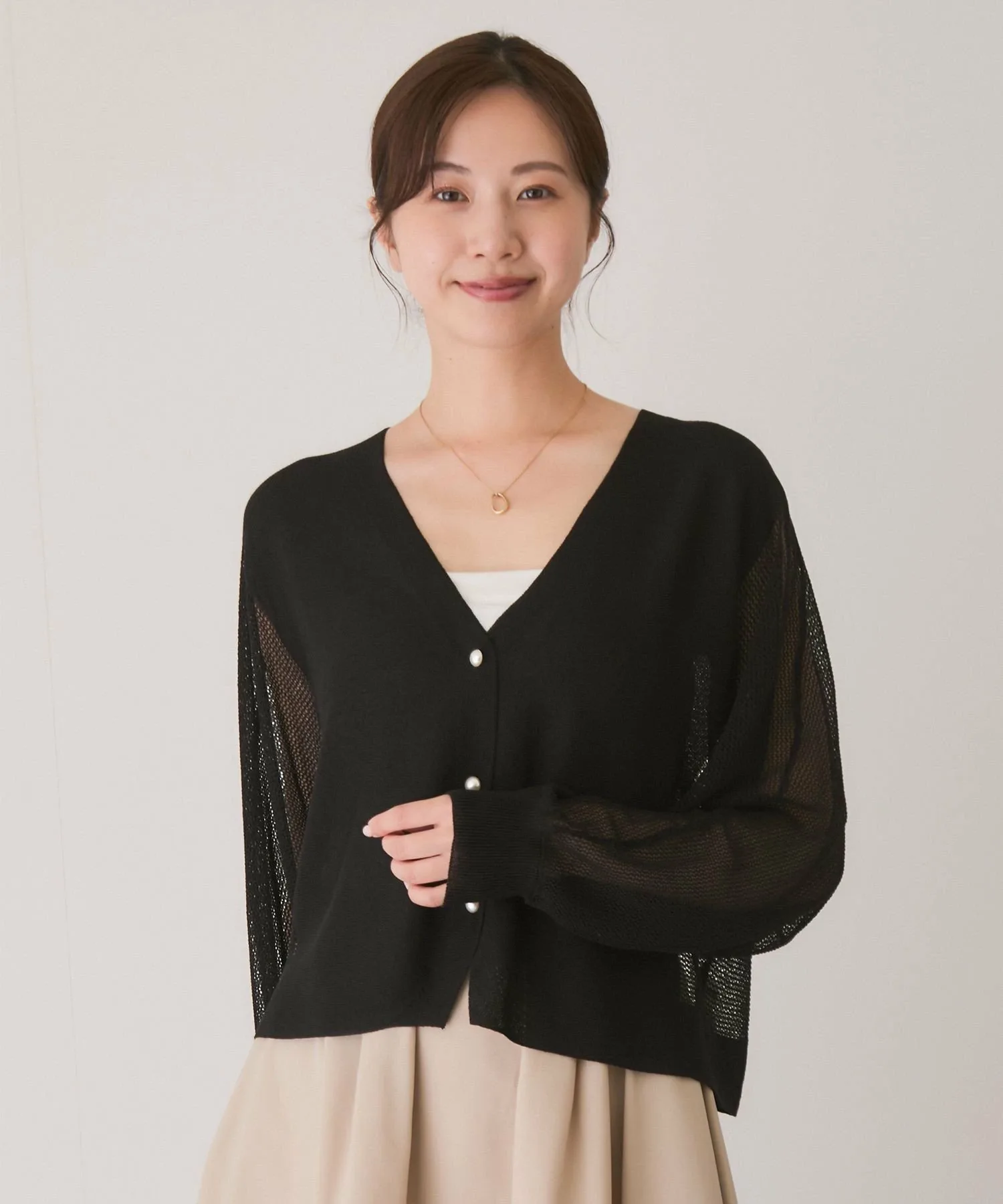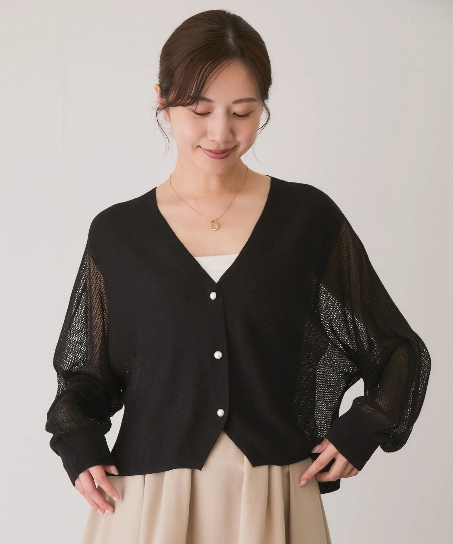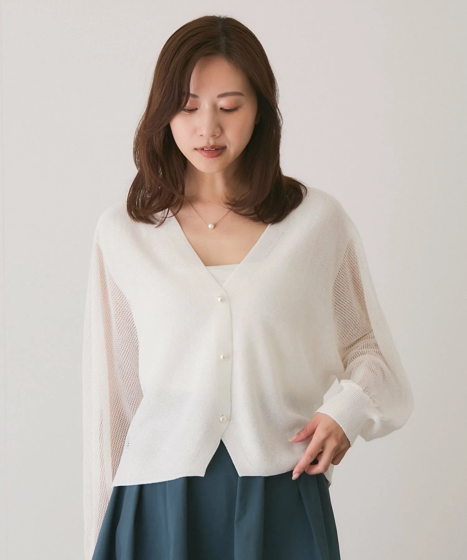 Прозрачный трикотажный кардиган с привлекательным базовым дизайном, который можно носить разными способами [Дизайн/Силуэт]