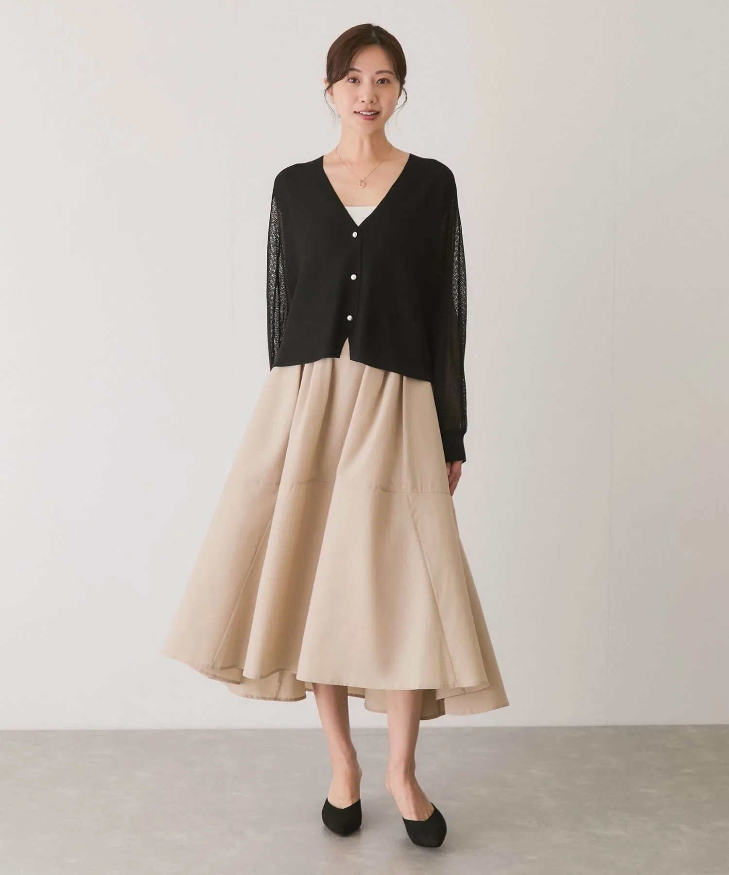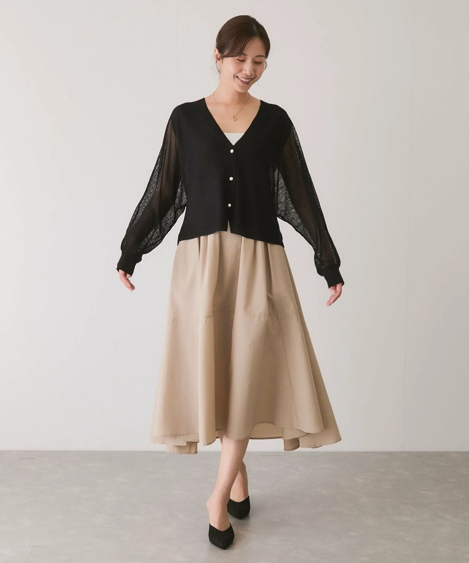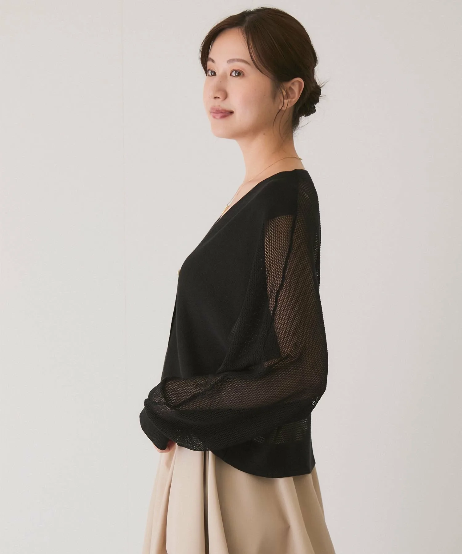Прозрачный трикотажный кардиган с привлекательным базовым дизайном, который можно носить разными способами [Дизайн/Силуэт]
