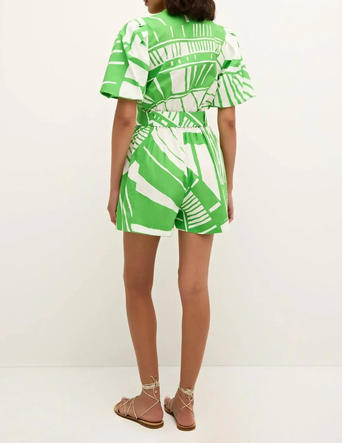 Этот комбинезон с узором изготовлен из 100% хлопка, имеет застежку на пуговицы спереди и пришитый пояс-завязку с трапунто для подчеркивания талии. Модель с широкими рукавами и эластичным поясом сзади сочетает в себе стиль и комфорт благодаря длине внутреннего шва 1,75 дюйма. Машинная стирка в щадящем режиме, сушка на воздухе.