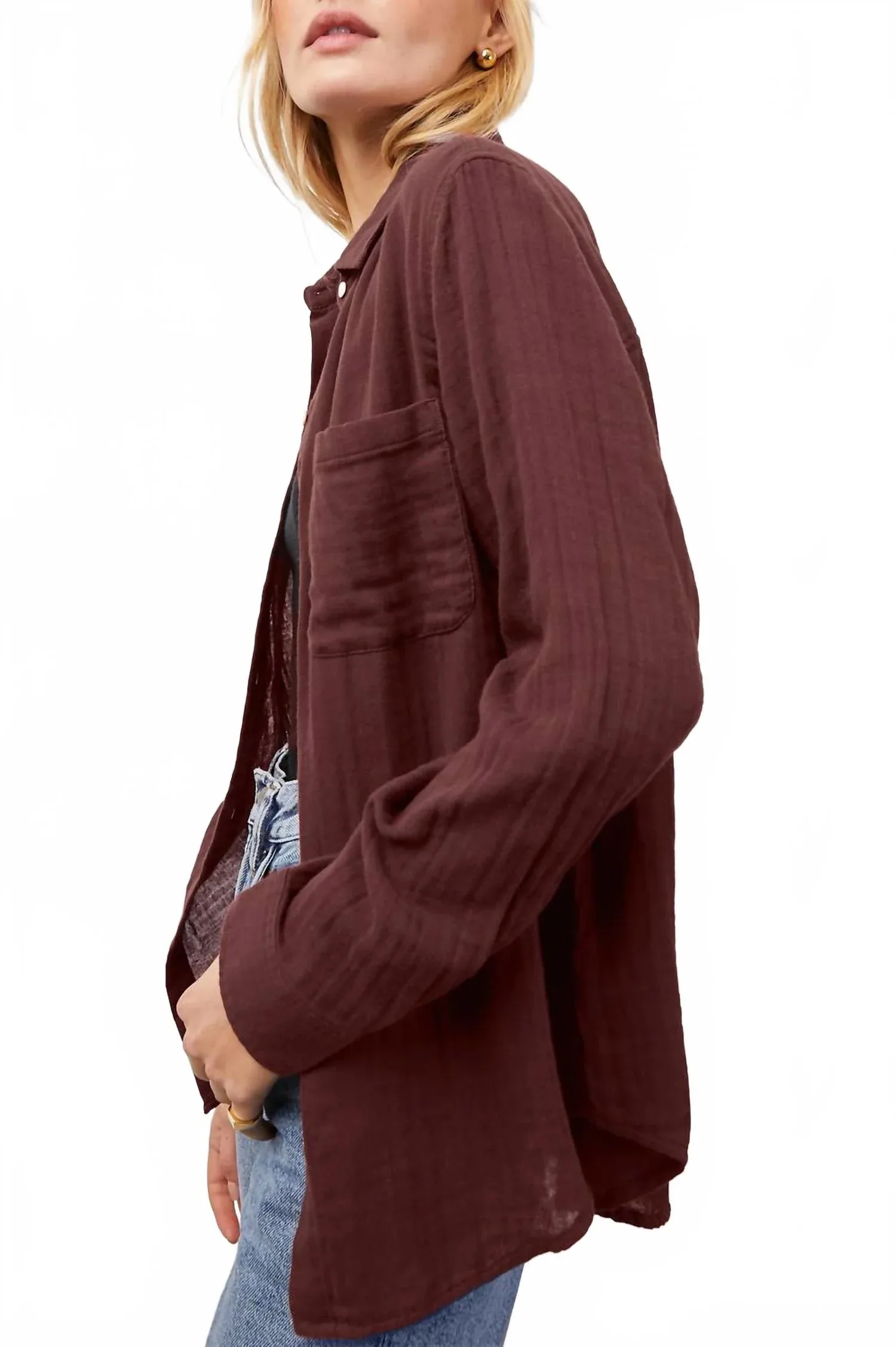 Обновите свой гардероб рубашкой Ellis от Rails - классическим вариантом на пуговицах, выполненным в насыщенном рыжевато-коричневом оттенке. Эта рубашка с длинными рукавами изготовлена из 100% органического хлопка и имеет длину 27,5 дюймов, обеспечивая удобную посадку, подчеркивающую бедра. Она имеет классический воротник и удобные карманы, сочетая минималистичный стиль с практичностью. Рубашка проста в уходе: рекомендуется ручная стирка и сушка на воздухе для достижения наилучших результатов. Застежка на пуговицах обеспечивает надежное закрытие.