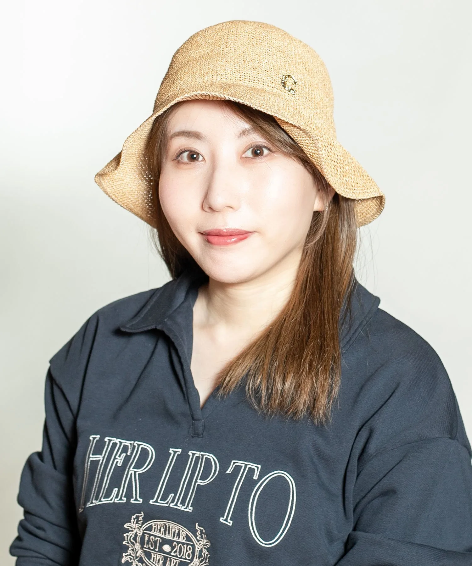 Эта шляпа отличается деликатной отделкой вязаных петель и легкостью. С-образная деталь подчеркивает боковую часть.