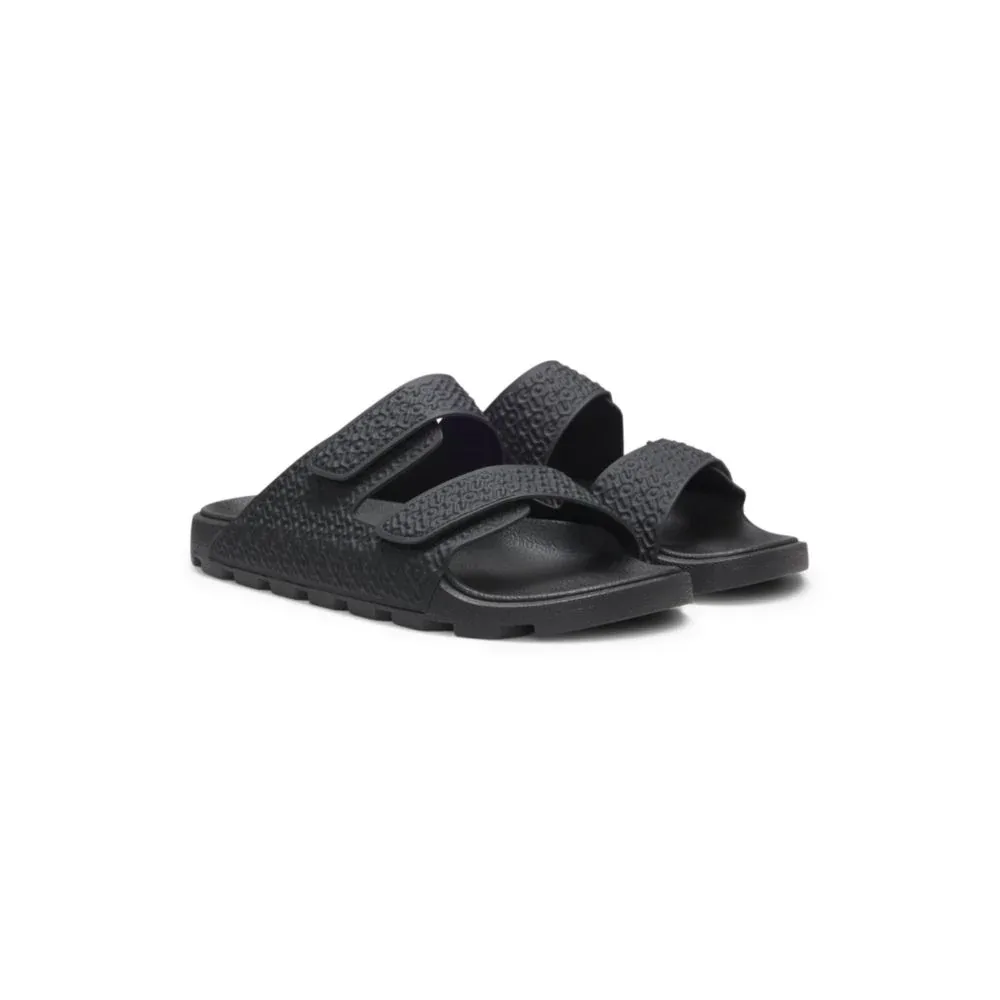 Эти мужские сандалии HUGO с цепкой подошвой украшены монограммой на верхней части. Двойные ремешки на липучках. Сделано в Италии.