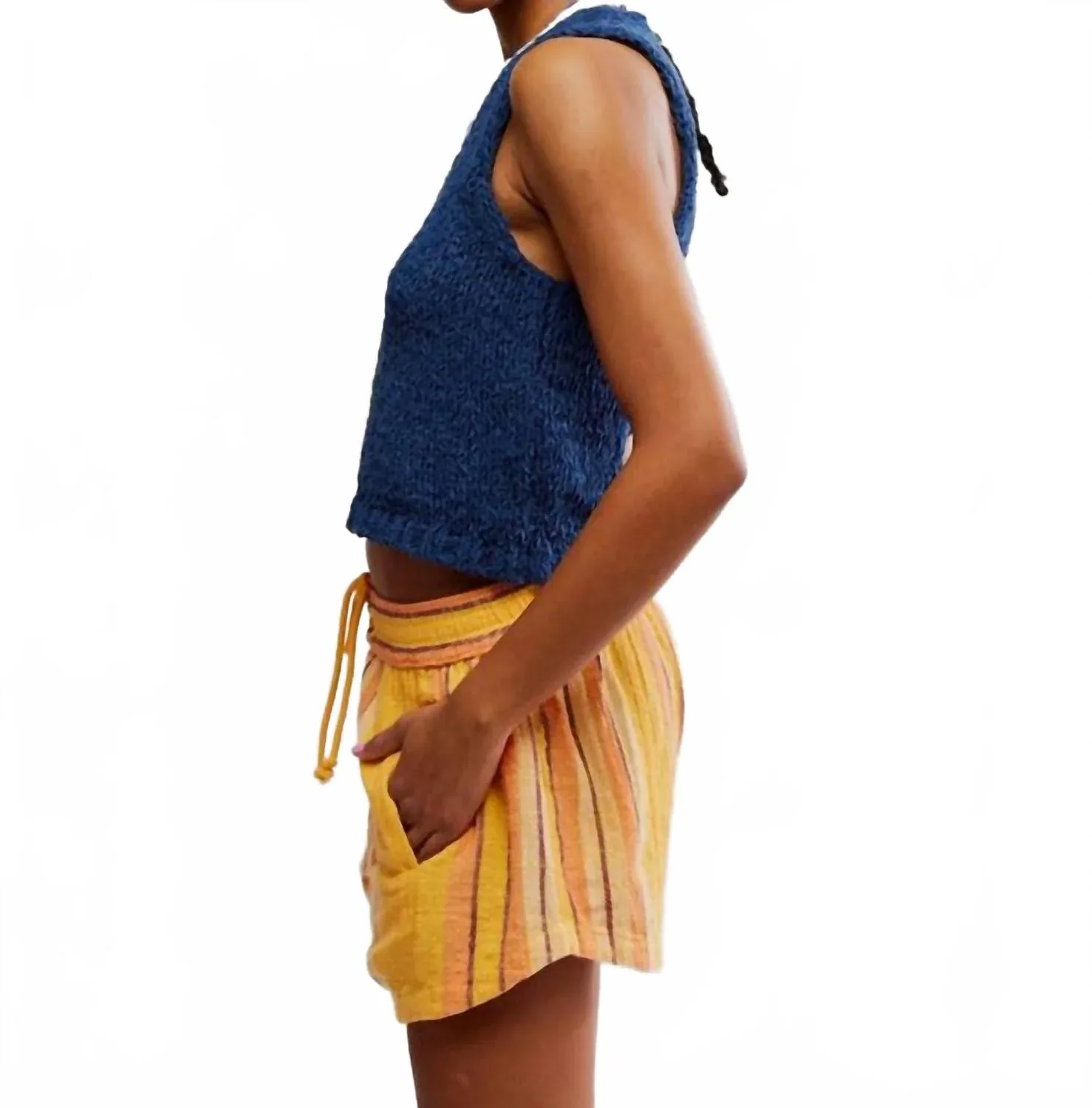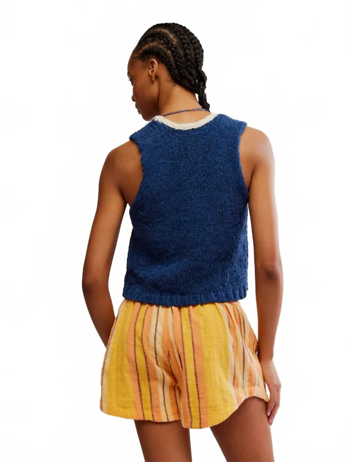 Жилет настолько универсален, что его можно сочетать практически с любым нарядом, и он всегда будет выглядеть как новый. Дополните свой гардероб свитером Sicily от Free People - моделью без рукавов насыщенного джинсового оттенка. Изготовленный из мягкого фактурного хлопка, этот свитер в стиле жилета имеет двусторонний дизайн с V-образным вырезом и контрастной деталью для создания объемного эффекта. Слегка укороченный силуэт и заниженные проймы подчеркивают его свободный крой, делая его универсальным минималистичным элементом гардероба для летних пляжных дней. Тип застежки - надевается через голову.
