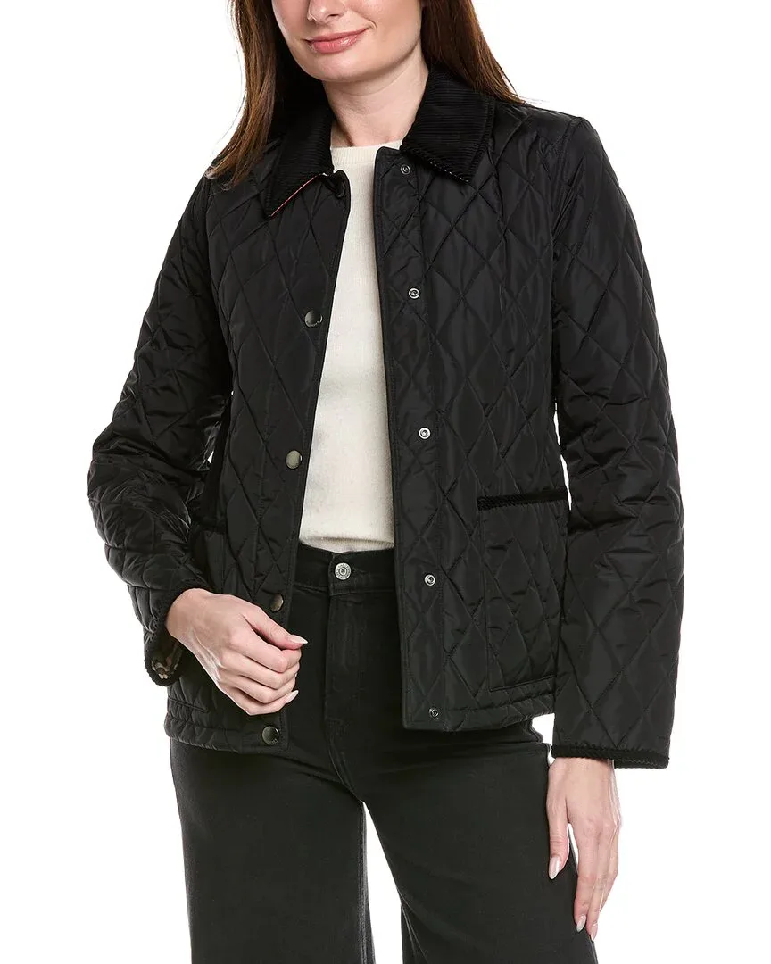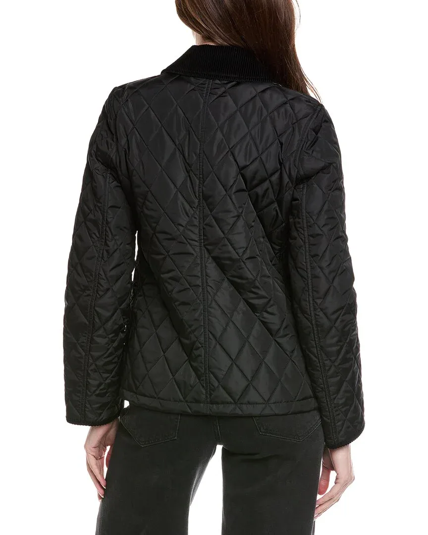 • Стеганая куртка черного цвета с ребристой отделкой, передними накладными карманами и ветрозащитной планкой.