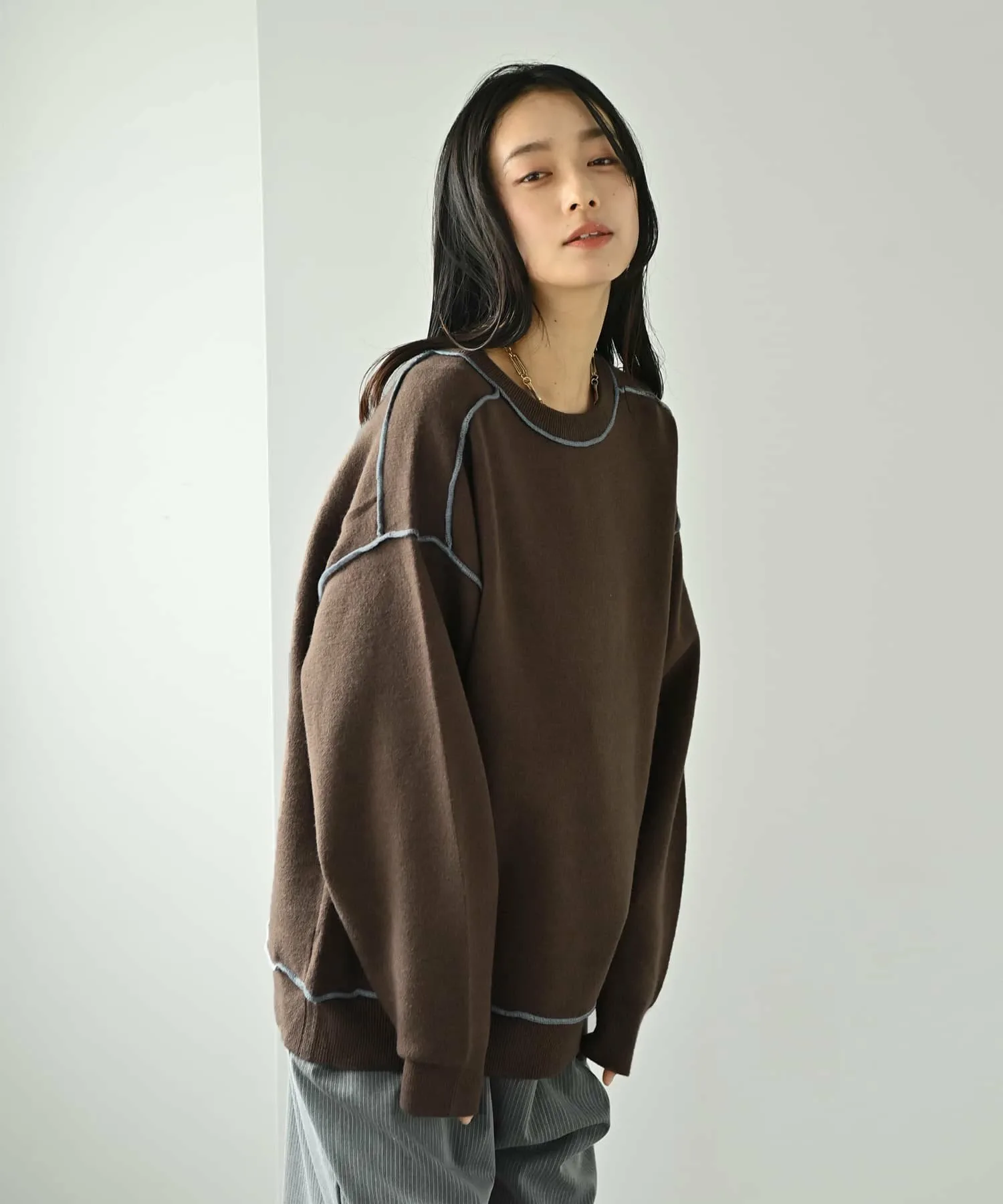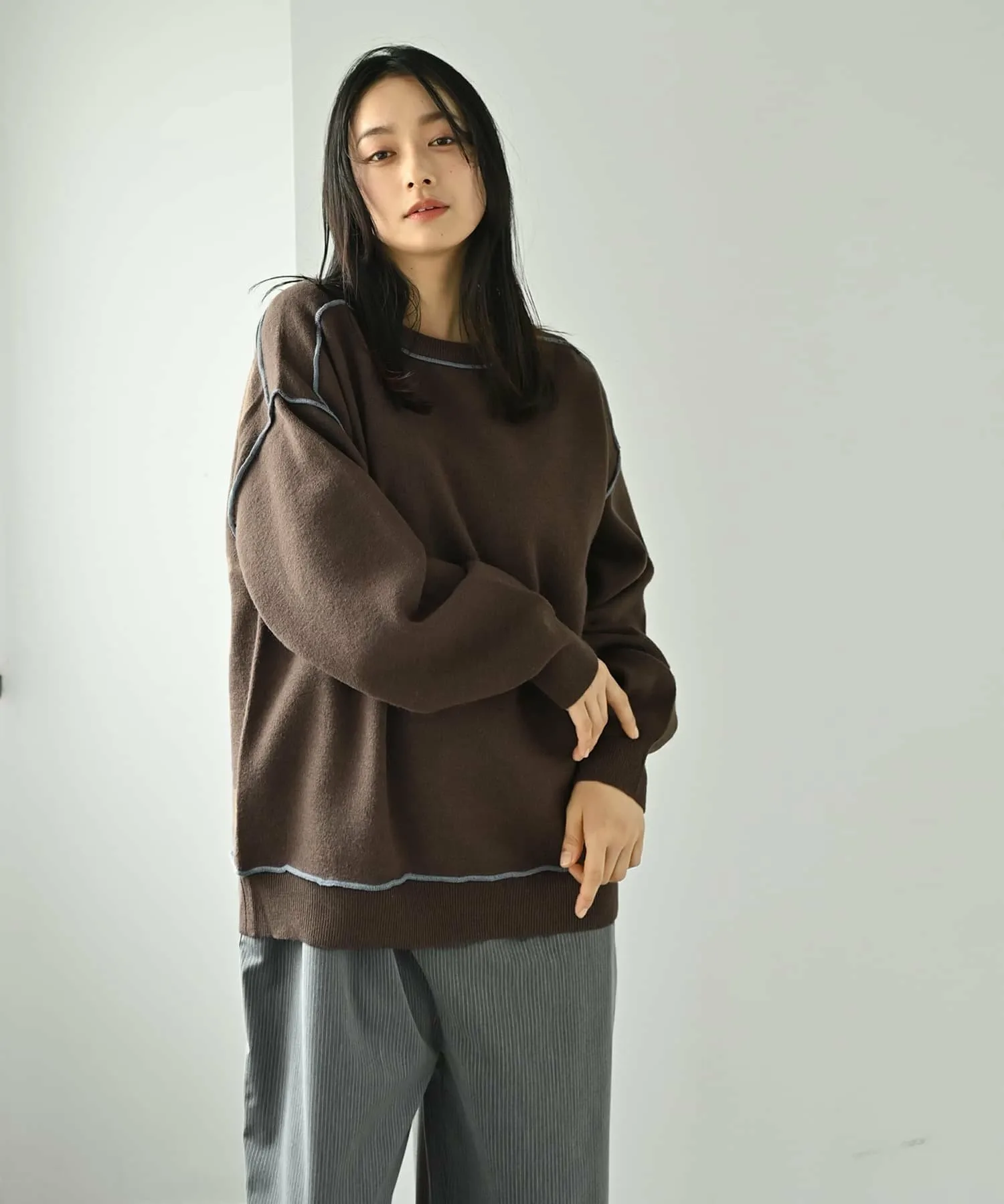 Свободная туника для взрослых, изготовленная из мягкого, струящегося трикотажа с контрастной строчкой.