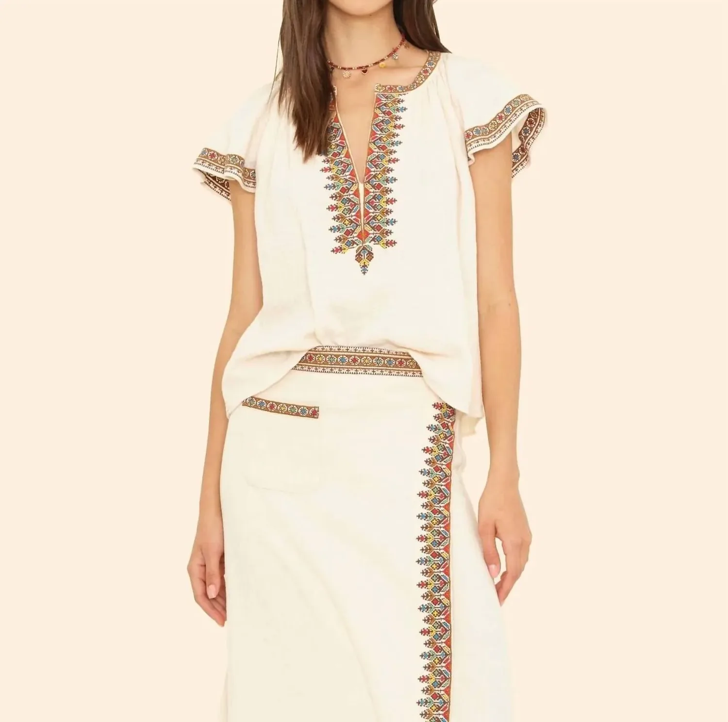 Больше не нужно искать, вы только что нашли свою идеальную футболку! Представляем топ Ambry от XIRENA - потрясающее сочетание изысканного стиля и комфорта в цвете Oysterette. Эта туника с короткими рукавами украшена замысловатой многоцветной вышивкой вдоль V-образного выреза и по центру спереди, подчеркивая ее свободный, женственный силуэт. Изготовлена ​​из 100% хлопка, обеспечивает воздухопроницаемость и легко надевается. Уход прост: машинная стирка в холодной воде в щадящем режиме, сушка в разложенном виде.
