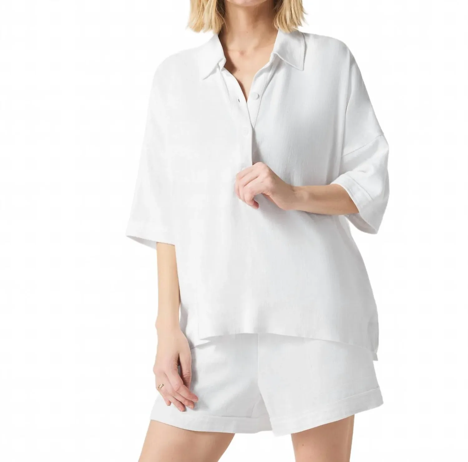 Ощутите непринужденный стиль с топом Splendid Coastal, идеально подходящим для теплых, неспешных дней. Этот топ из смеси льна имеет рукава до локтя и отложной воротник, воплощая в себе расслабленный, но в то же время изысканный образ. Состав: 80% вискоза, 20% лен. Застежка: полупланка на пуговицах. Уход: машинная стирка в холодной воде, сушка на воздухе.
