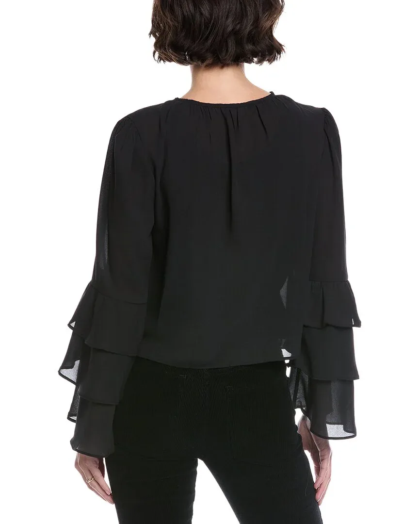 Представляем топ Walter Baker Dua - стильное и универсальное дополнение к вашему гардеробу. Этот черный топ с круглым вырезом и длинными рукавами украшен уникальной трехслойной оборкой, добавляющей нотку женственного очарования. Застежка на пуговицы по центру спереди придает этой классической модели стильный вид. Изготовленный из 100% полиэстера, этот топ одновременно легкий и удобный. Независимо от того, наденете ли вы его с нарядной или повседневной одеждой, топ Walter Baker Dua обязательно привлечет внимание. Рекомендуется ручная стирка. Импортный товар.