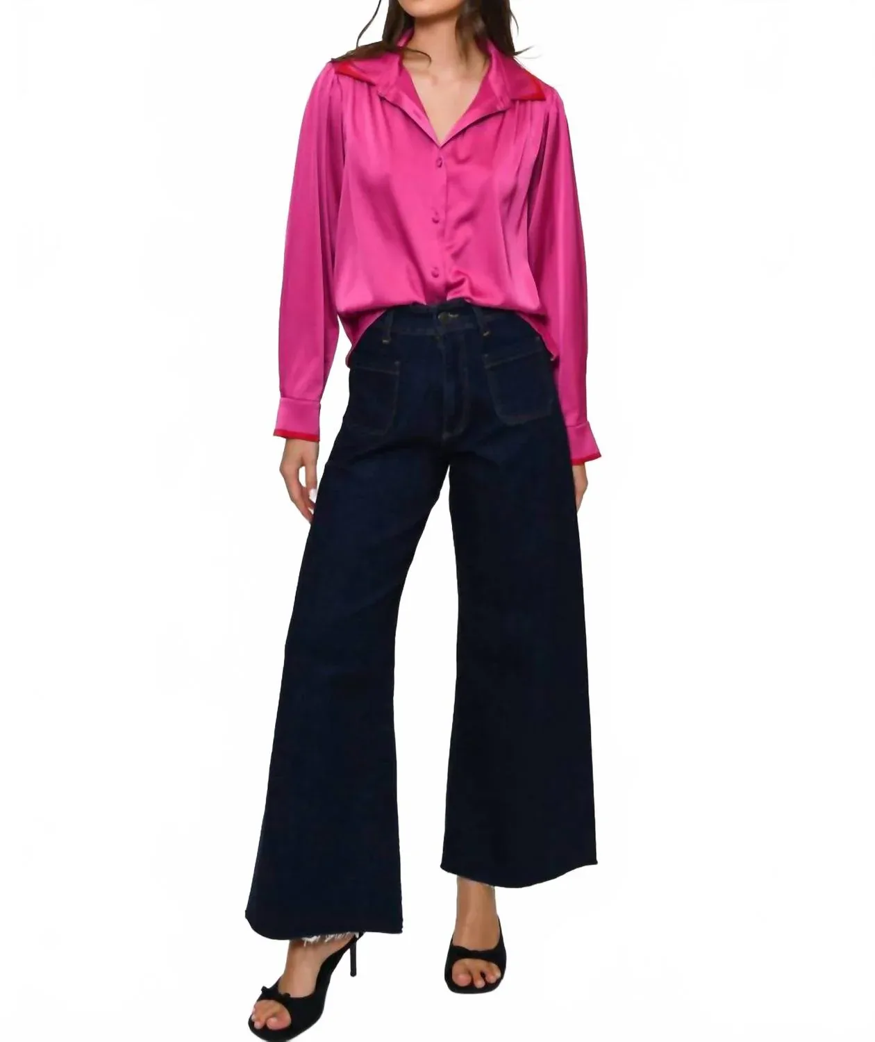 Классическая рубашка на пуговицах, которая никогда не выйдет из моды. Представляем топ Kodie от Hutch - изысканное дополнение к любому гардеробу в ярком розовом оттенке. Этот шелковистый атласный топ имеет длинные рукава и стильный воротник, дополненный многослойной цветной отделкой. Практичная застежка на пуговицы и однотонный узор, длина - 23 дюйма. Уход за этим изысканным изделием только в режиме химчистки.