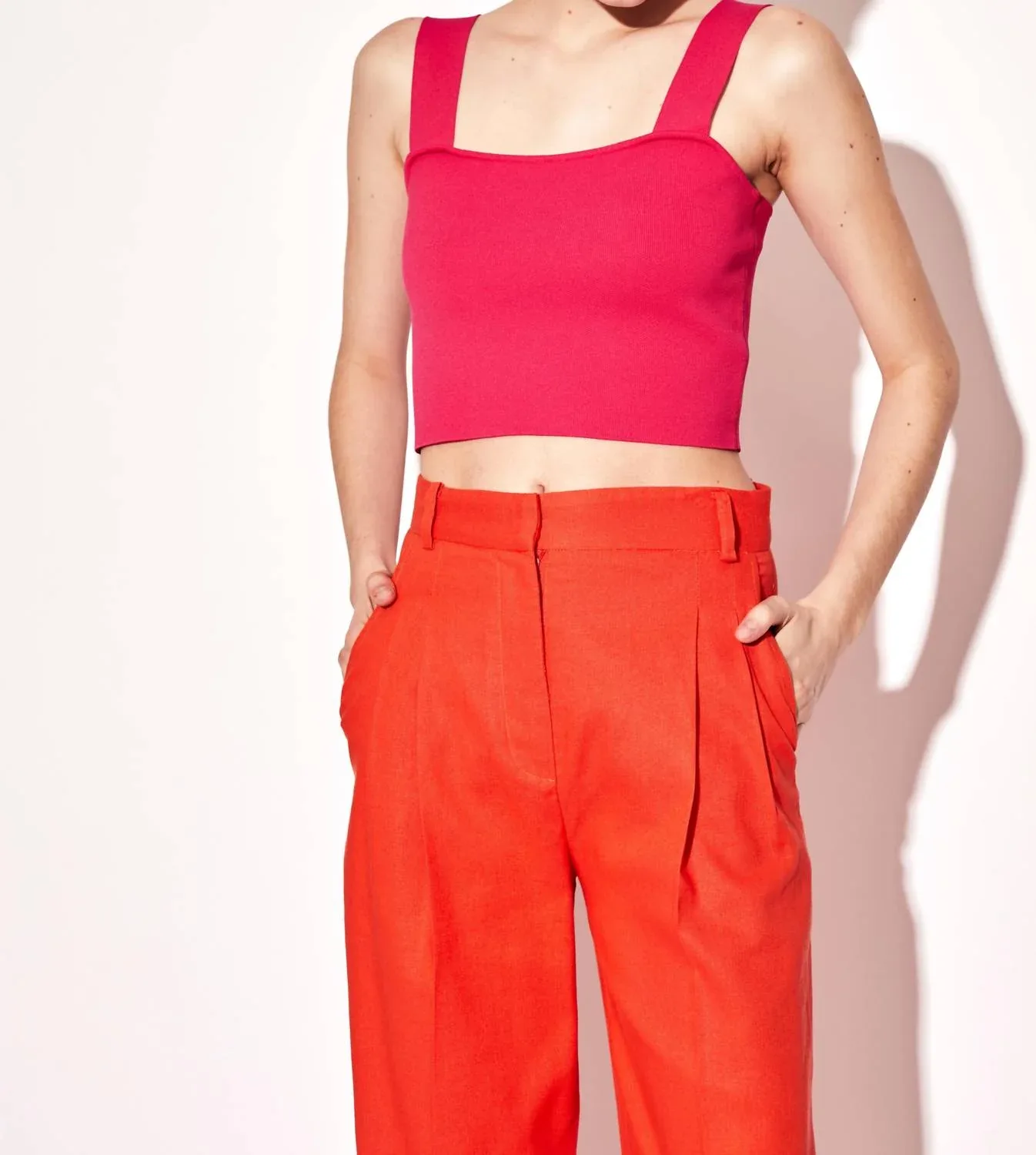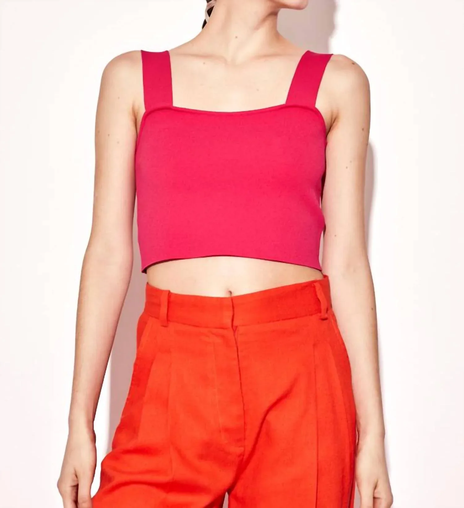Идеальный укороченный топ для теплой погоды. Обновите свой гардероб с помощью топа Mars от DELUC - эффектной вещи яркого цвета фуксии. Этот укороченный топ без рукавов, изготовленный из роскошной вискозной смеси, имеет модный квадратный вырез, который подчеркнет и улучшит ваш стиль. Благодаря однотонному узору, топ идеально подходит как для многослойных образов, так и для самостоятельного ношения, позволяя вам сиять уверенностью. Инструкции по уходу отсутствуют, поэтому обращайтесь с изделием бережно, чтобы сохранить его яркий вид.