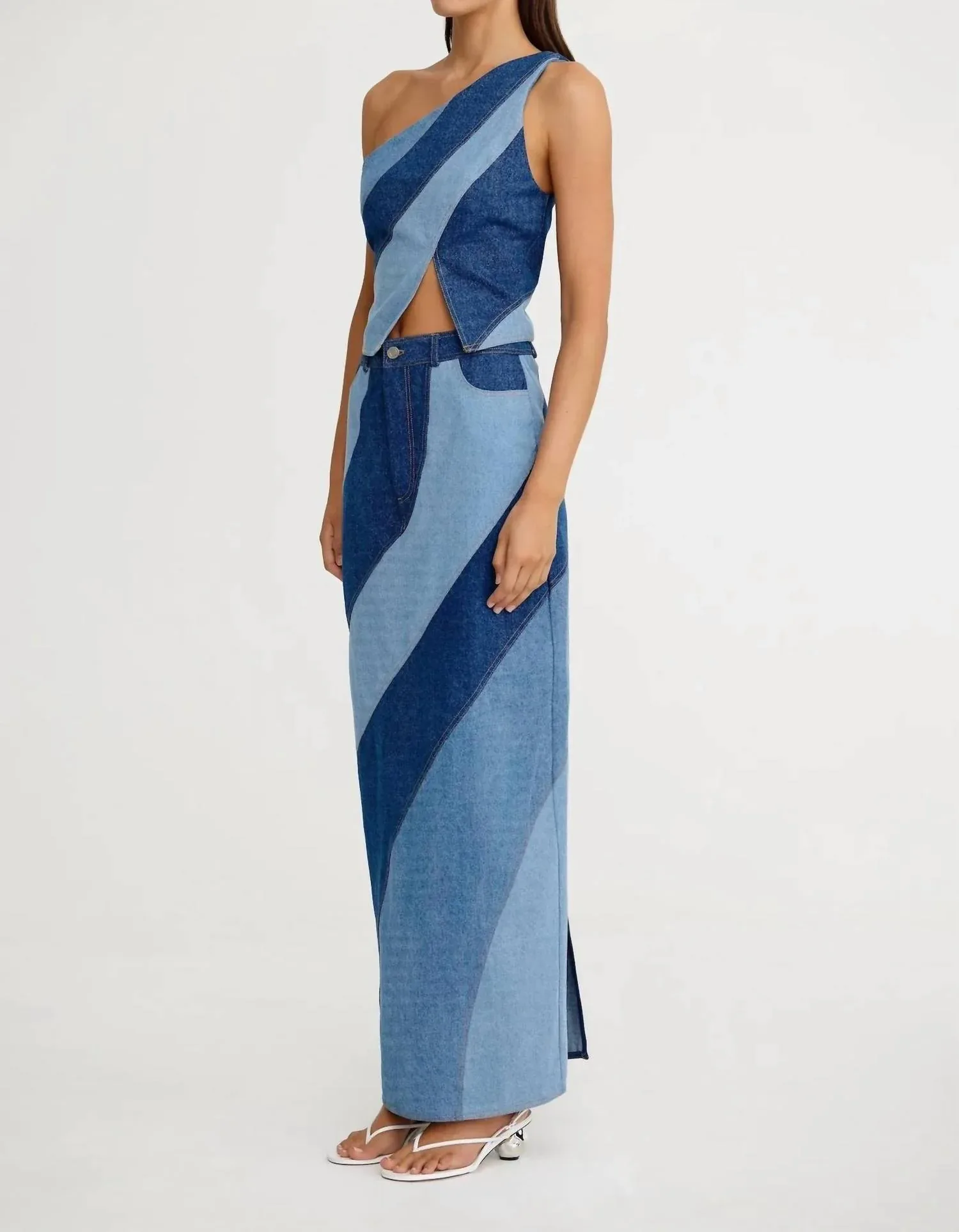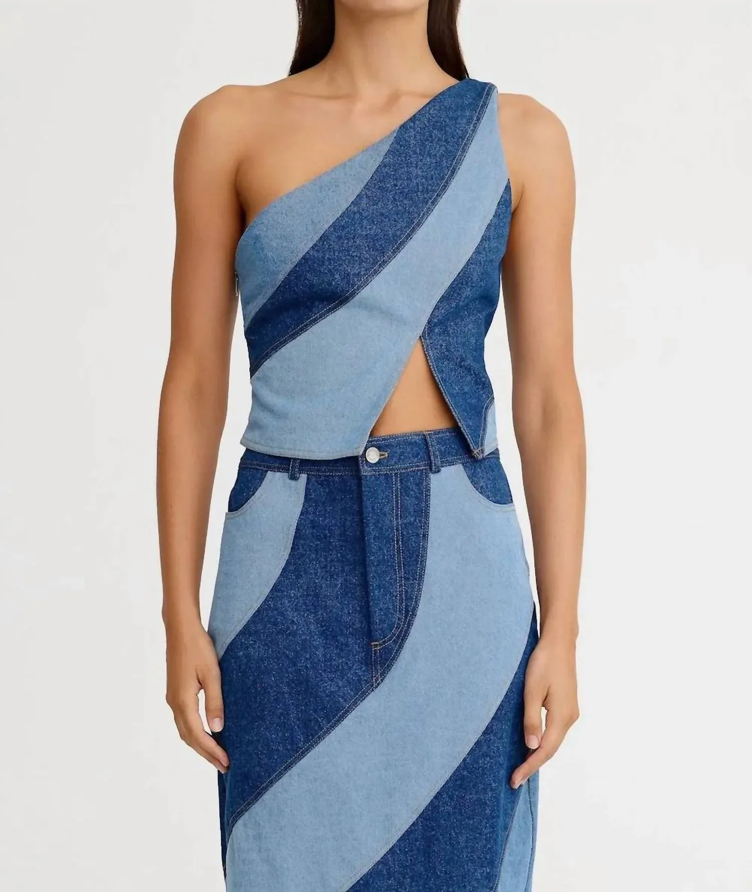 Сочетайте этот укороченный топ с любимыми джинсами с высокой талией или макси-юбкой. Представляем топ Saskia от SIGNIFICANT OTHER - шикарную вещь цвета индиго, созданную для тех, кто не боится выделяться. Этот укороченный топ без рукавов на одно плечо украшен вставками из джинсовой ткани и вырезом по низу спереди, что придает ему современный вид. Изготовленный из 100% хлопка, он обеспечивает комфорт и одновременно является смелым заявлением. Застежка - открытая боковая молния. Рост модели 178 см/5’10", на ней размер AU 8 / US 4.