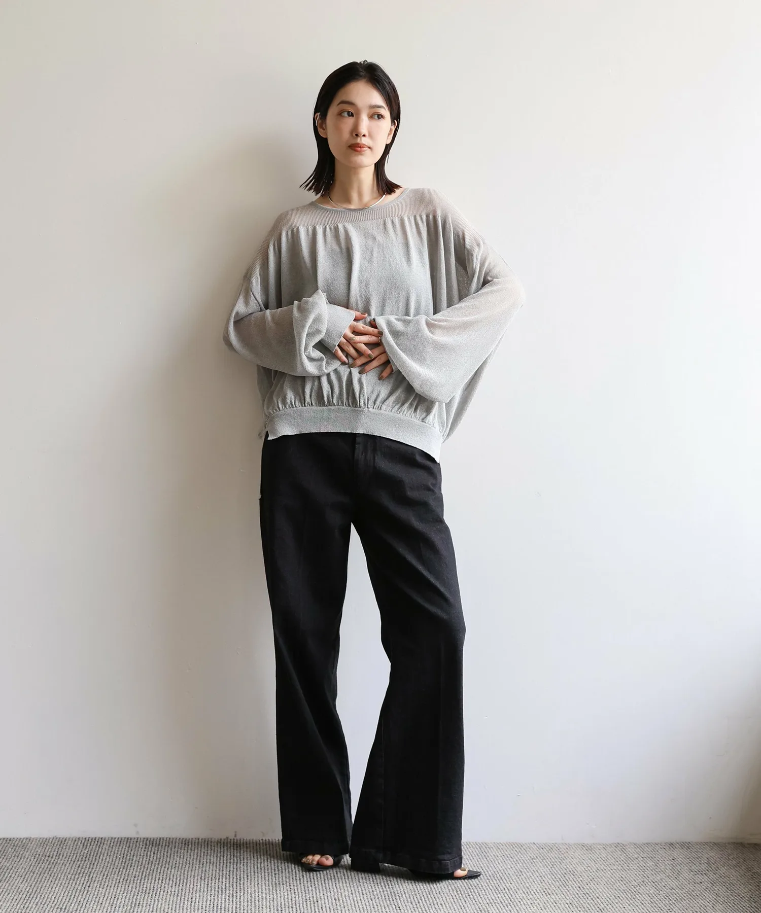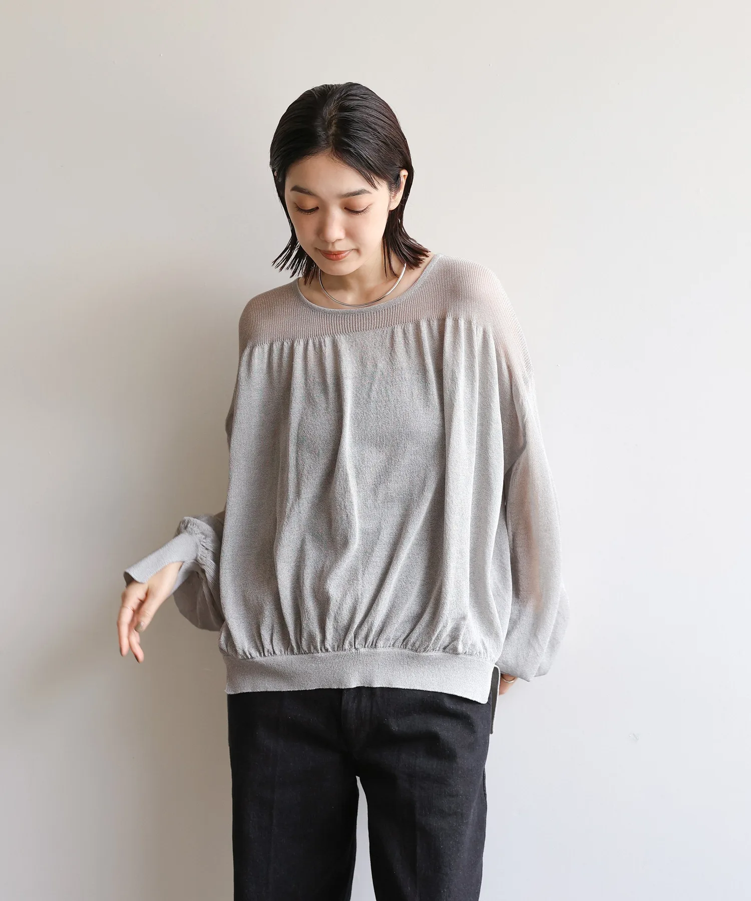 Объемные рукава выполнены из мягкого материала, который облегает фигуру, не выглядя при этом слишком вычурно.