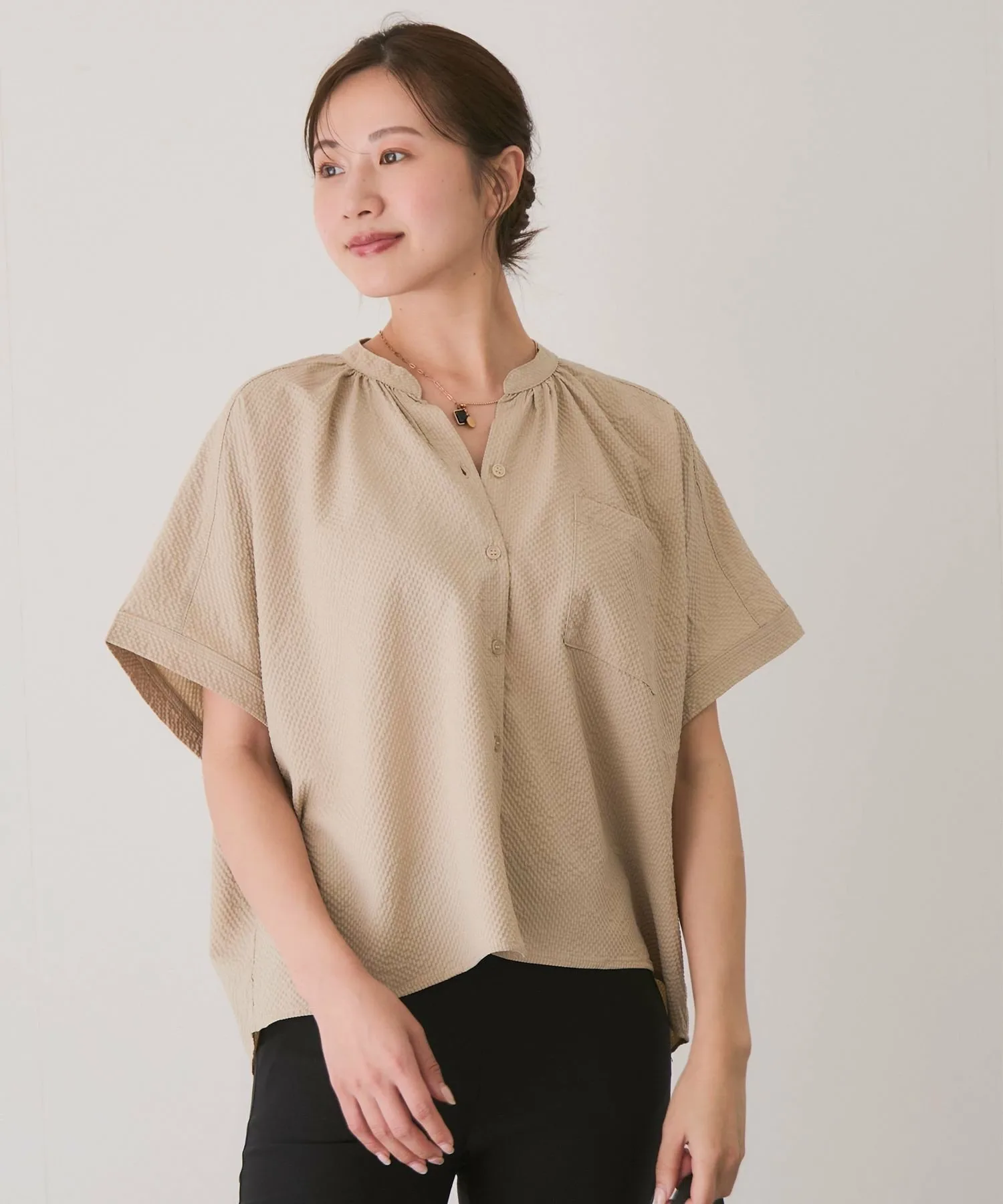 Текстурированная поверхность мягкой выстиранной ткани придает этой рубашке изысканный вид.