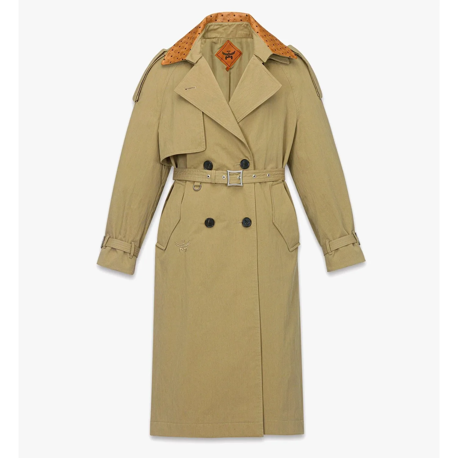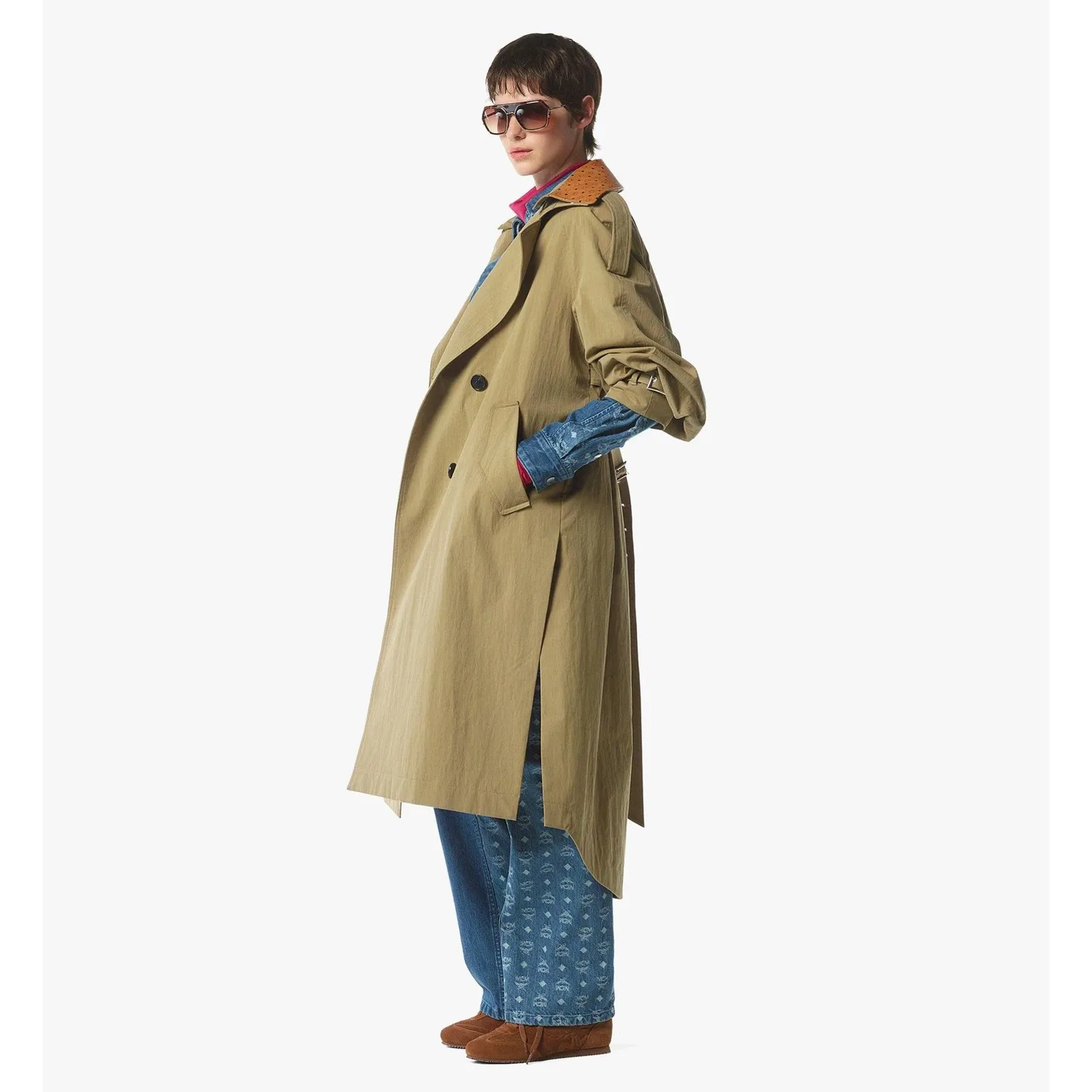 Женский объемный тренч из хлопка и нейлона с кожаным воротником, украшенным монограммой Visetos.