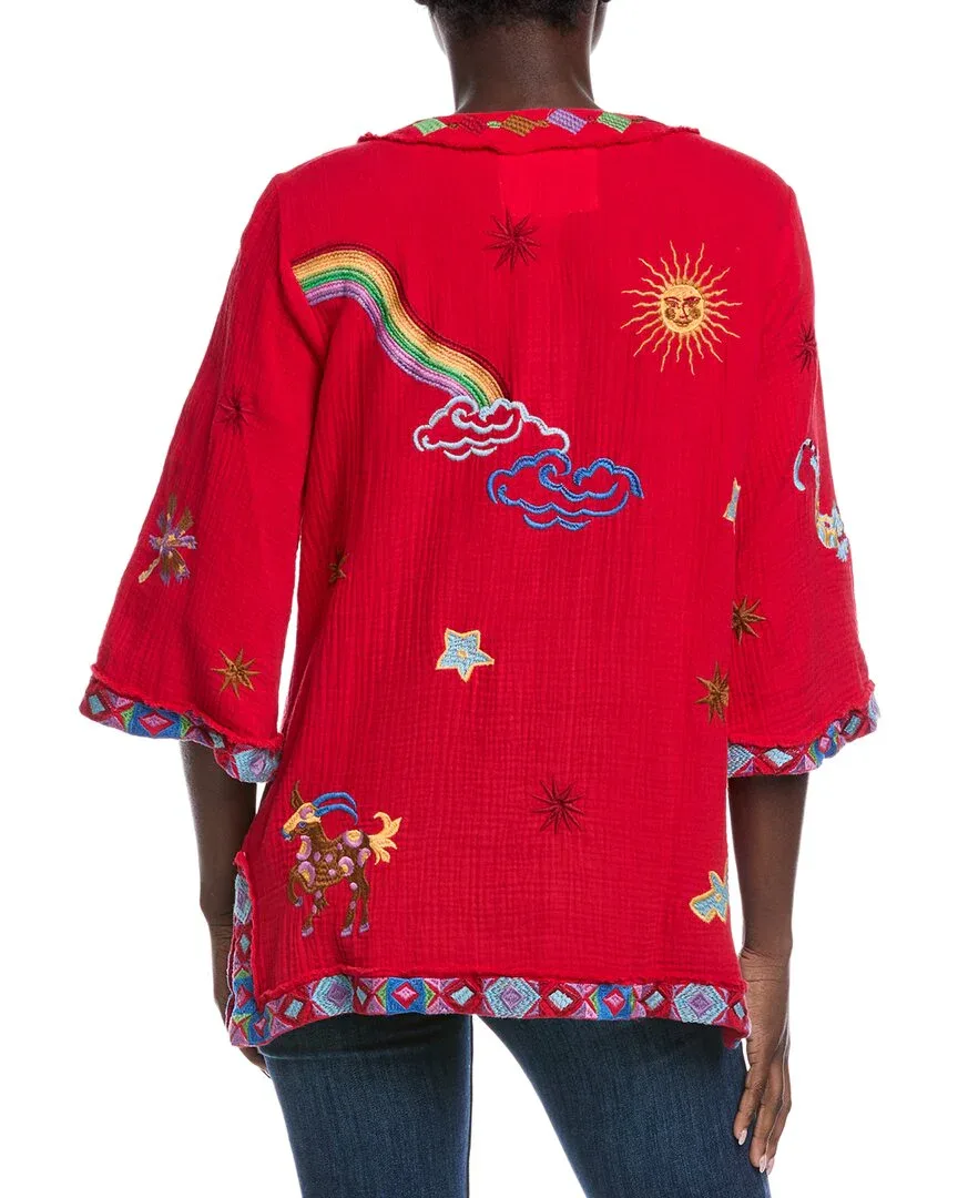 Представляем тунику Johnny Was Catalya - незаменимое дополнение к вашему гардеробу для тех, кто ищет эклектичный богемный стиль с винтажными нотками. Эта туника выполнена в ярком красном цвете «Гоночный красный» с красивой вышивкой из тонкой ткани и стильными завязками с кисточками на шее. Изготовленная из 100% хлопка и отделанная 100% полиэстером, эта туника - уникальная и стильная вещь, идеально подходящая для любого случая. Добавьте нотку богемного шика в свой образ с туникой Johnny Was Catalya. Не стирать в машинке, только химчистка. Импортный товар.