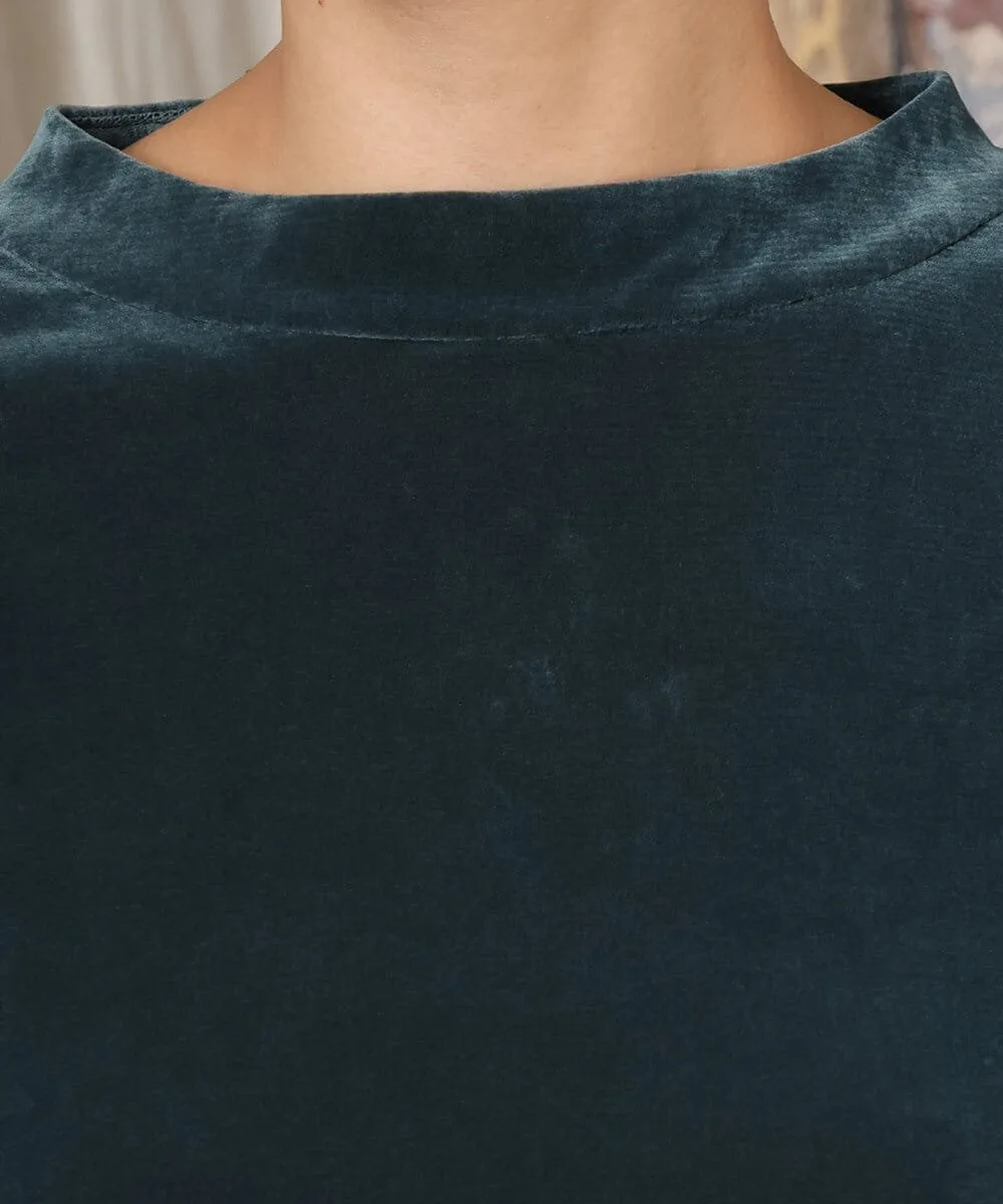 Топ, сшитый из велюровой ткани на основе тюля с бархатным покрытием. Слегка блестящая текстура ткани добавляет элегантности. Она также эластична и удобна в ношении.