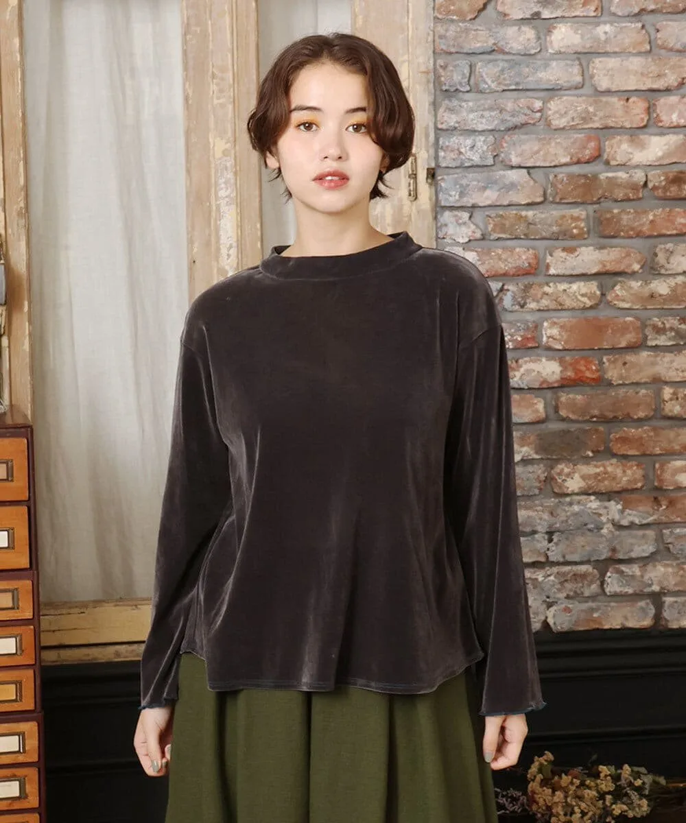 Топ, сшитый из велюровой ткани. Мягкий материал и приспущенные плечи создают расслабленный силуэт. Простой фасон пуловера. Воротник-стойка придает элегантный вид. Пуговицы сзади позволяют легко надевать и снимать. Оборки на манжетах добавляют изысканности. Просто надев его, вы мгновенно преобразите свой сезонный образ.