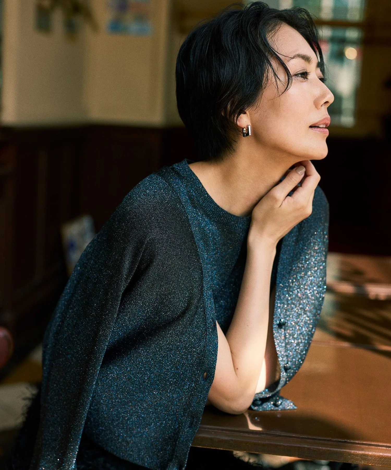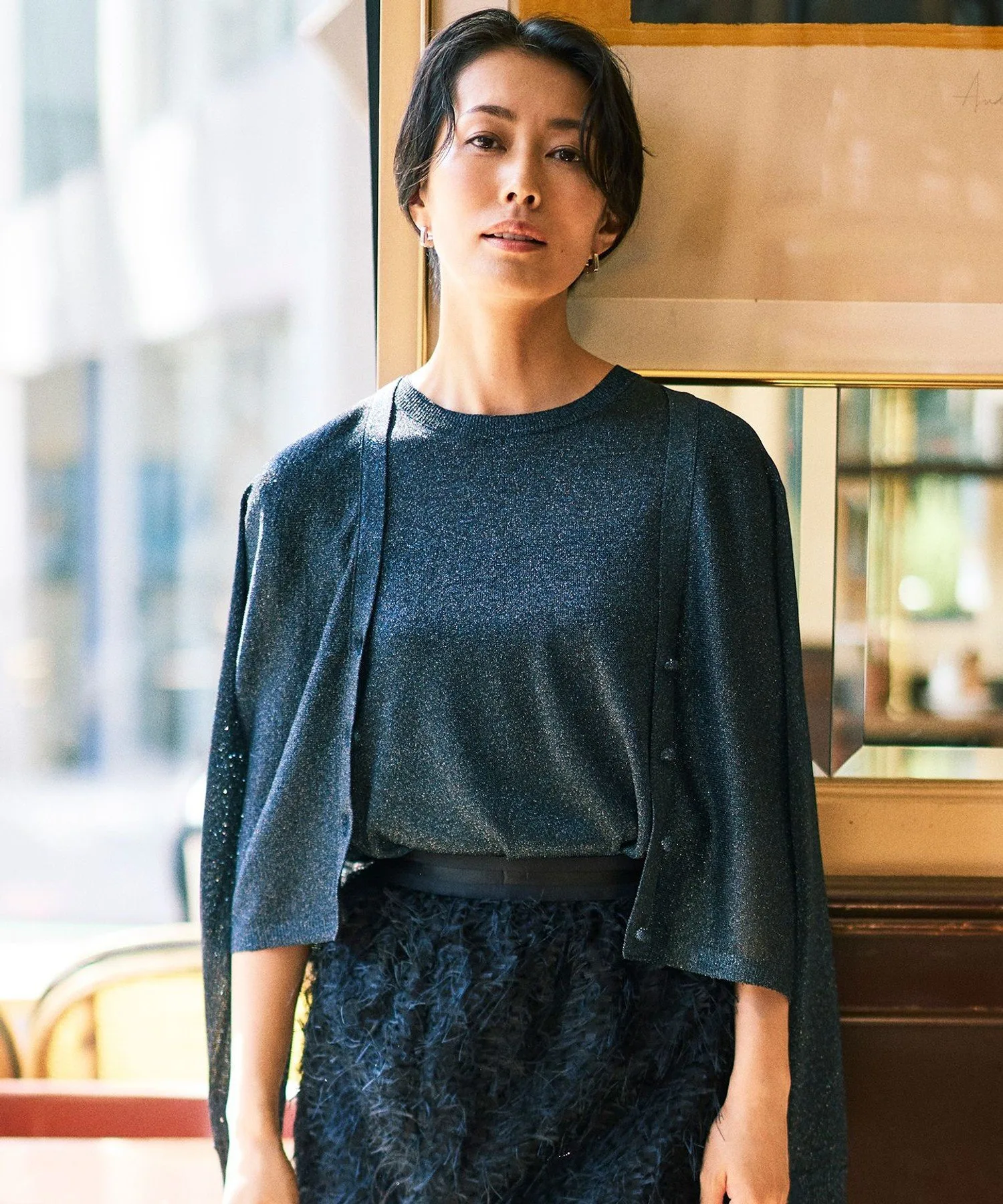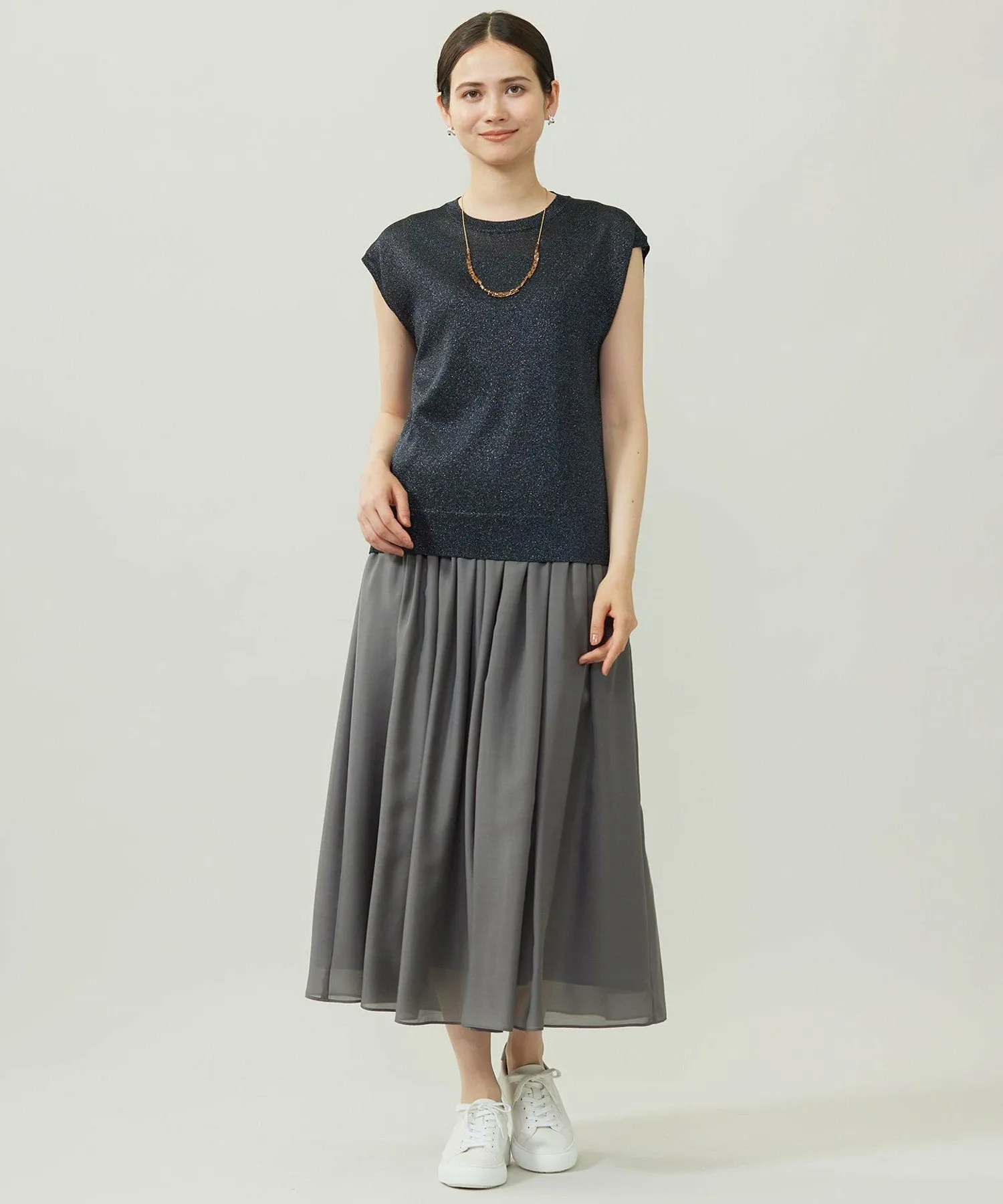 Вязаный кардиган без рукавов с привлекательными блестками. Дизайн: Этот вязаный кардиган без рукавов имеет слегка приспущенные плечи для аккуратного завершения. Его силуэт приятен для кожи, что делает его удобным в ношении. Несмотря на простой дизайн, привлекательный материал делает его центральным элементом любого образа. Его можно носить не только отдельно в жаркую погоду, но и рекомендуется в качестве нижнего слоя под куртку. Материал: Разноцветные блестки создают яркое и гламурное впечатление. Материал мягкий и гладкий на ощупь. Тот же материал: Кардиган (KRWMGW0353)