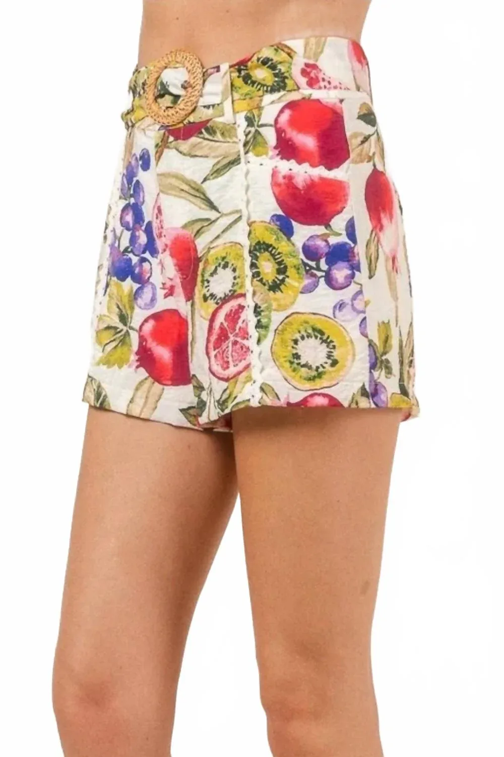 Идеально сидят, нам нравятся эти шорты с высокой талией, и они понравятся и вам. Представляем шорты La Frutta от Fore Collection с восхитительным тропическим фруктовым узором. Эти шорты с высокой талией дополнены стильным плетеным поясом, обеспечивающим комфортную посадку и дополнительную элегантность благодаря фестончатой ​​отделке. Изготовленные из 83% вискозы и 17% нейлона, с подкладкой из полиэстера и спандекса, эти шорты гарантируют комфорт и стиль для ваших летних путешествий. Они оснащены удобной застежкой-молнией и карманами, что делает их незаменимым элементом любого гардероба в стиле бохо-шик.