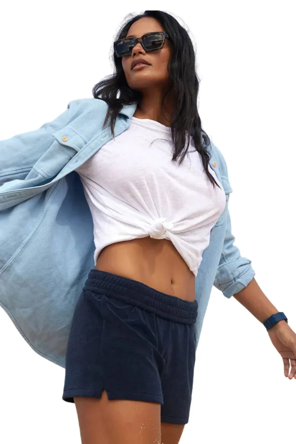 Ощутите идеальное сочетание комфорта и стиля с этими модными женскими шортами-бермудами, искусно разработанными для обеспечения привлекательной посадки и универсальности. Шорты в стиле ретро, ​​сшитые из мягкой махровой ткани. Эластичный пояс, боковые разрезы по низу. Машинная стирка в холодной воде. 57% переработанный полиэстер, 43% органический хлопок.