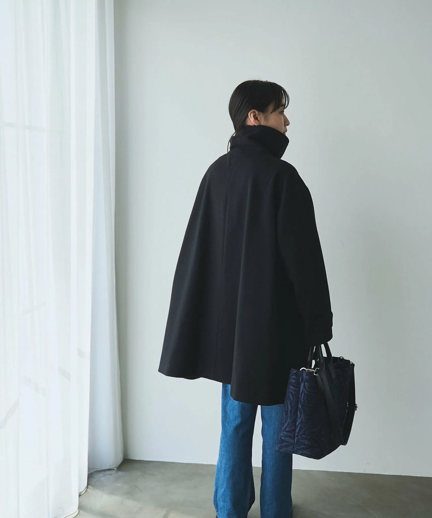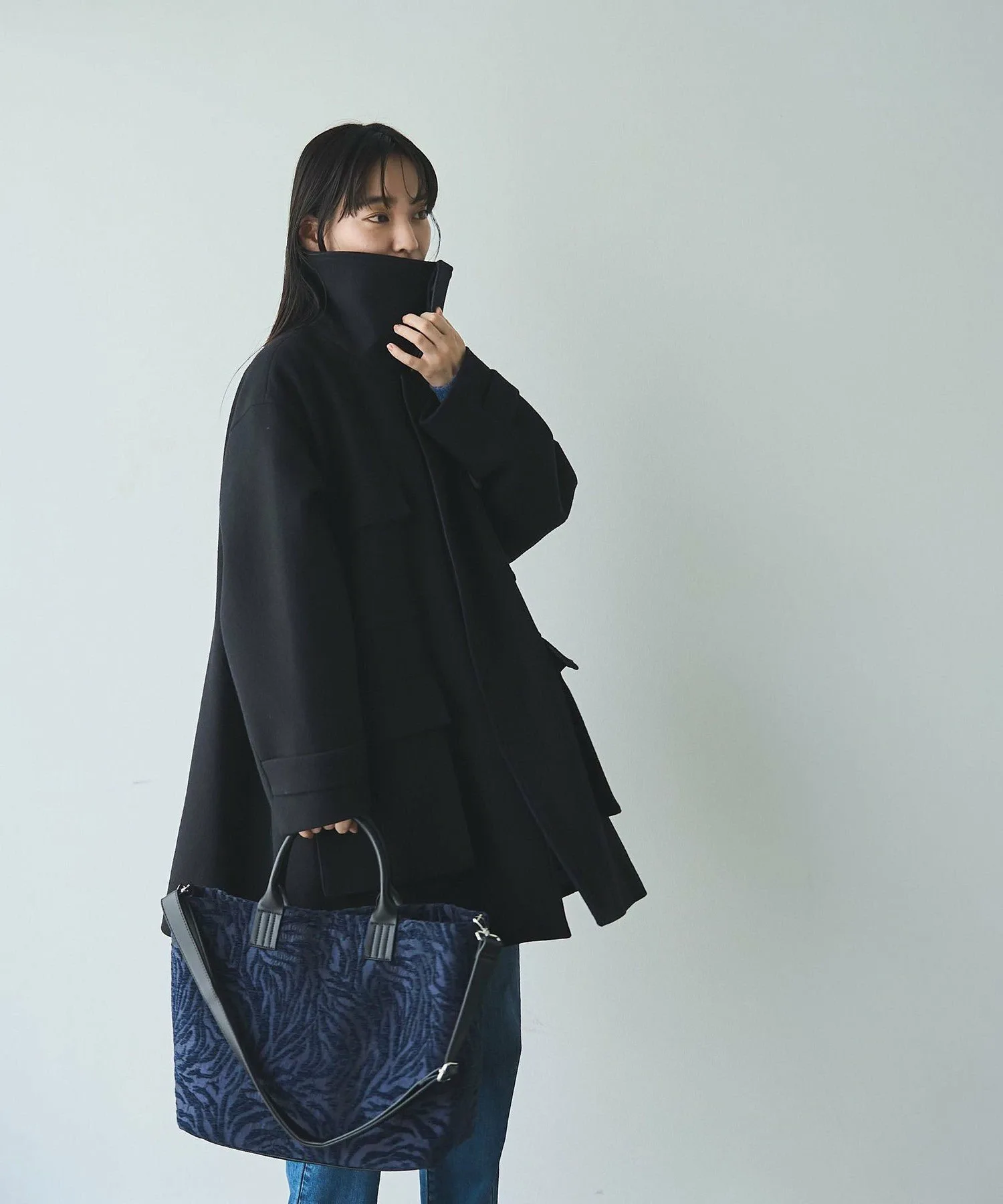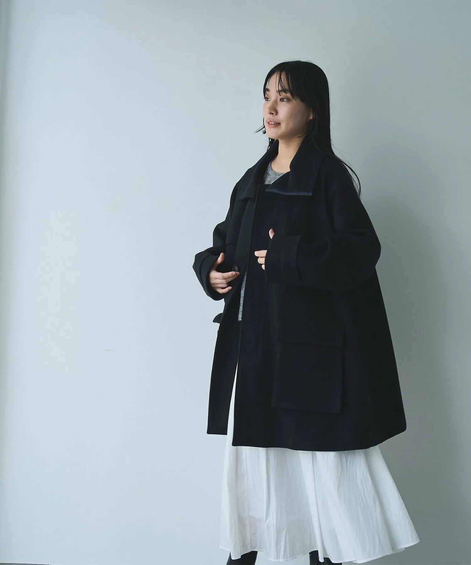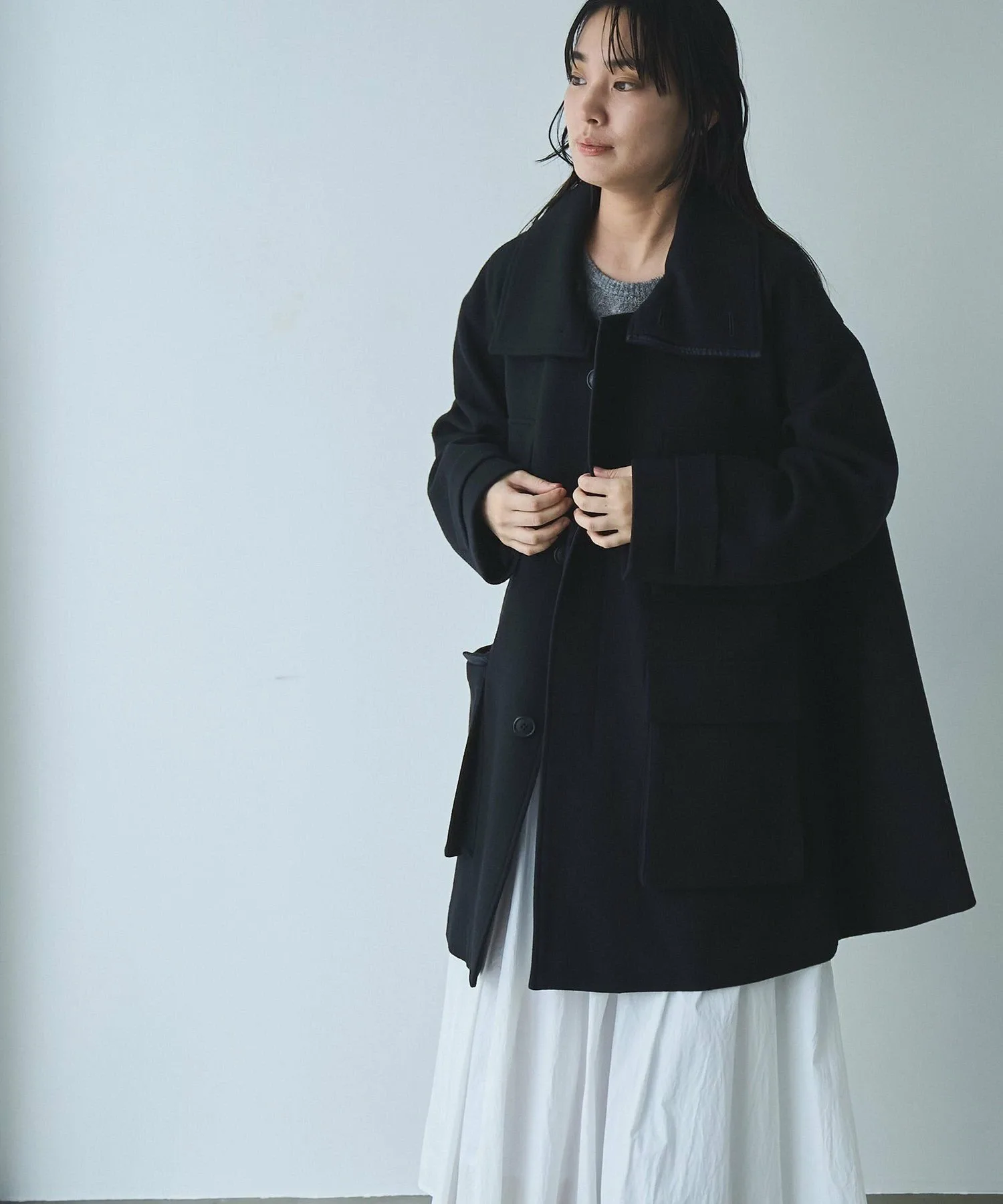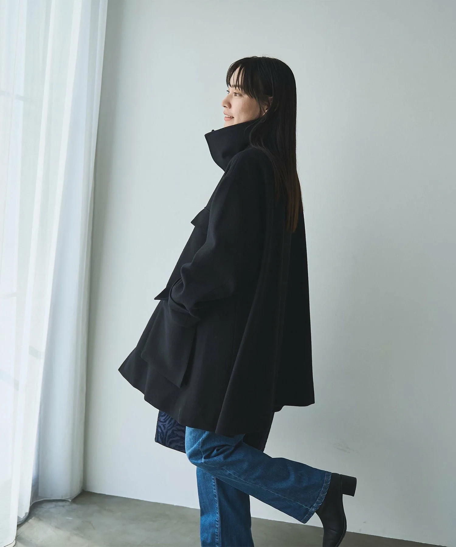 Высокий воротник-стойка можно расстегнуть, чтобы получился большой воротник.