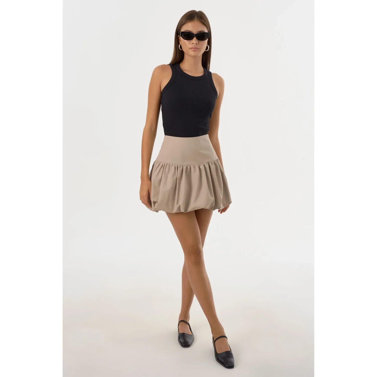 Юбка-пузырь MARIGOLD переосмысливает концепцию мини-юбки благодаря объемному силуэту и широкому поясу, обеспечивающему идеальную посадку. Мягкая структура и сбалансированные пропорции делают ее эффектной вещью, способной преобразить любой образ. Сочетайте ее с элегантным топом и туфлями на каблуках для создания образа, излучающего современную изысканность.
