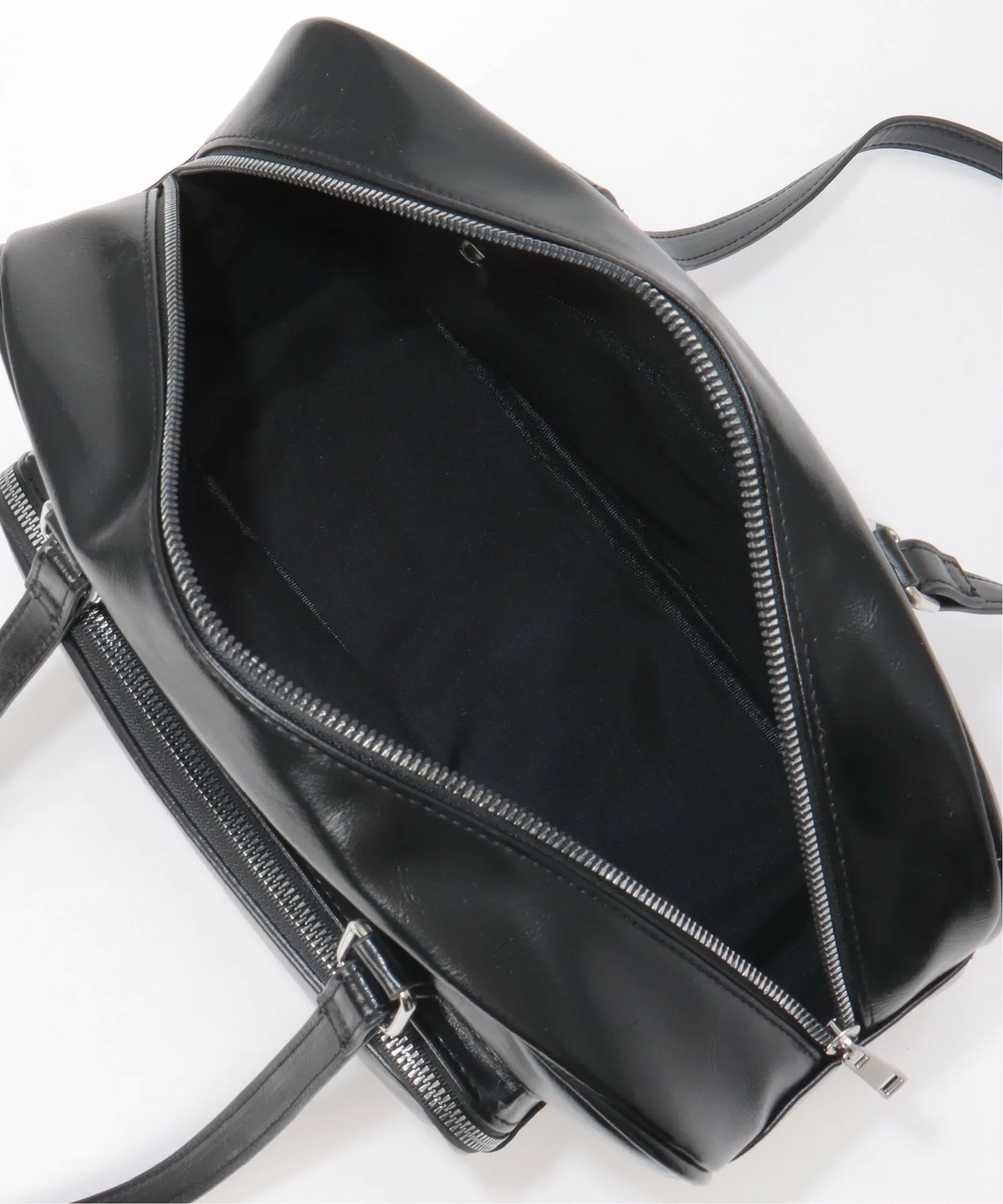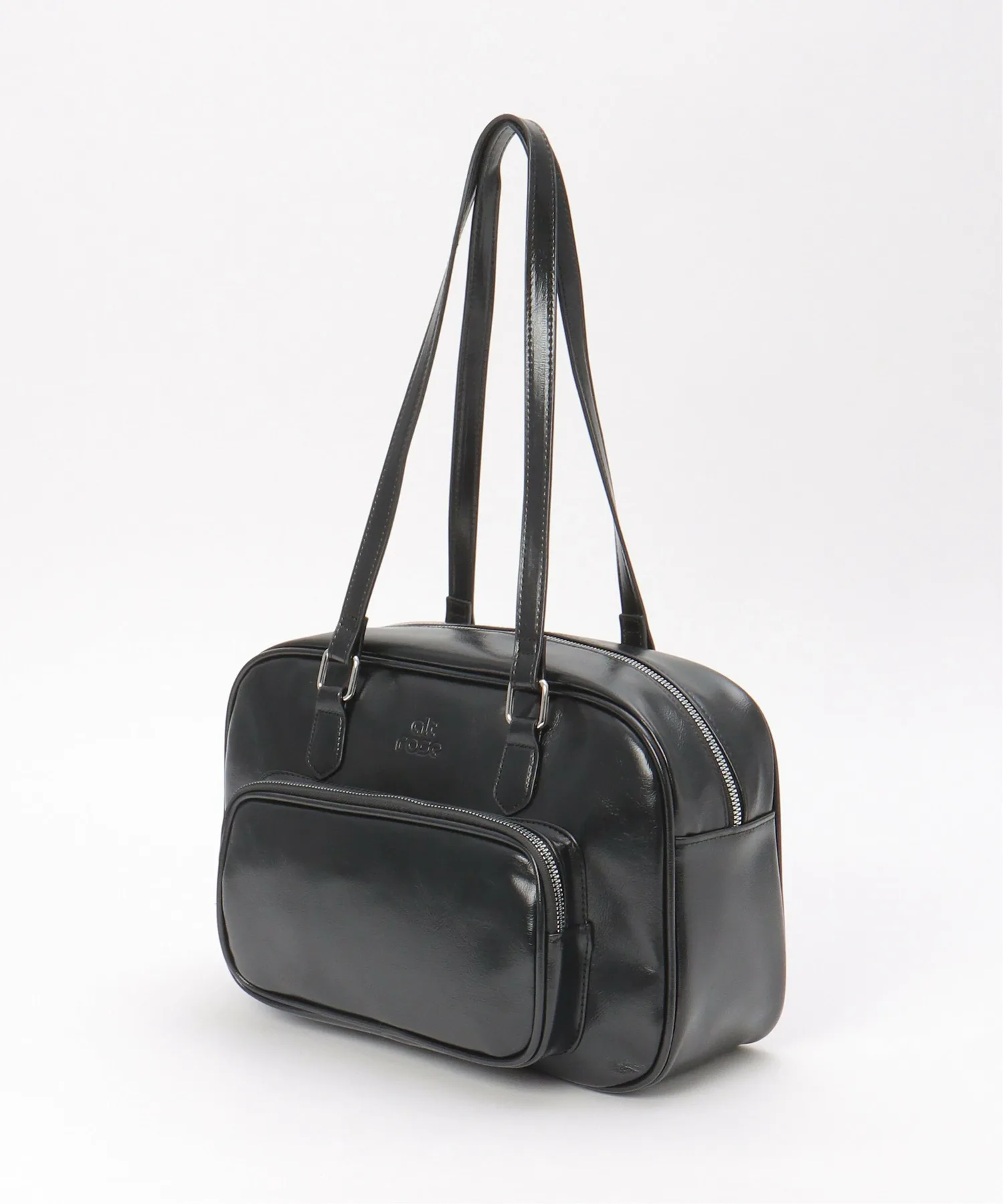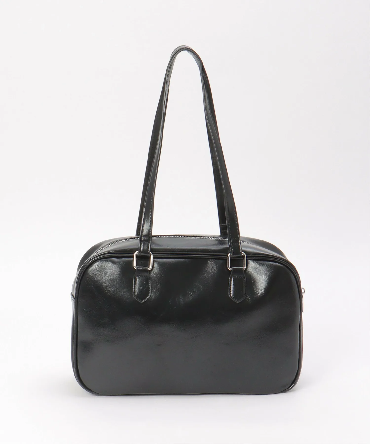 Горизонтальная сумка из глянцевой синтетической кожи, создающая элегантное впечатление.