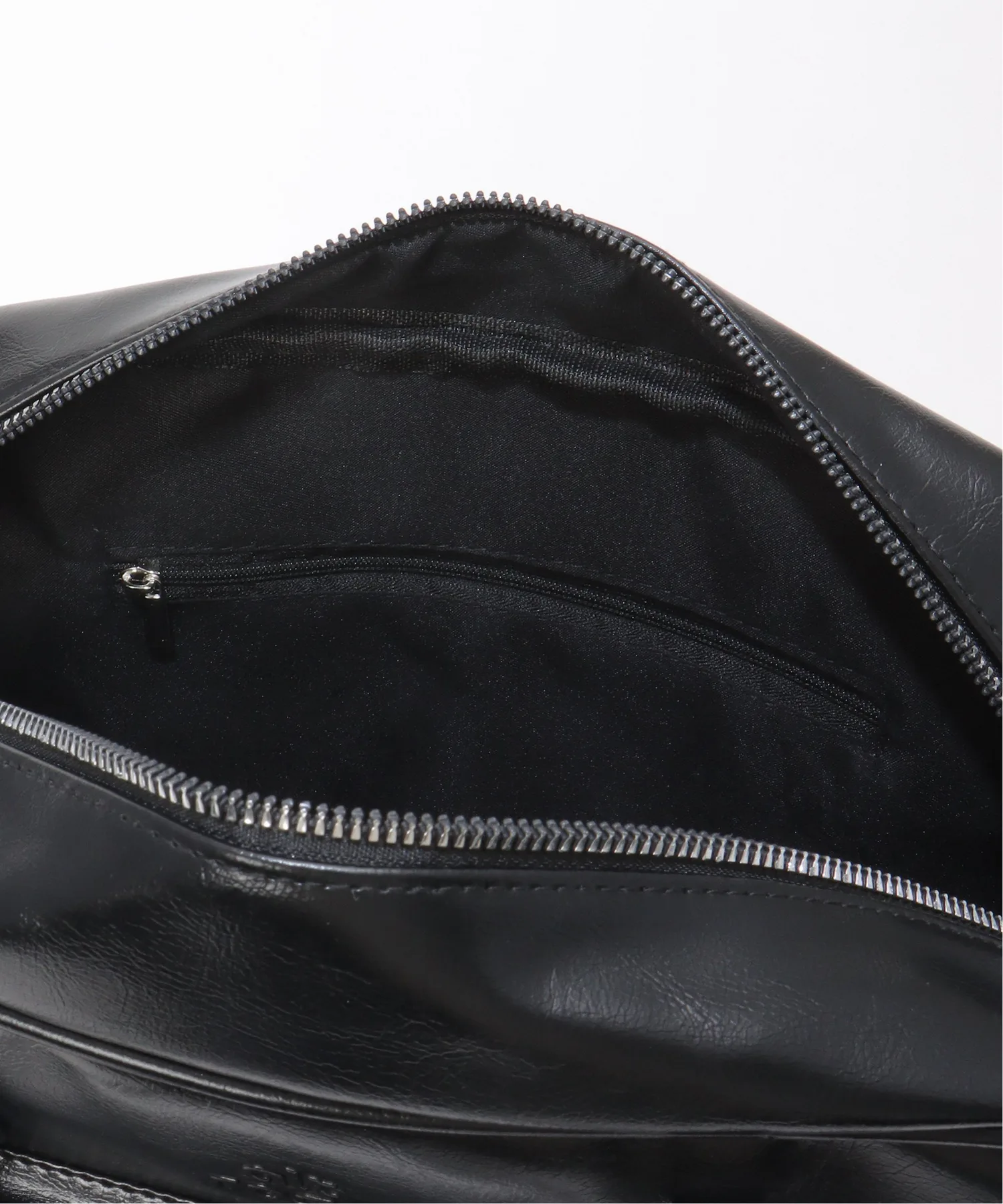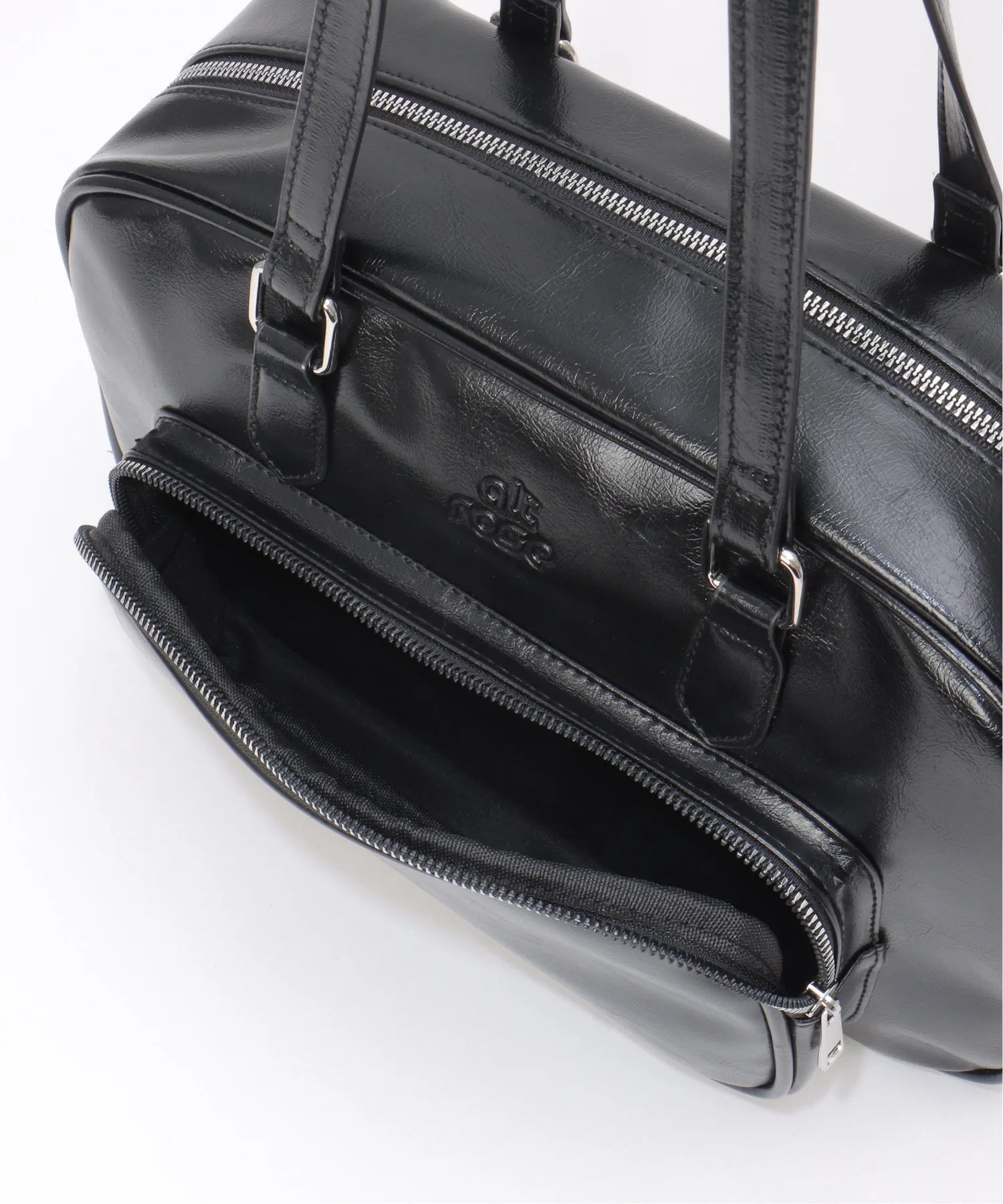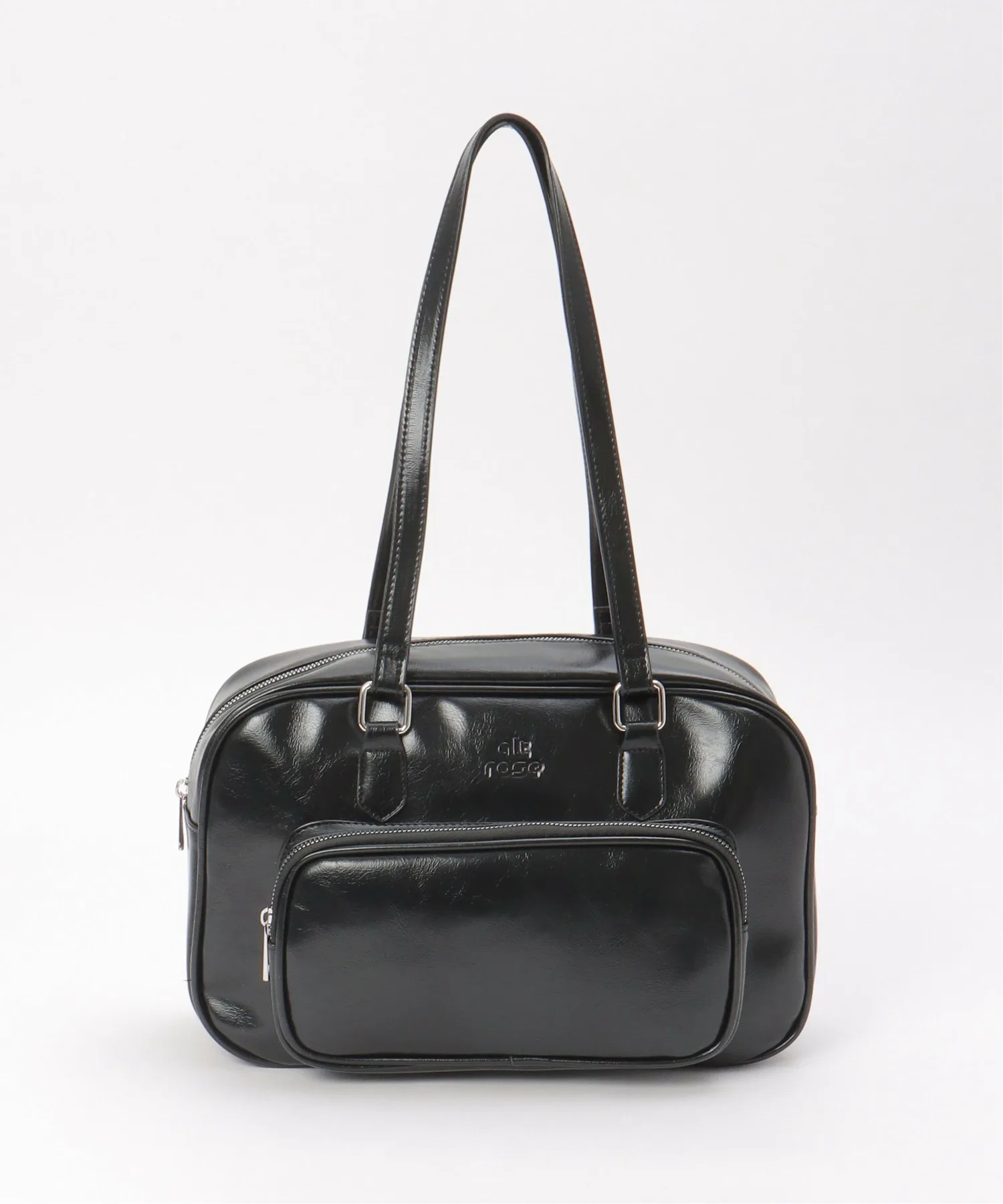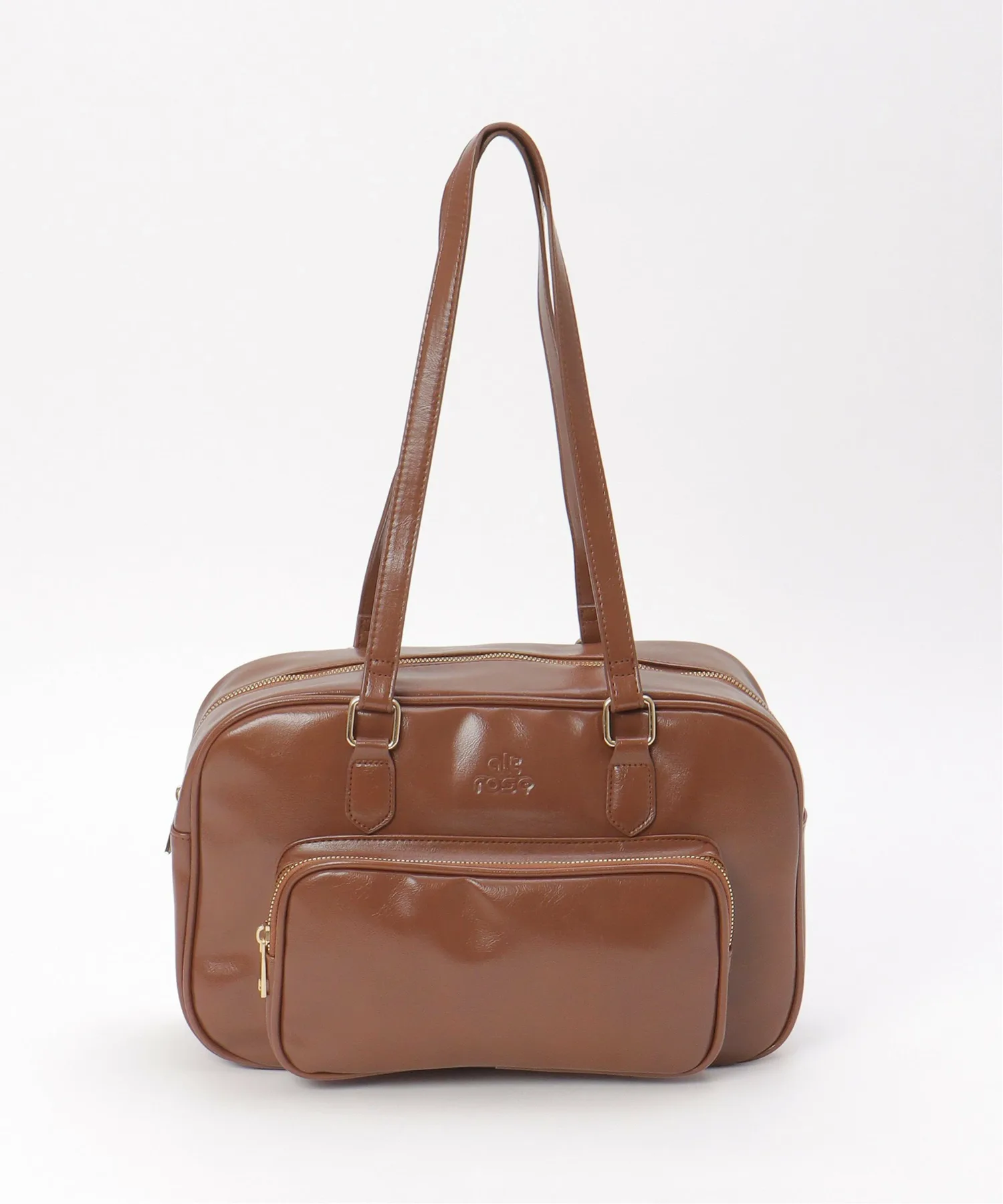 Горизонтальная сумка из глянцевой синтетической кожи, создающая элегантное впечатление.