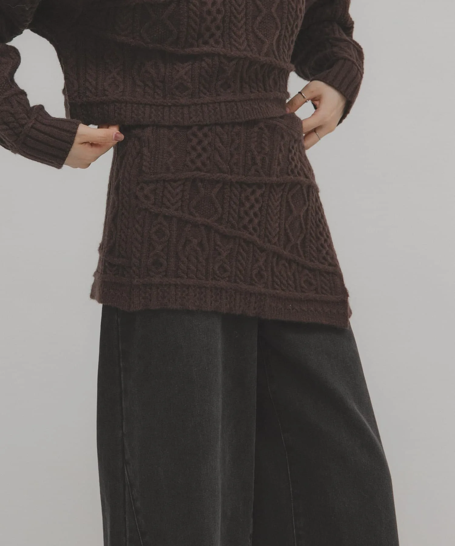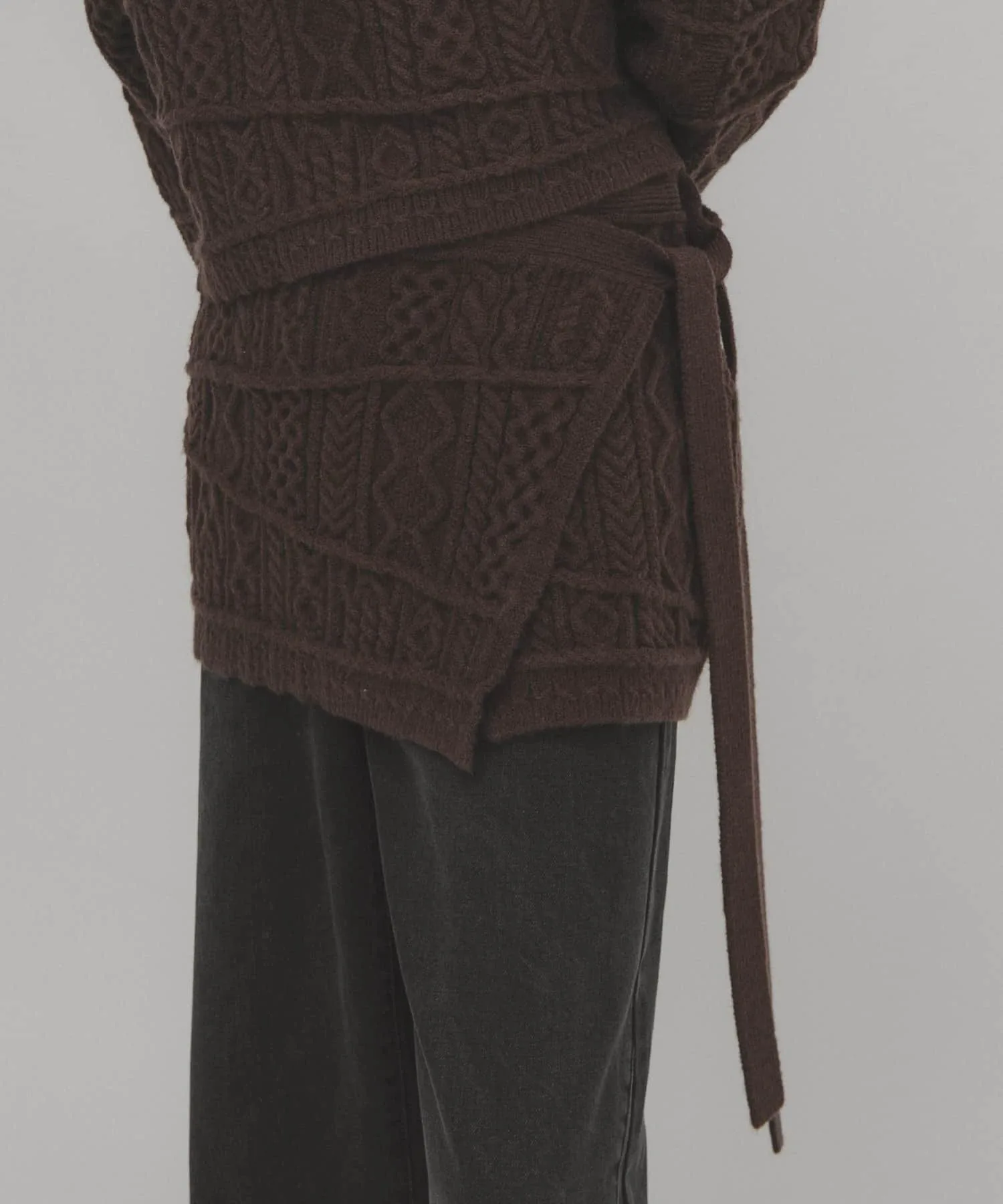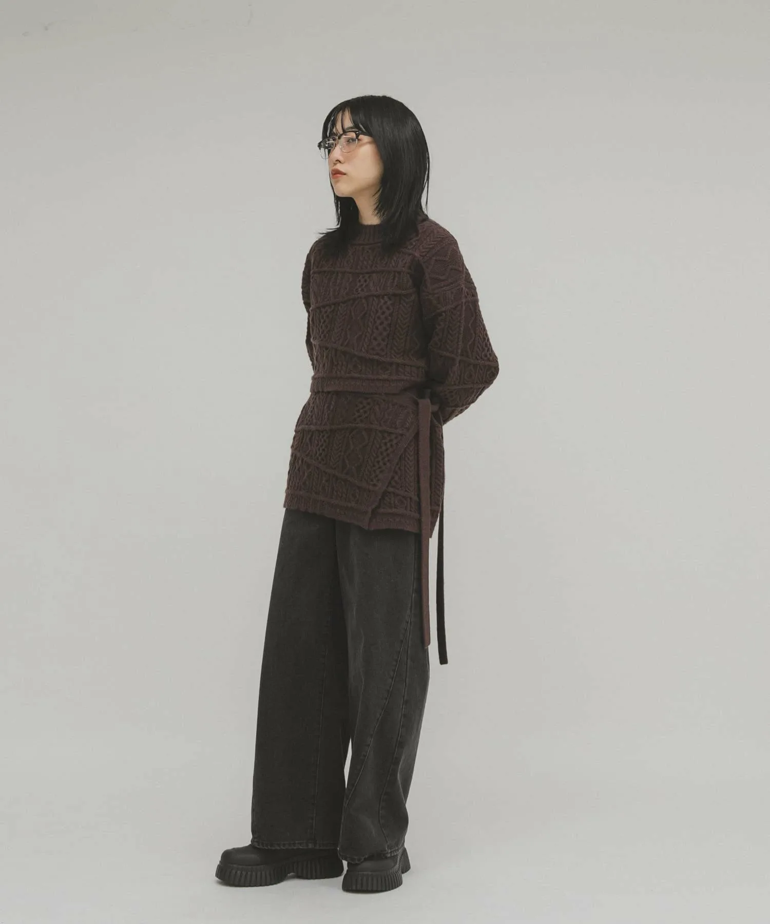 Эта юбка-обертка создает свежий образ, просто накинув ее поверх джинсов или узких брюк. Она имеет тот же дизайн, что и короткая вязаная юбка MIX Cable Short Knit (KBA7-22R330), поэтому мы рекомендуем носить их в комплекте.