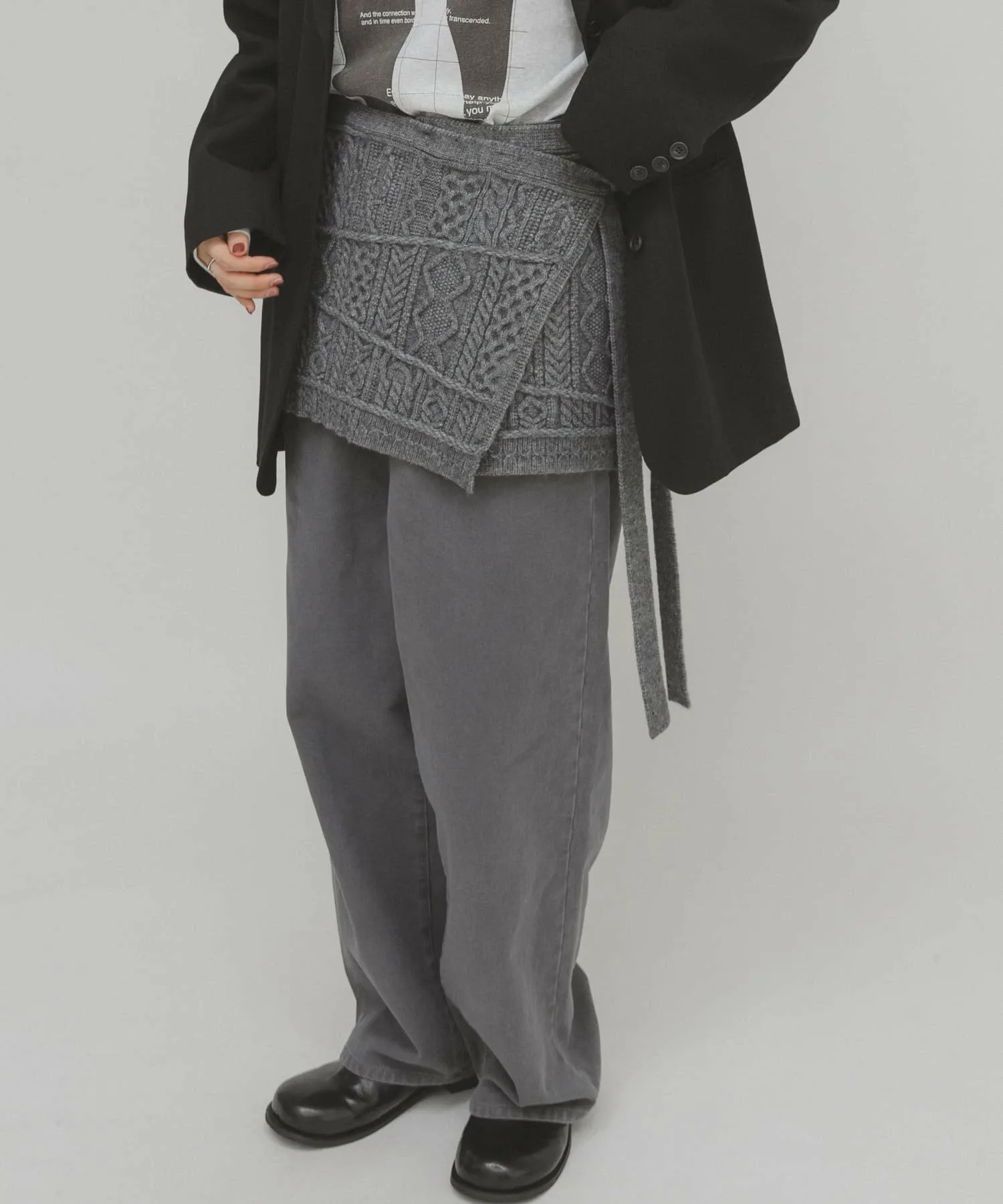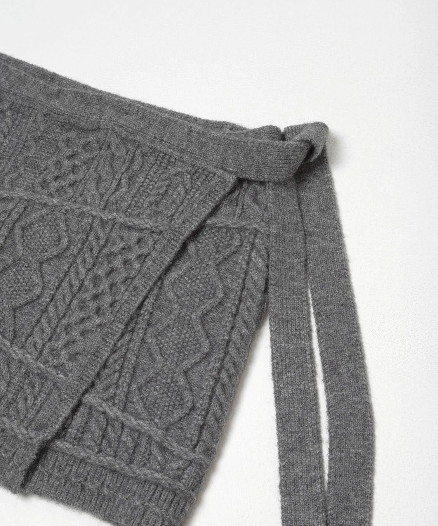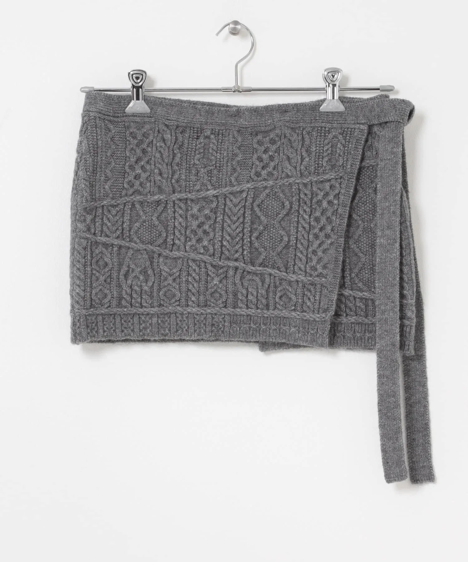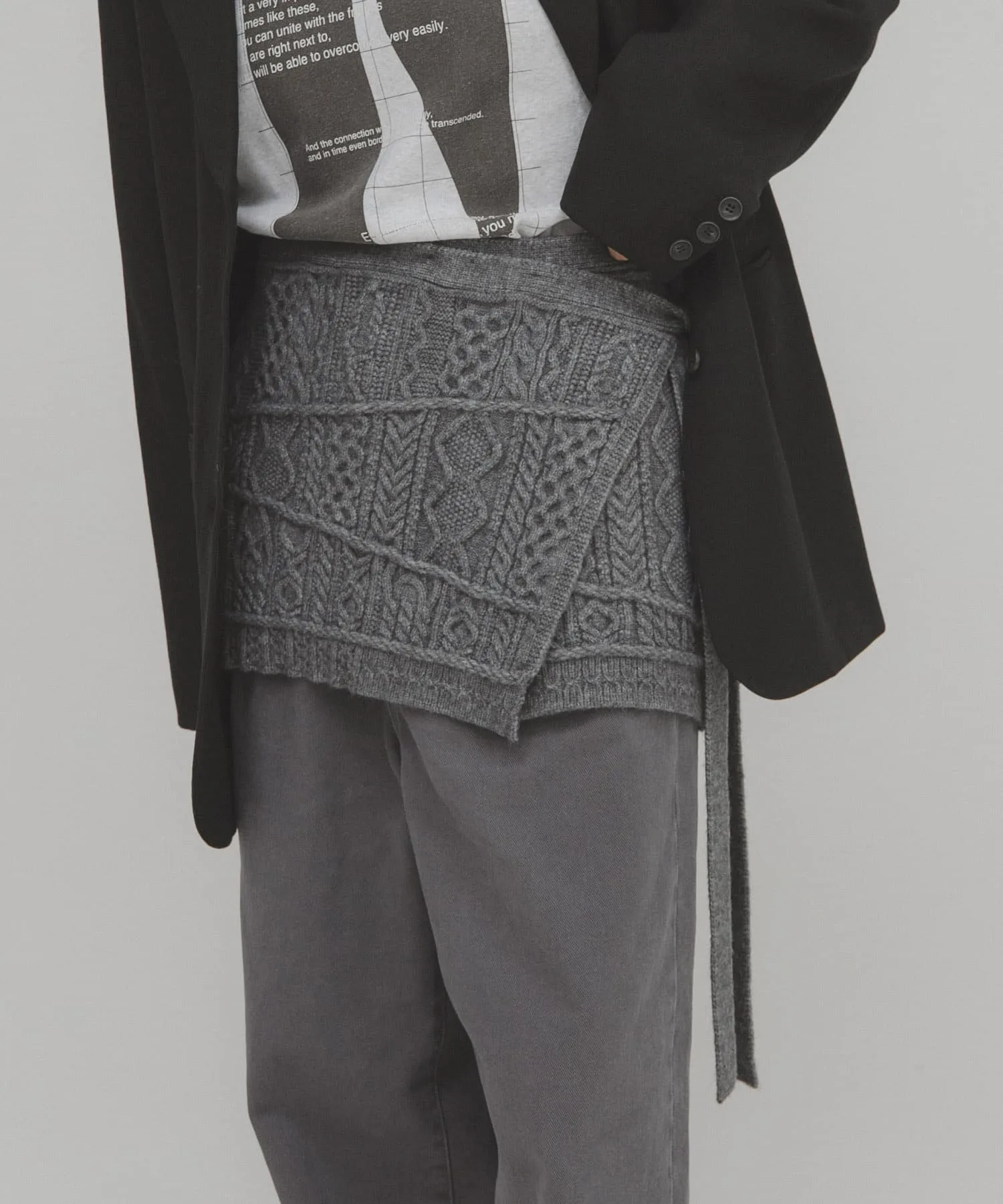Эта юбка-обертка создает свежий образ, просто накинув ее поверх джинсов или узких брюк. Она имеет тот же дизайн, что и короткая вязаная юбка MIX Cable Short Knit (KBA7-22R330), поэтому мы рекомендуем носить их в комплекте.