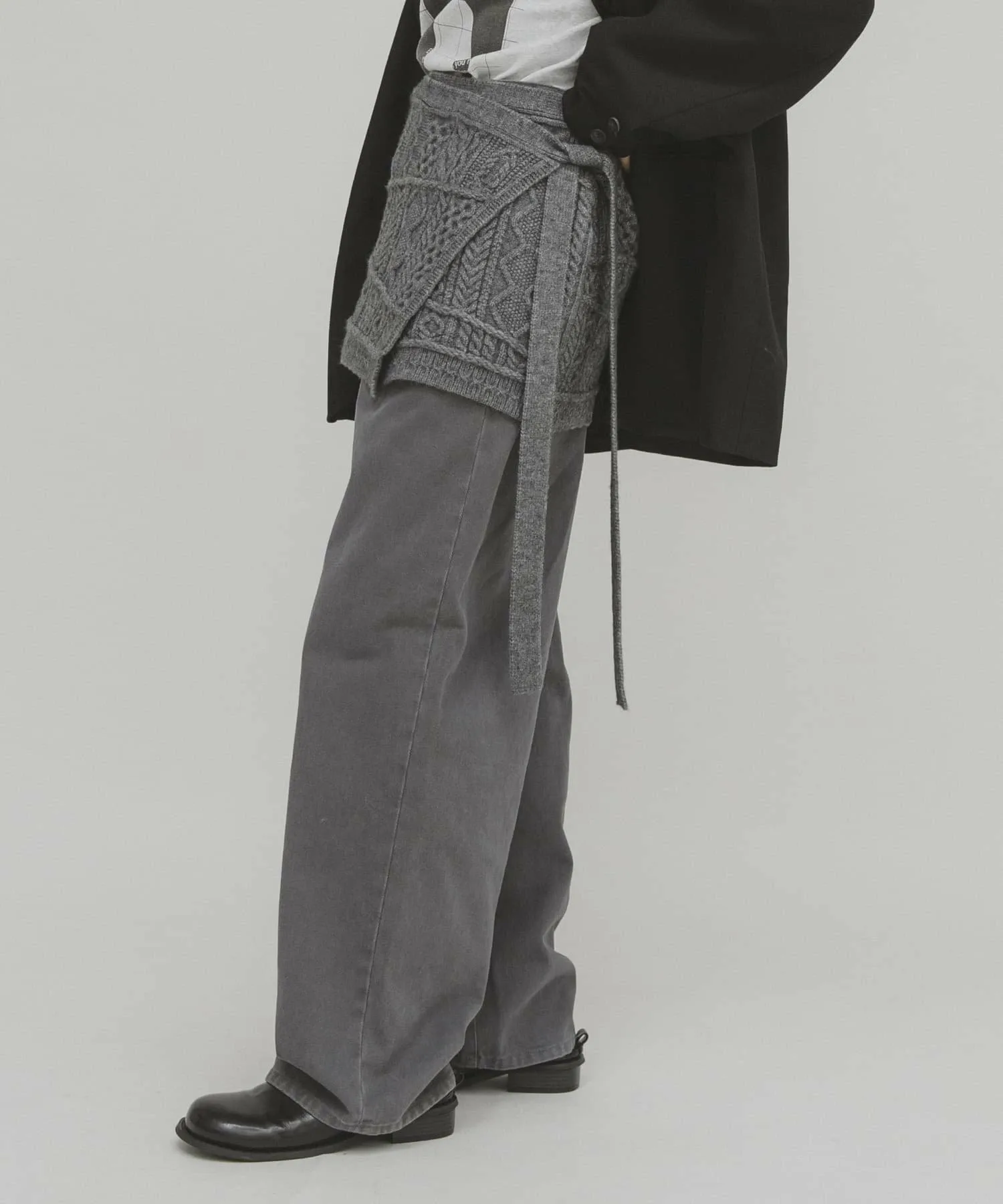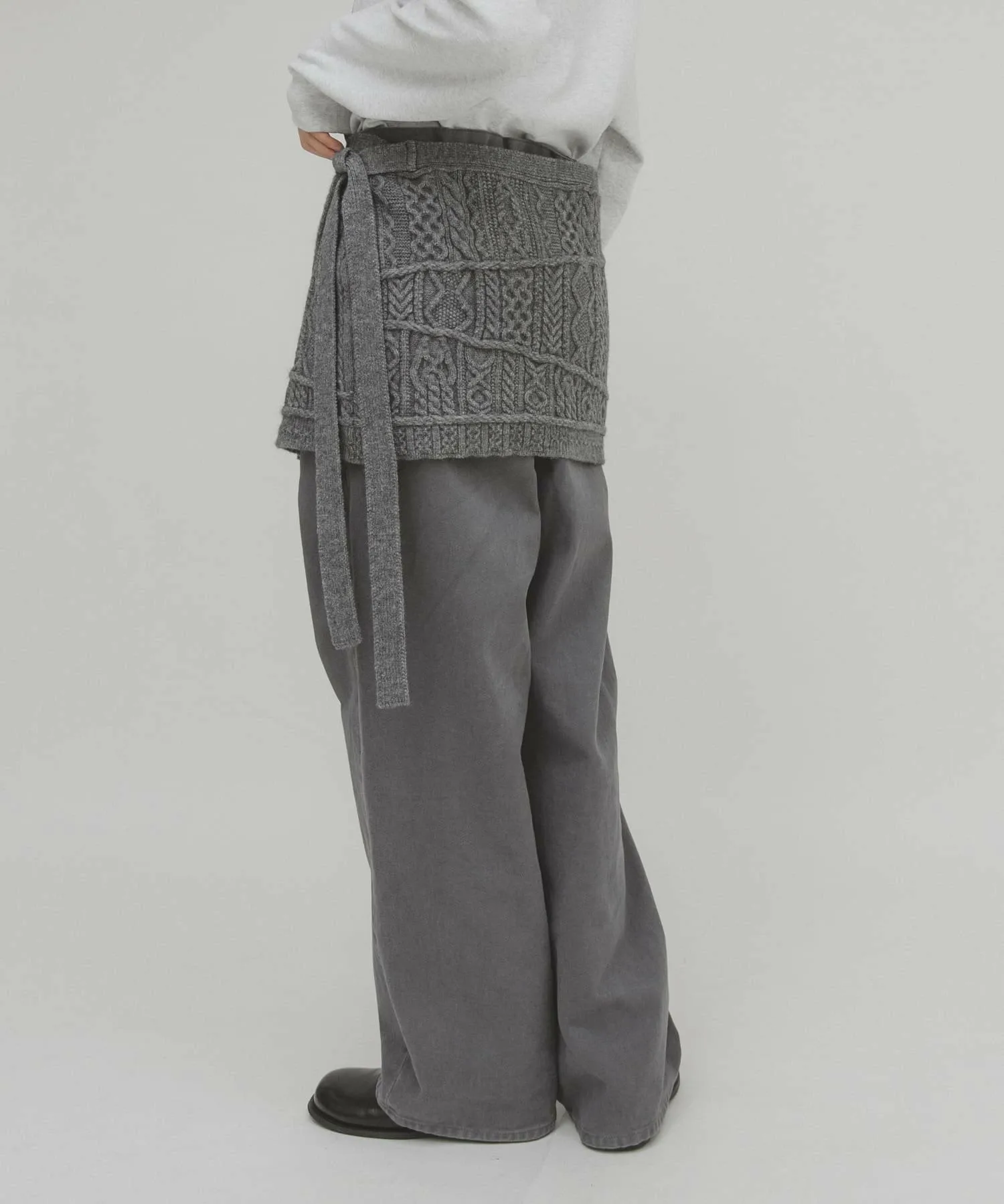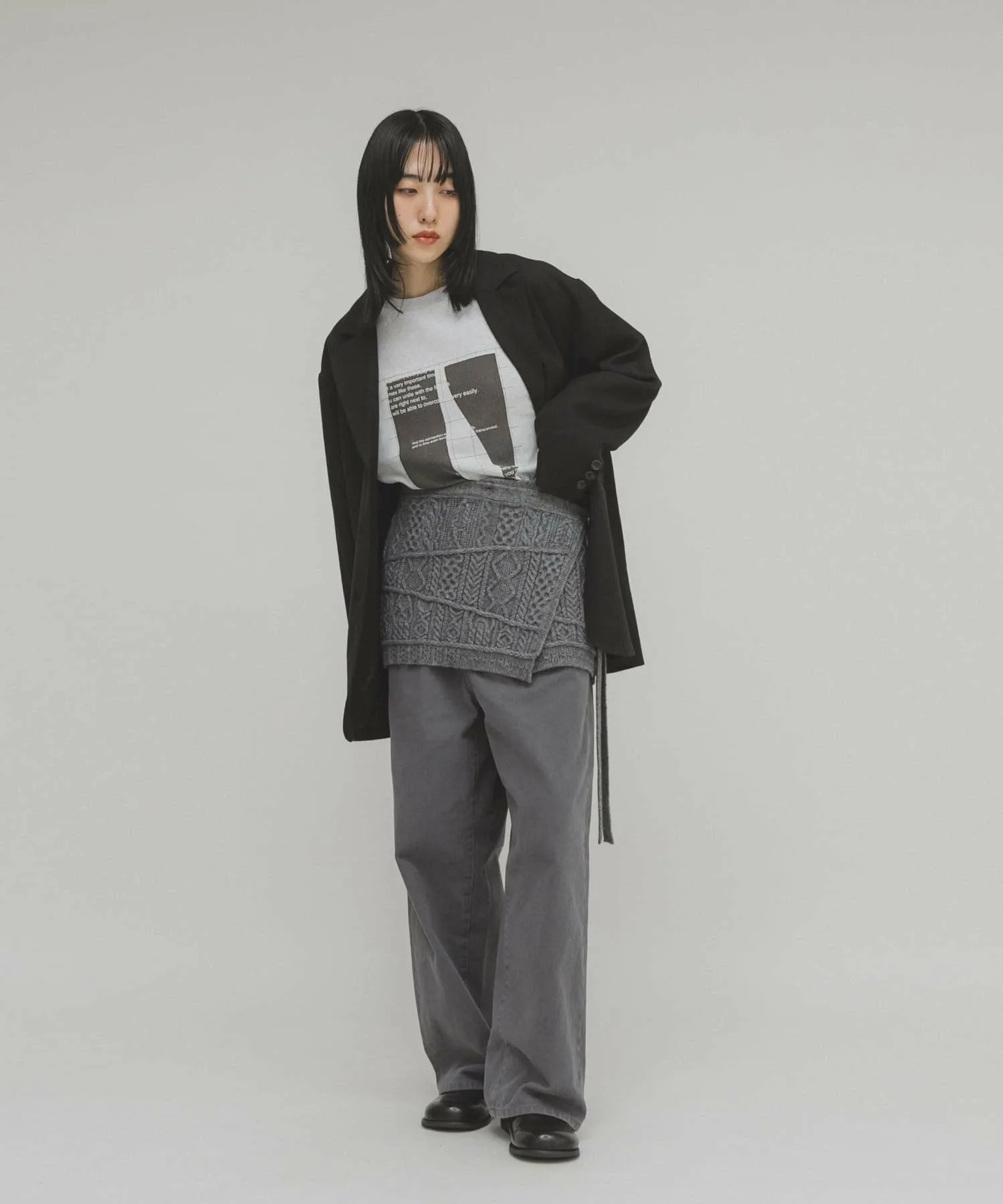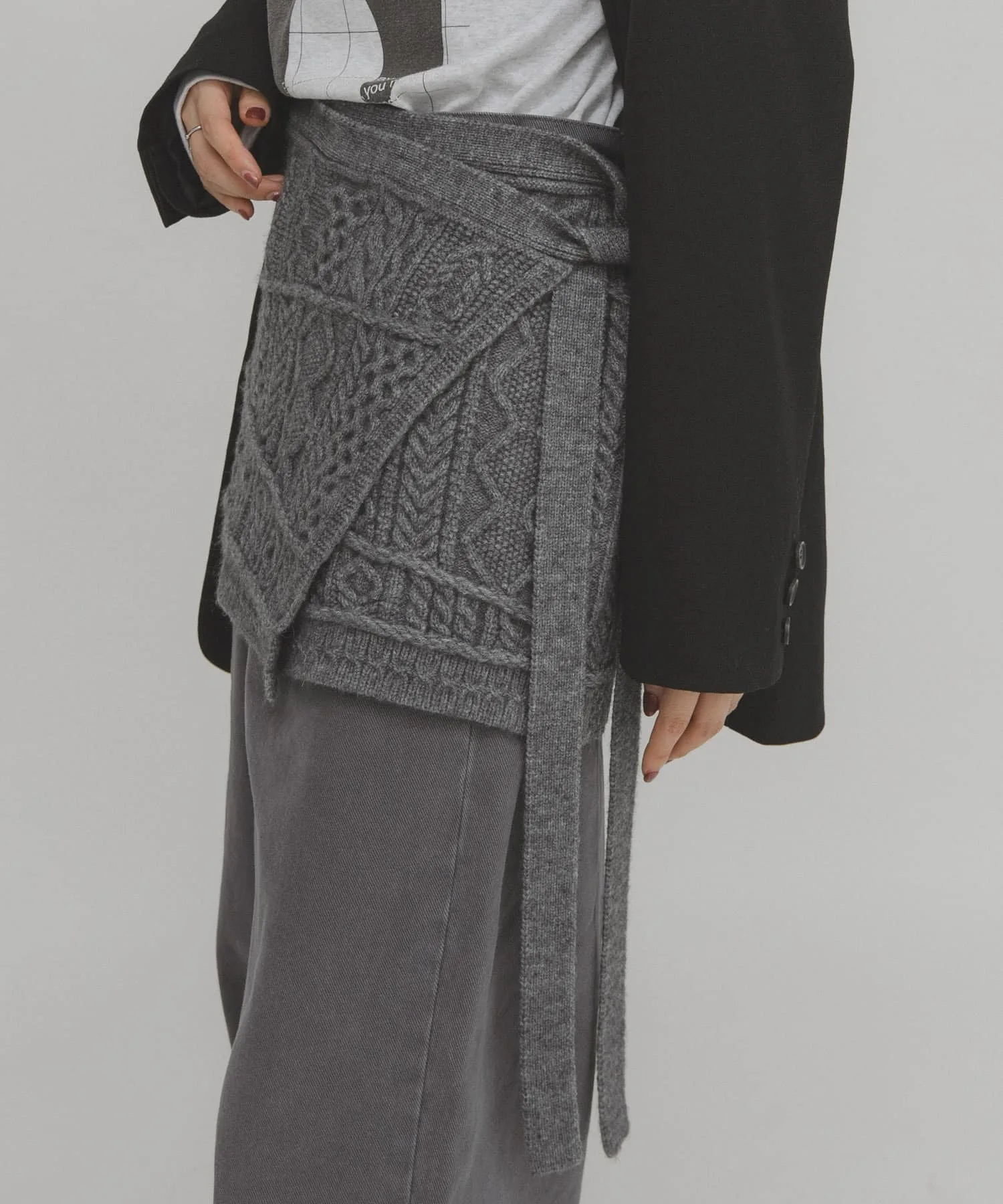 Эта юбка-обертка создает свежий образ, просто накинув ее поверх джинсов или узких брюк. Она имеет тот же дизайн, что и короткая вязаная юбка MIX Cable Short Knit (KBA7-22R330), поэтому мы рекомендуем носить их в комплекте.