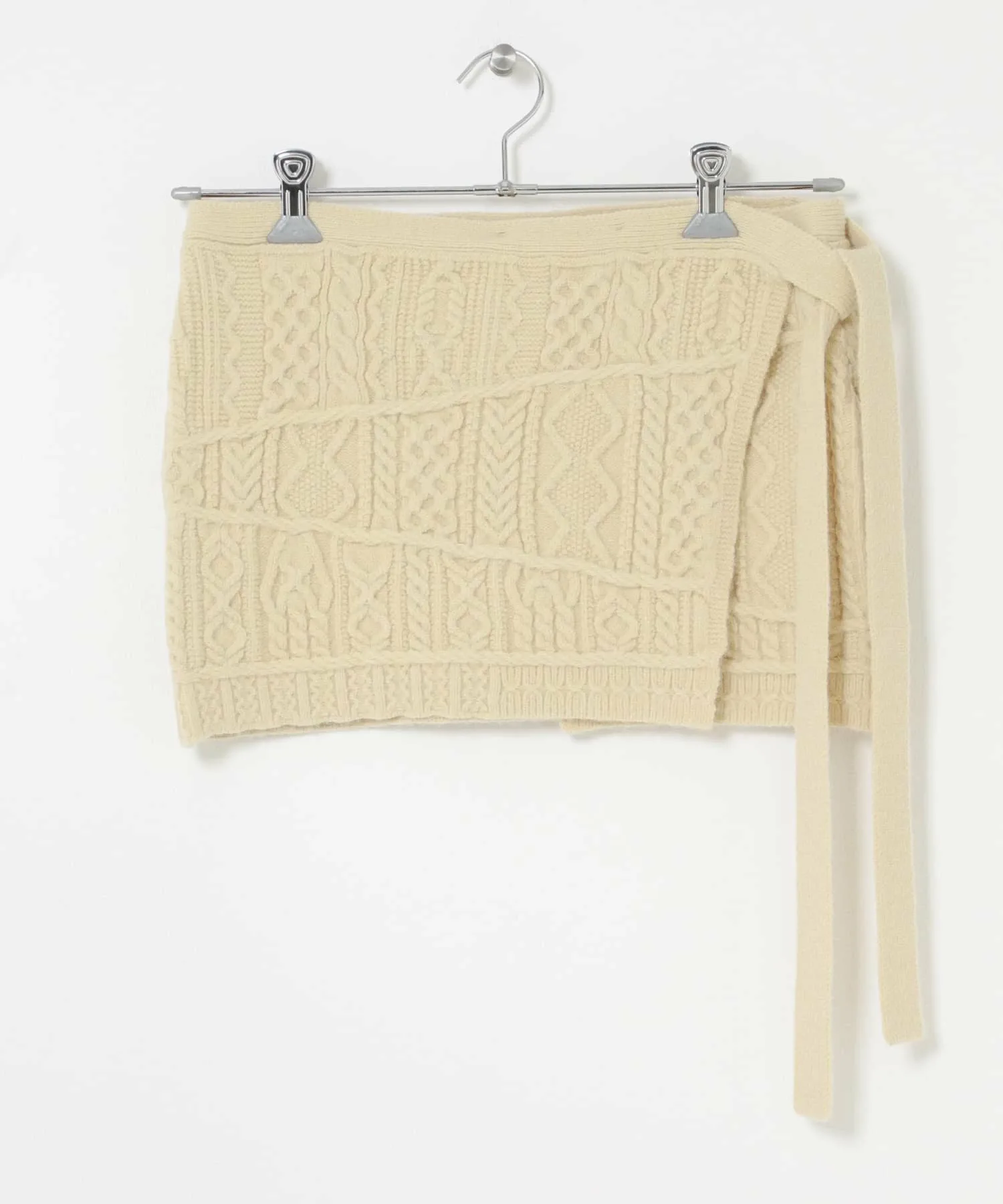 Эта юбка-обертка создает свежий образ, просто накинув ее поверх джинсов или узких брюк. Она имеет тот же дизайн, что и короткая вязаная юбка MIX Cable Short Knit (KBA7-22R330), поэтому мы рекомендуем носить их в комплекте.