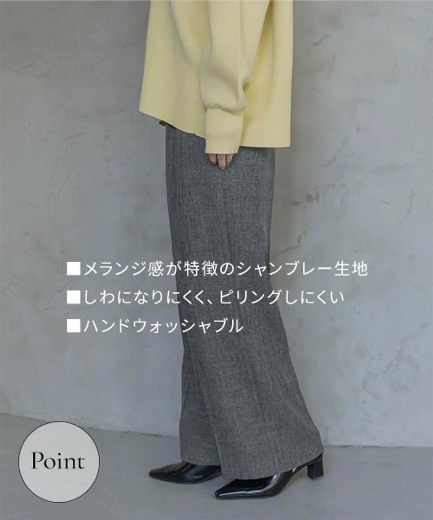 Материал имеет драпировку, благодаря чему ноги выглядят прямыми, и мы сосредоточились на создании красивого силуэта.