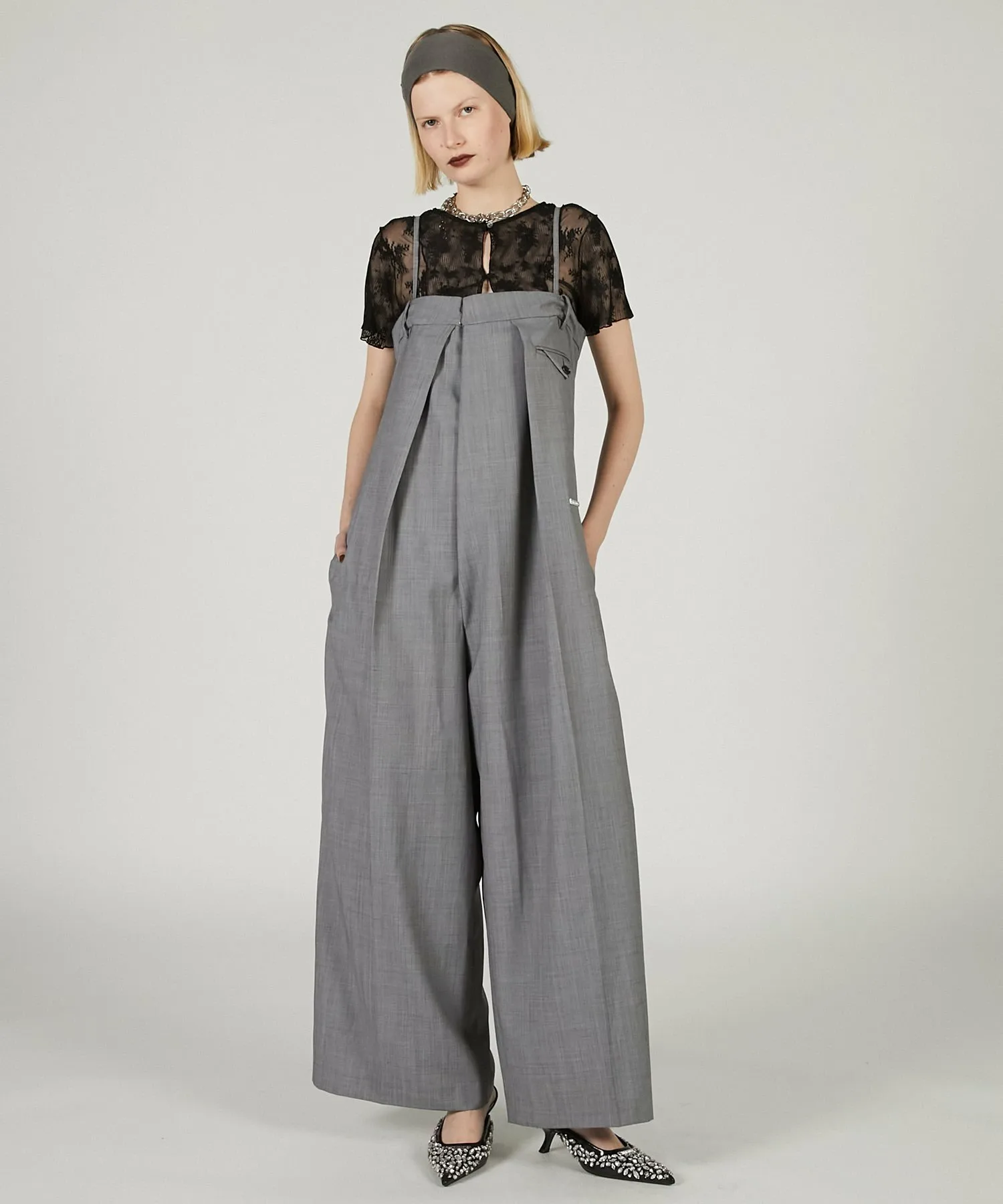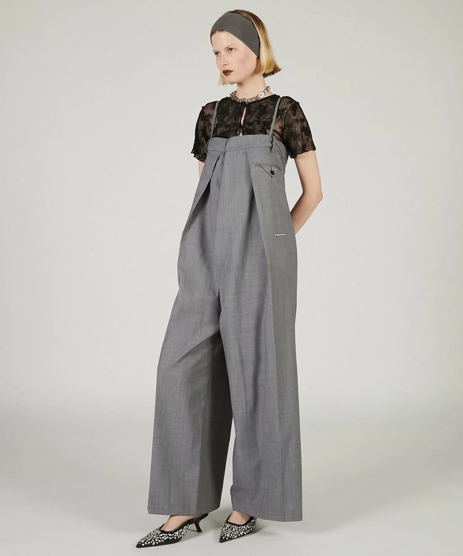 Бесформенный дизайн придает ему женственный вид, а широкий силуэт штанин – умеренно грубоватый.