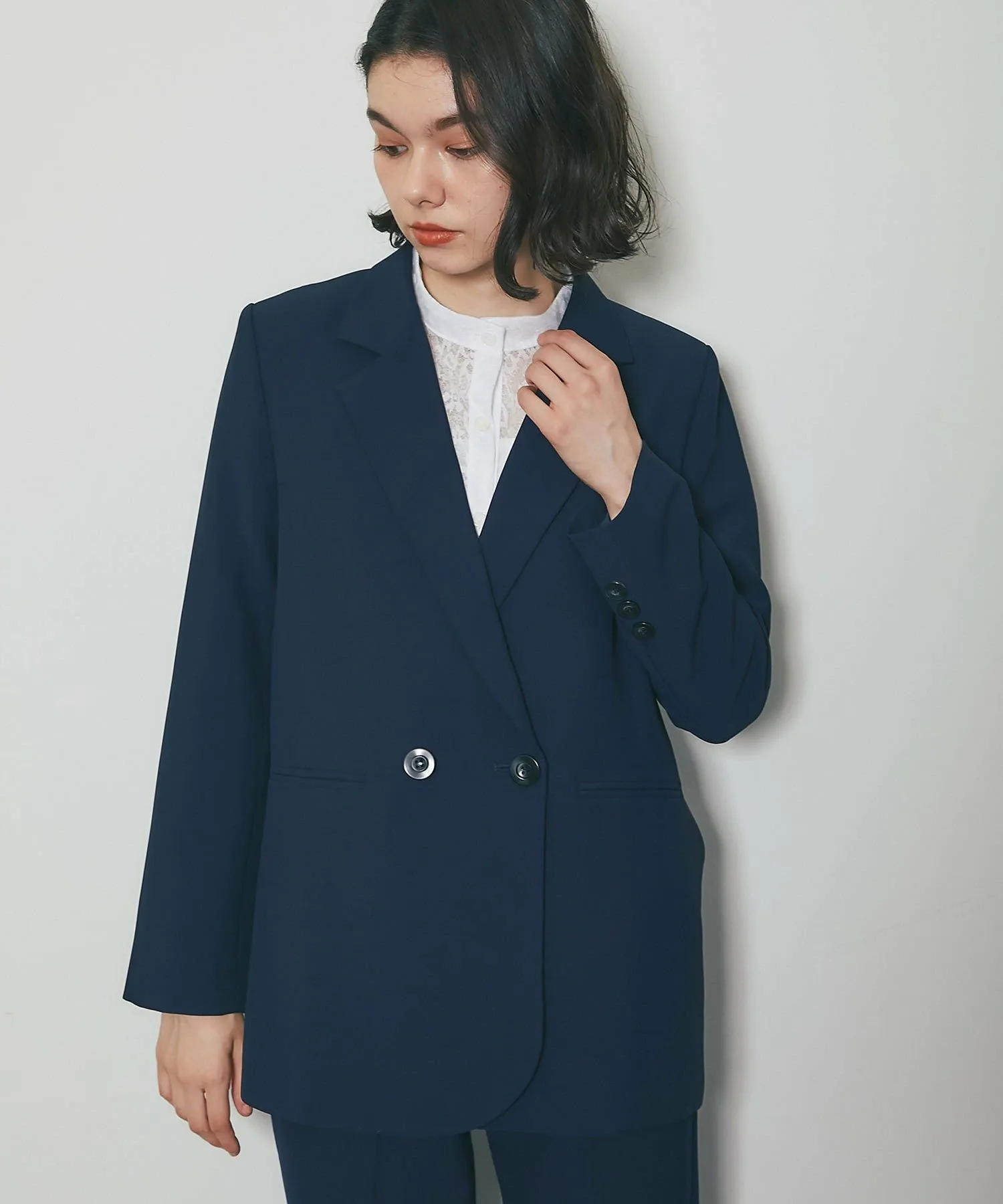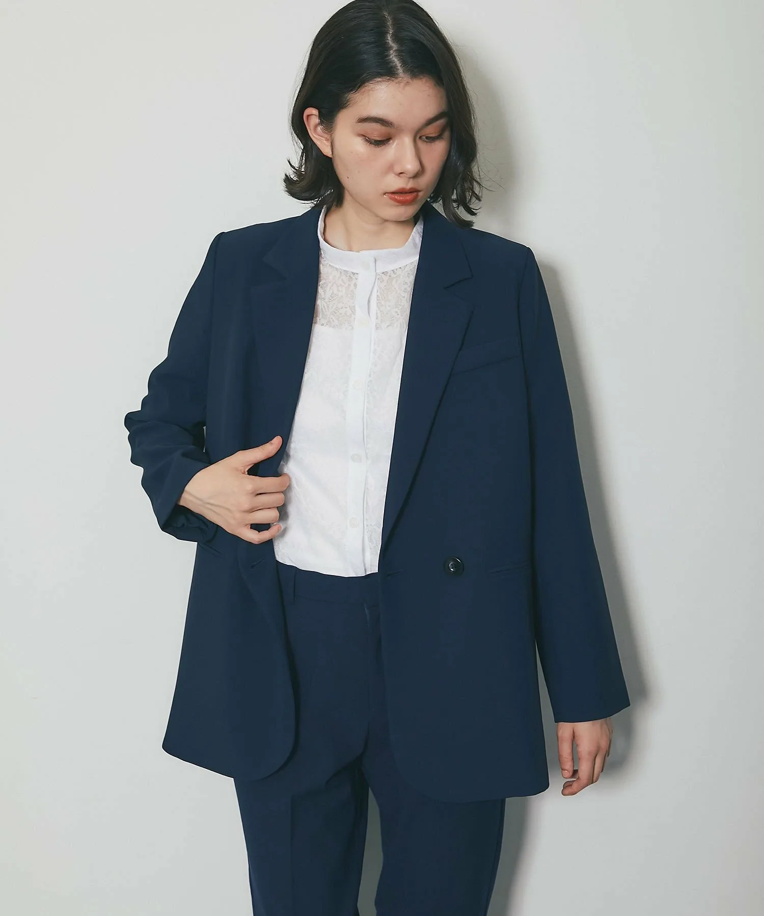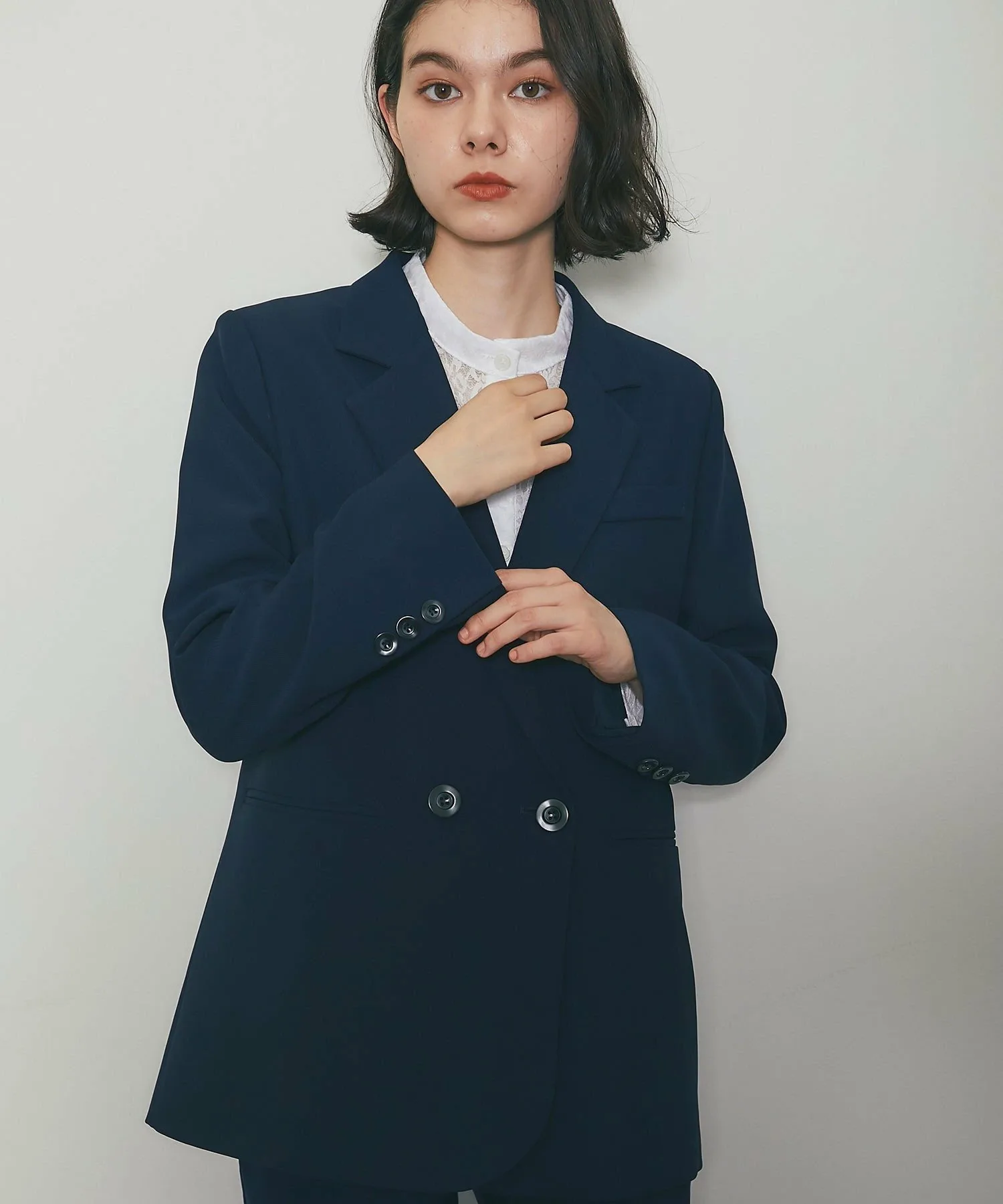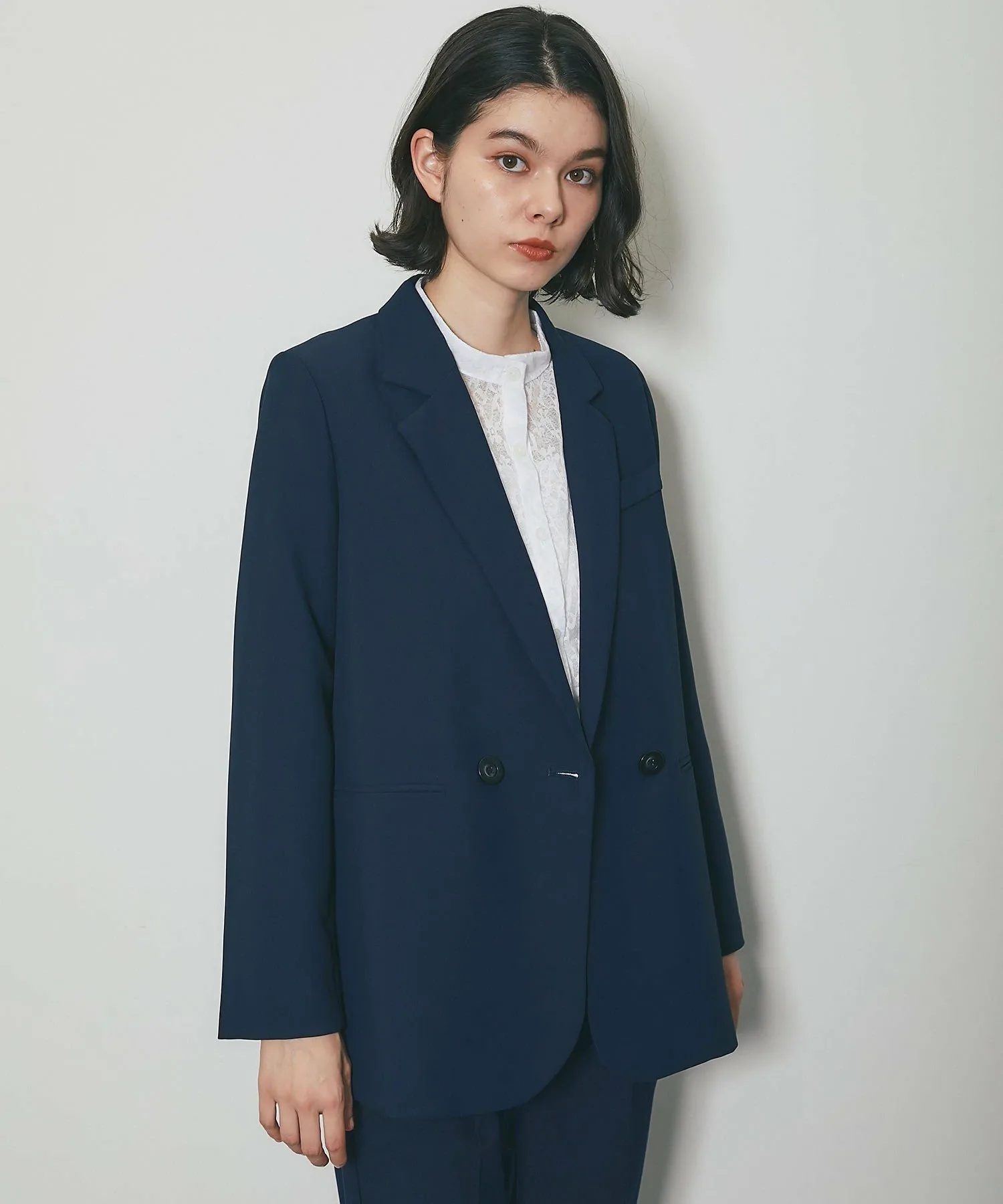 ●Свободный силуэт, сохраняющий стиль преппи без сужения, с четкими линиями плеч, которые имеют подкладку для элегантного завершения.
