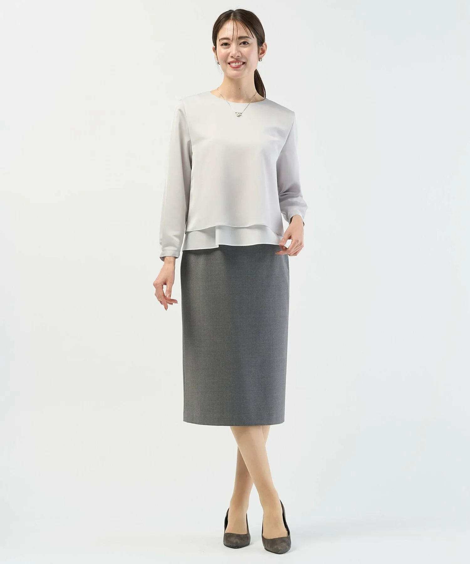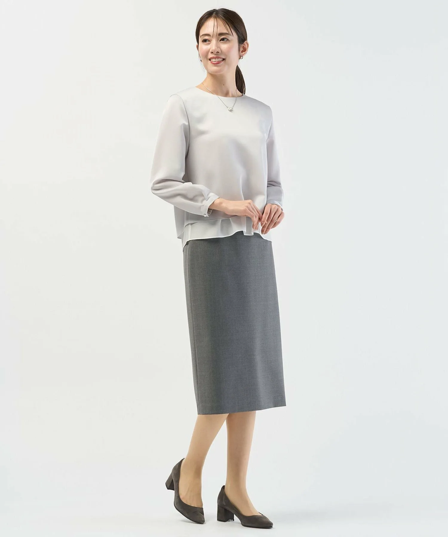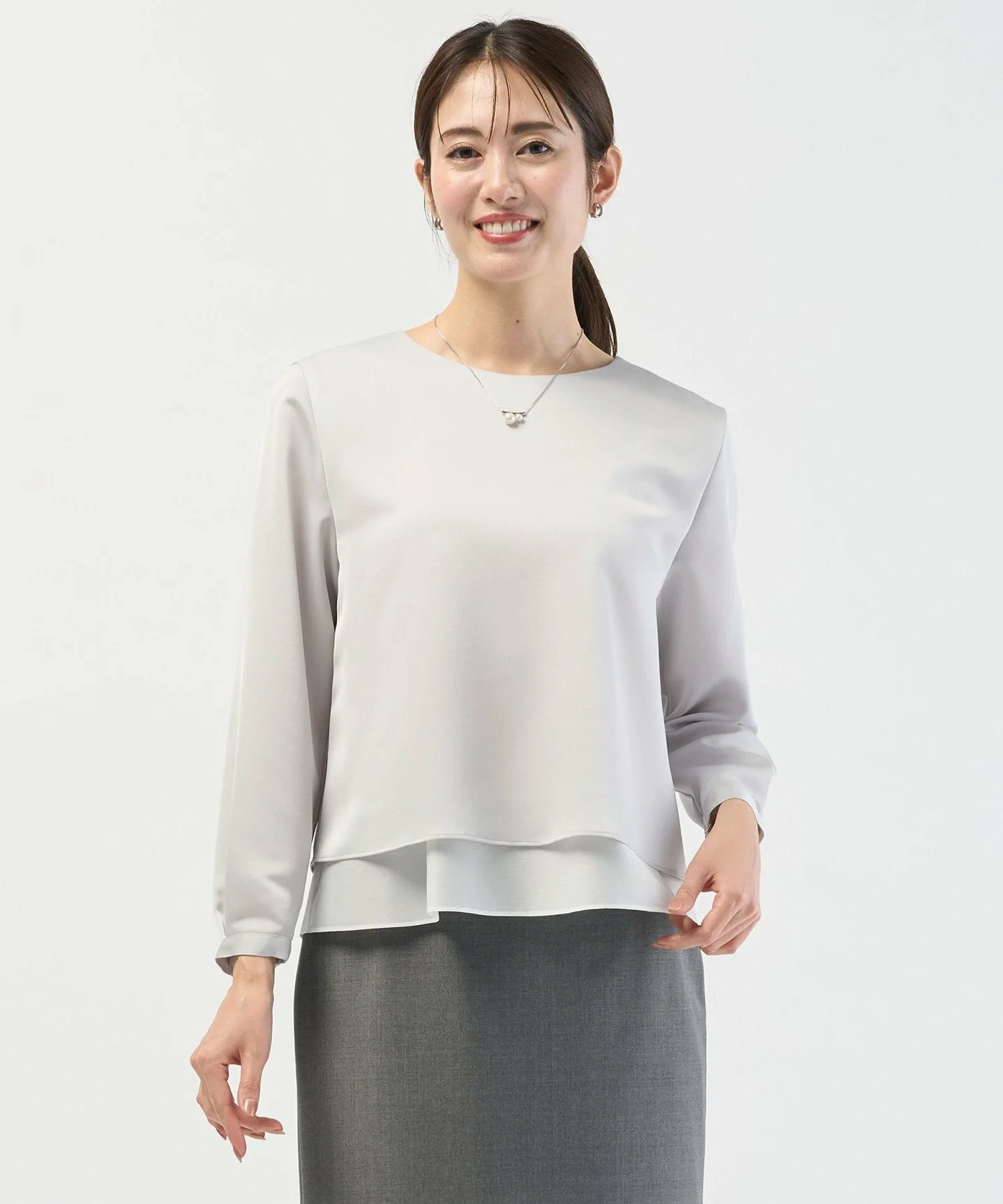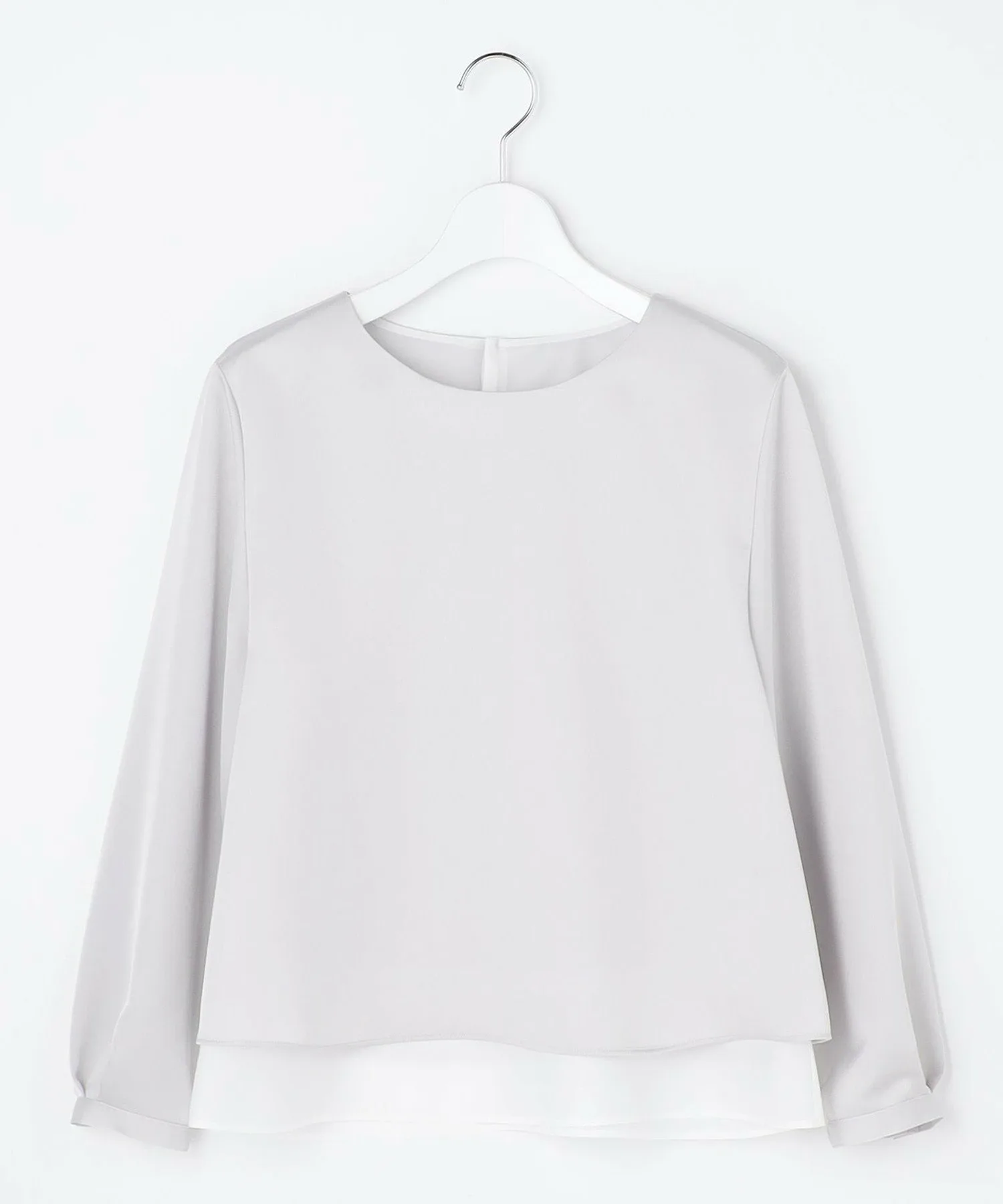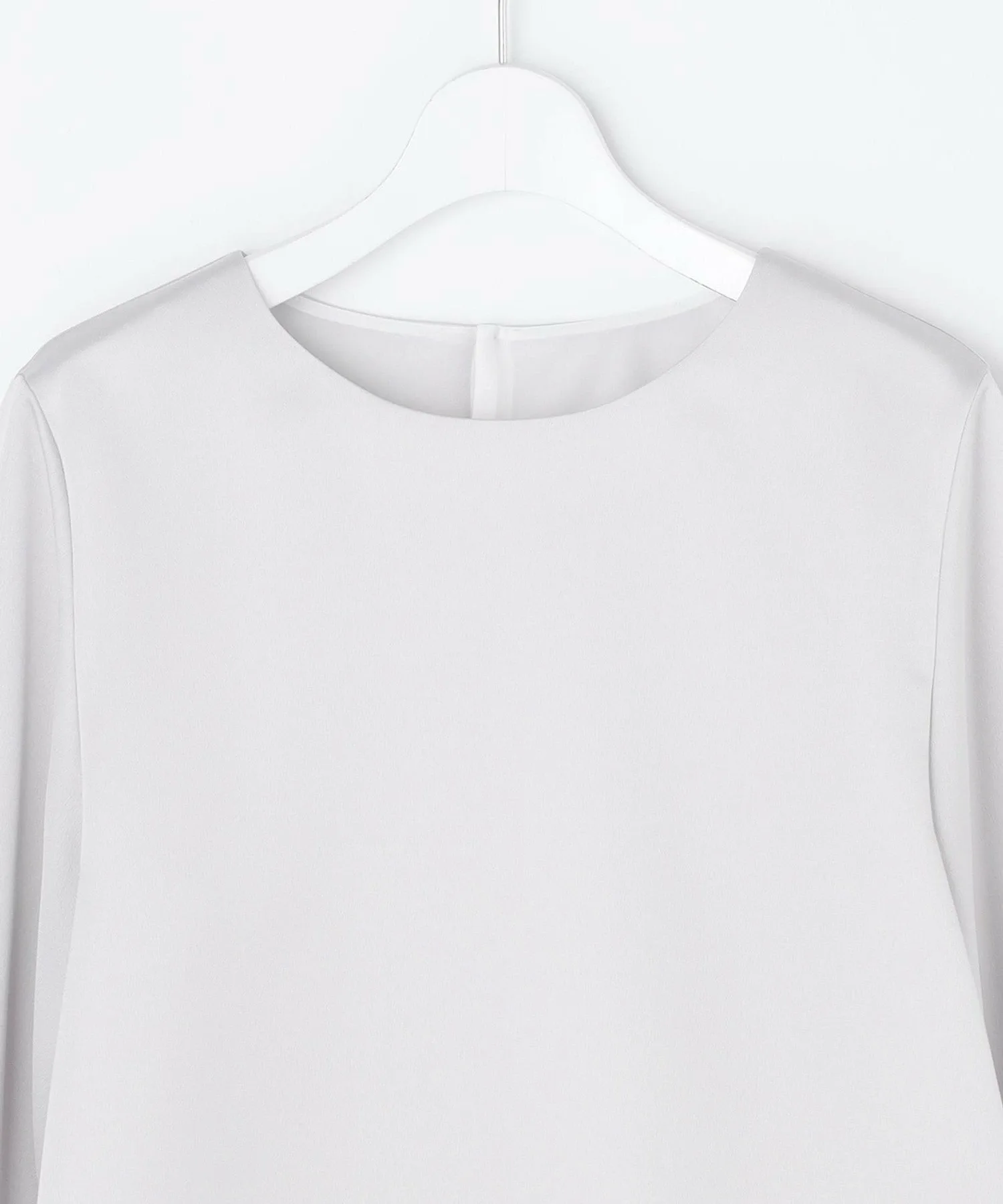 Дизайн: Простой дизайн этого круглого топа подчеркивает красоту материала. Слегка прозрачная ткань по низу создает многослойный образ, добавляя нотку элегантности. Это универсальная вещь, которую можно носить как самостоятельно, так и под пиджаком. Рукава заправлены для естественной пышности, ненавязчиво прикрывая руки. Маленькие жемчужные пуговицы на манжетах добавляют нотку элегантности. Доступен в двух цветах: чистый, освежающий белый (#001) и приглушенный светло-серый (#003).