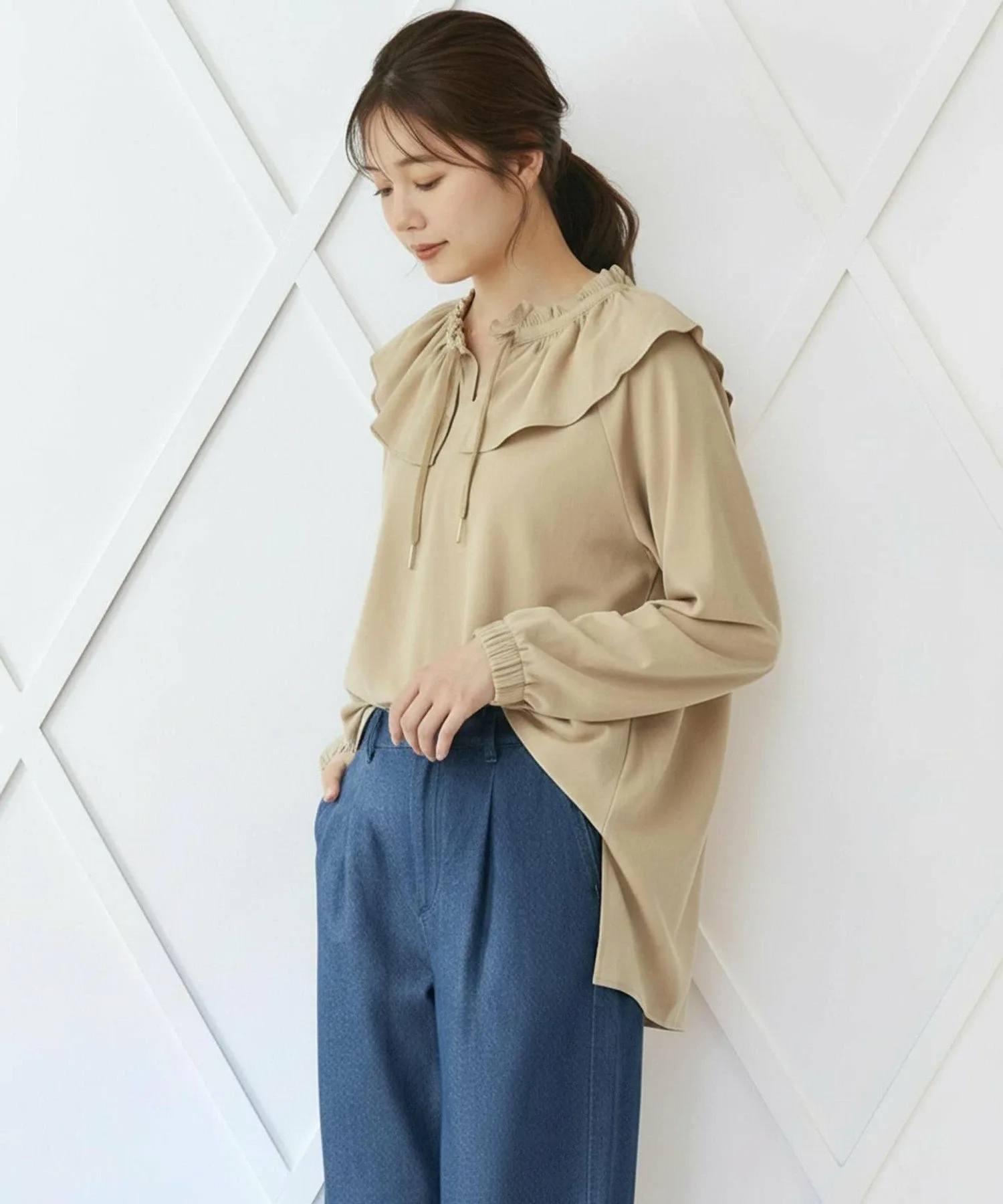 Эта блузка идеально подходит для повседневной носки, с оборками вокруг лица и накидкой для стильного образа.