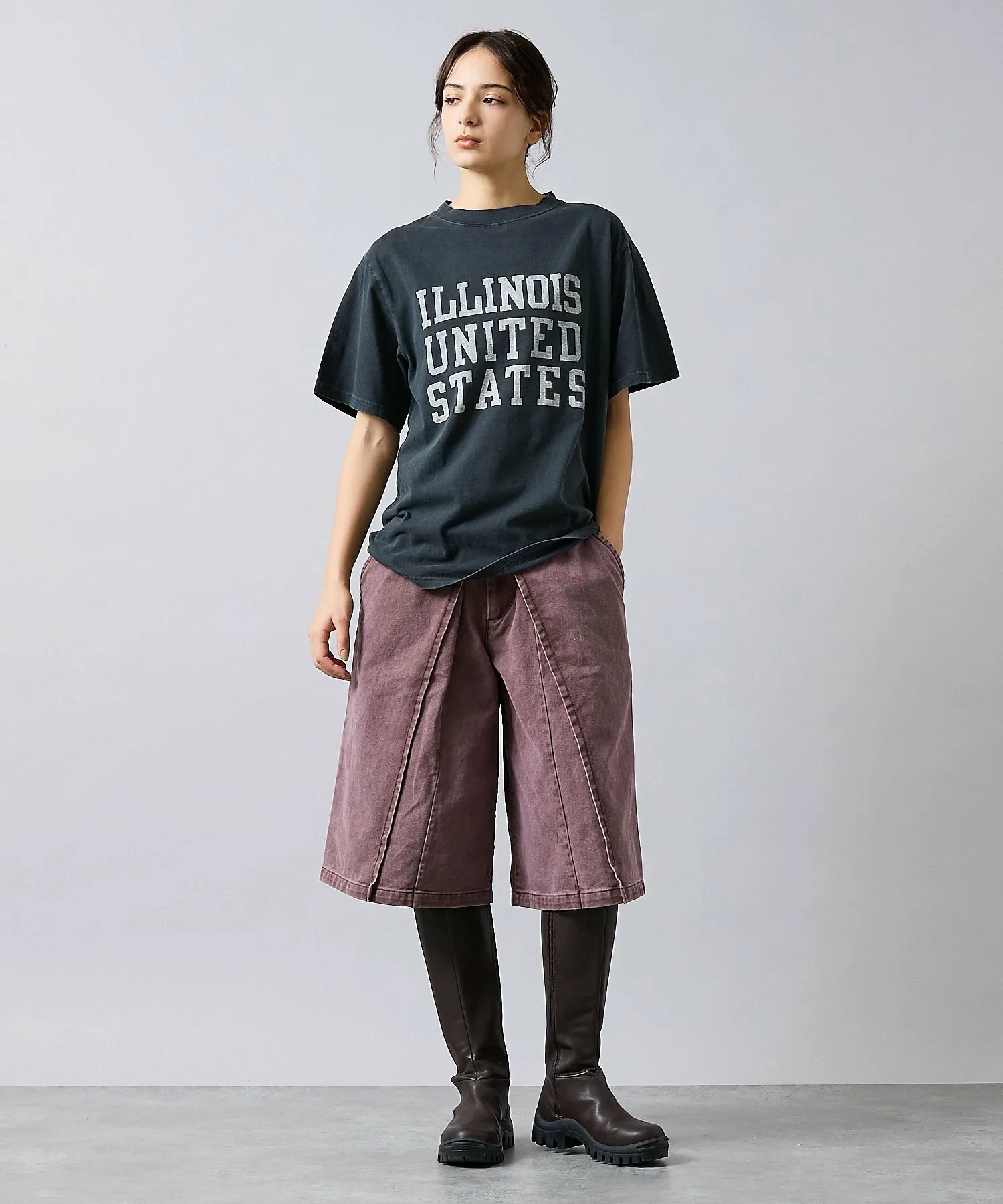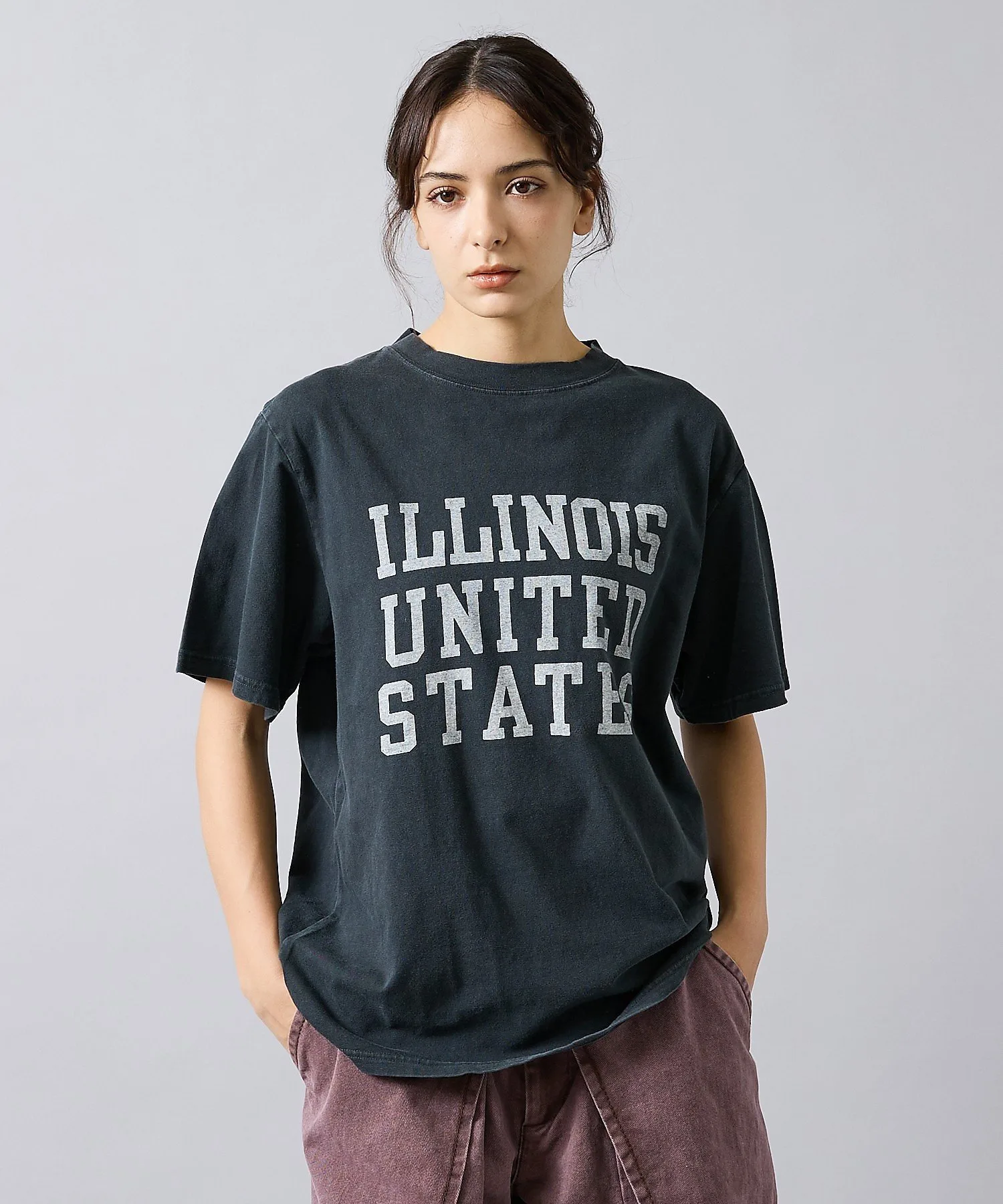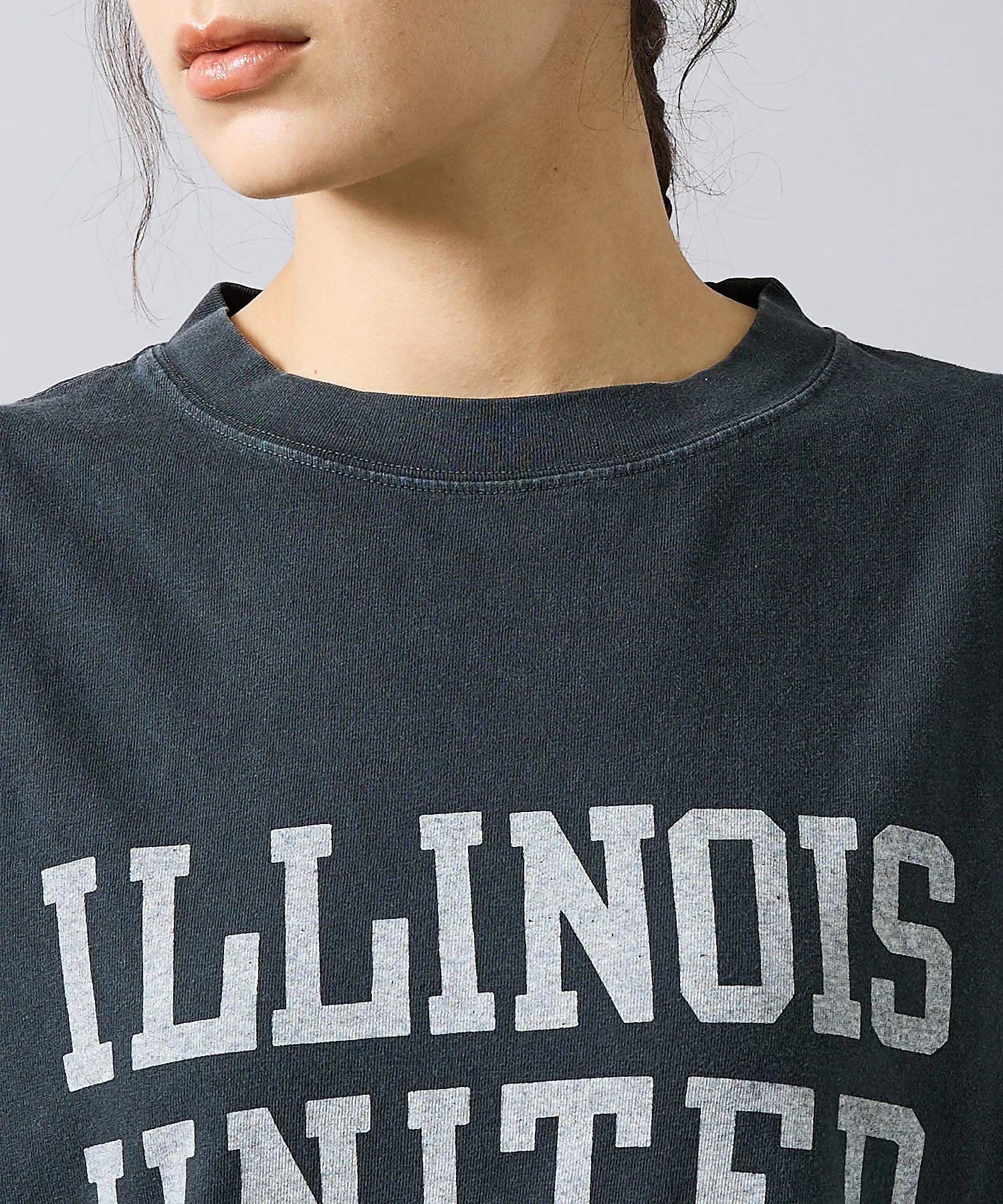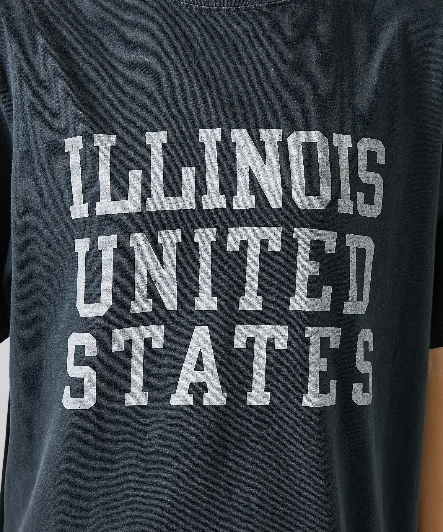 Логотип ILLINOIS, напоминающий футболки колледжей 90-х, и эффект потертости создают уличный стиль.