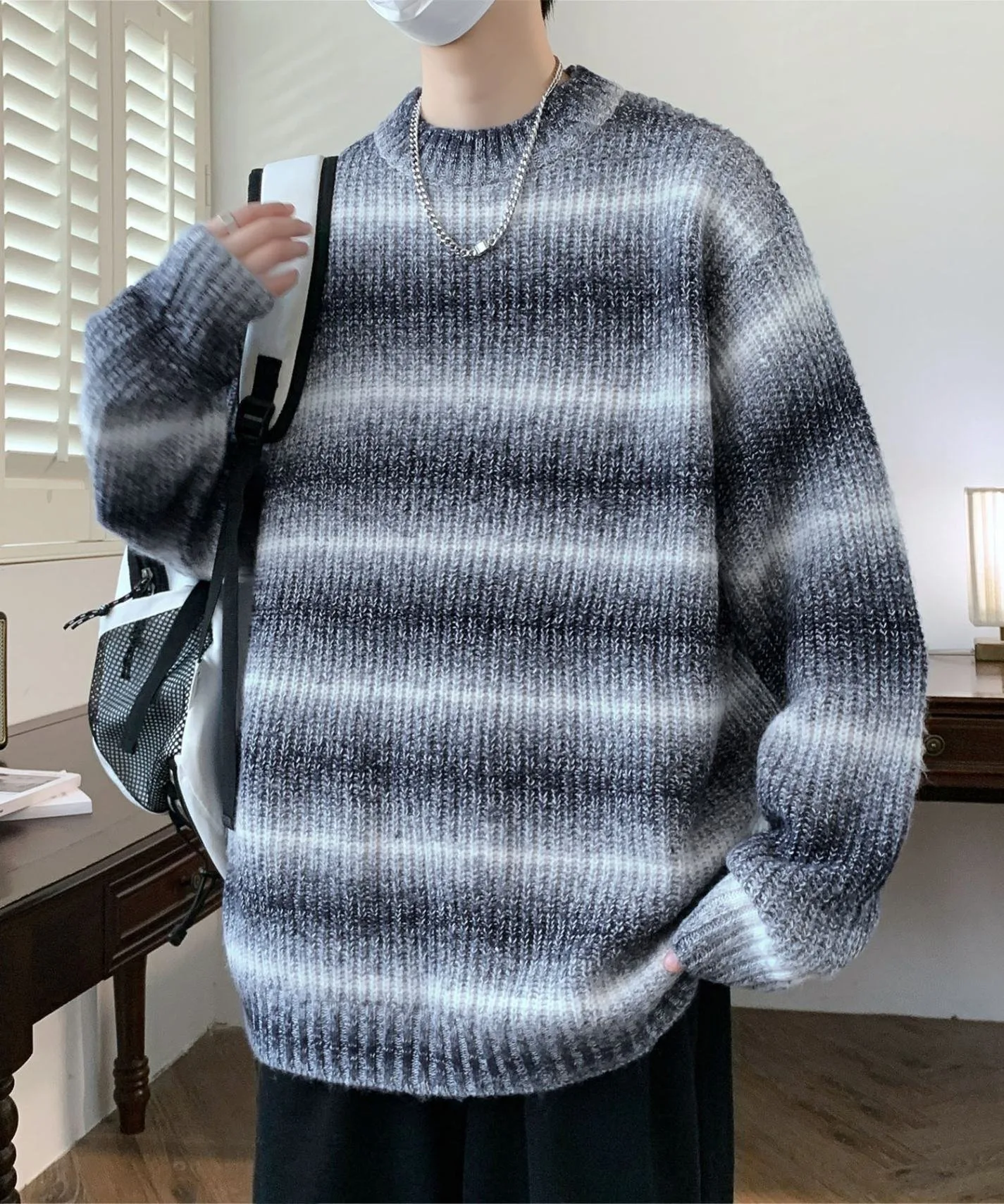 Пуловер в полоску с градиентным рисунком Aimoha Mens, цвет Navy 4 623₽