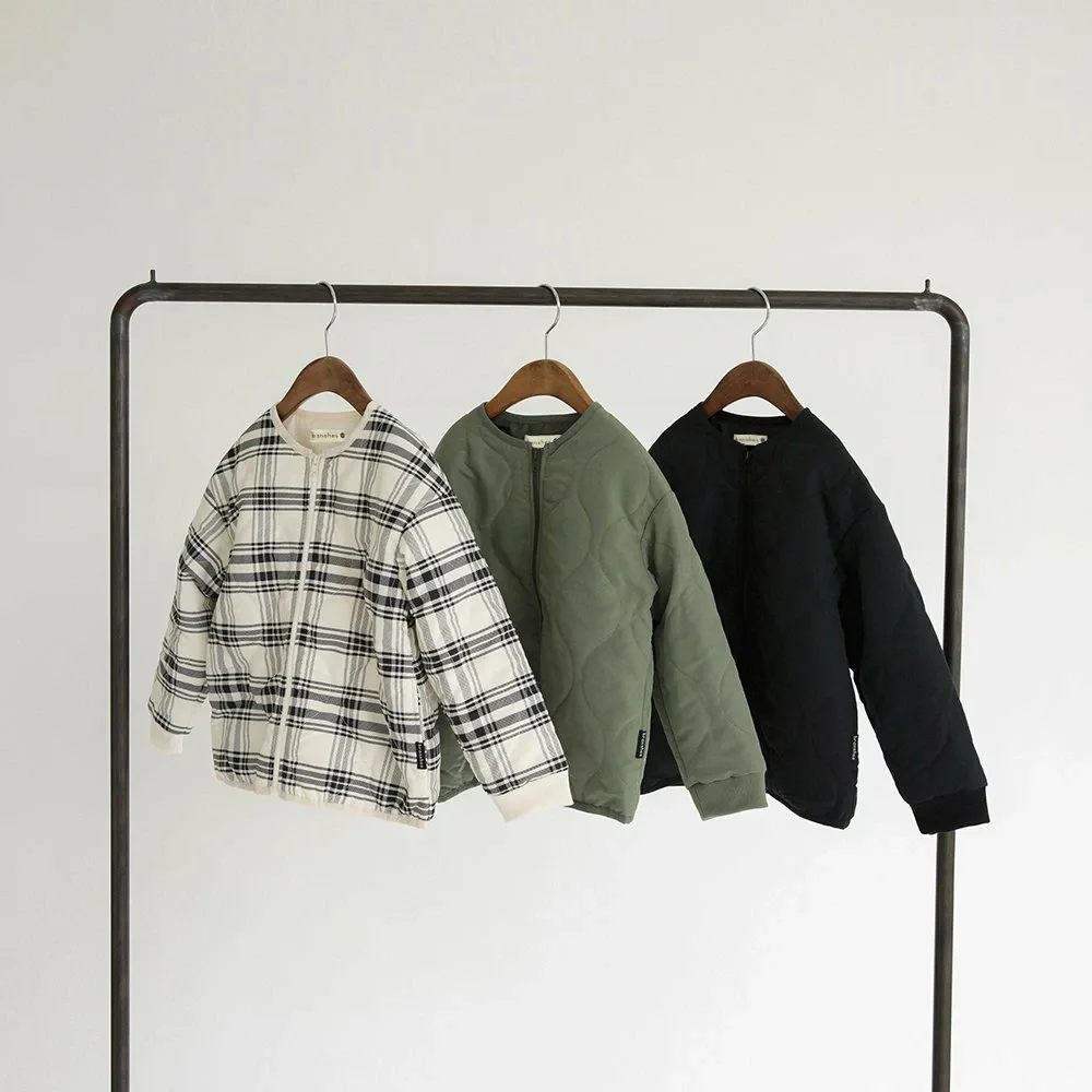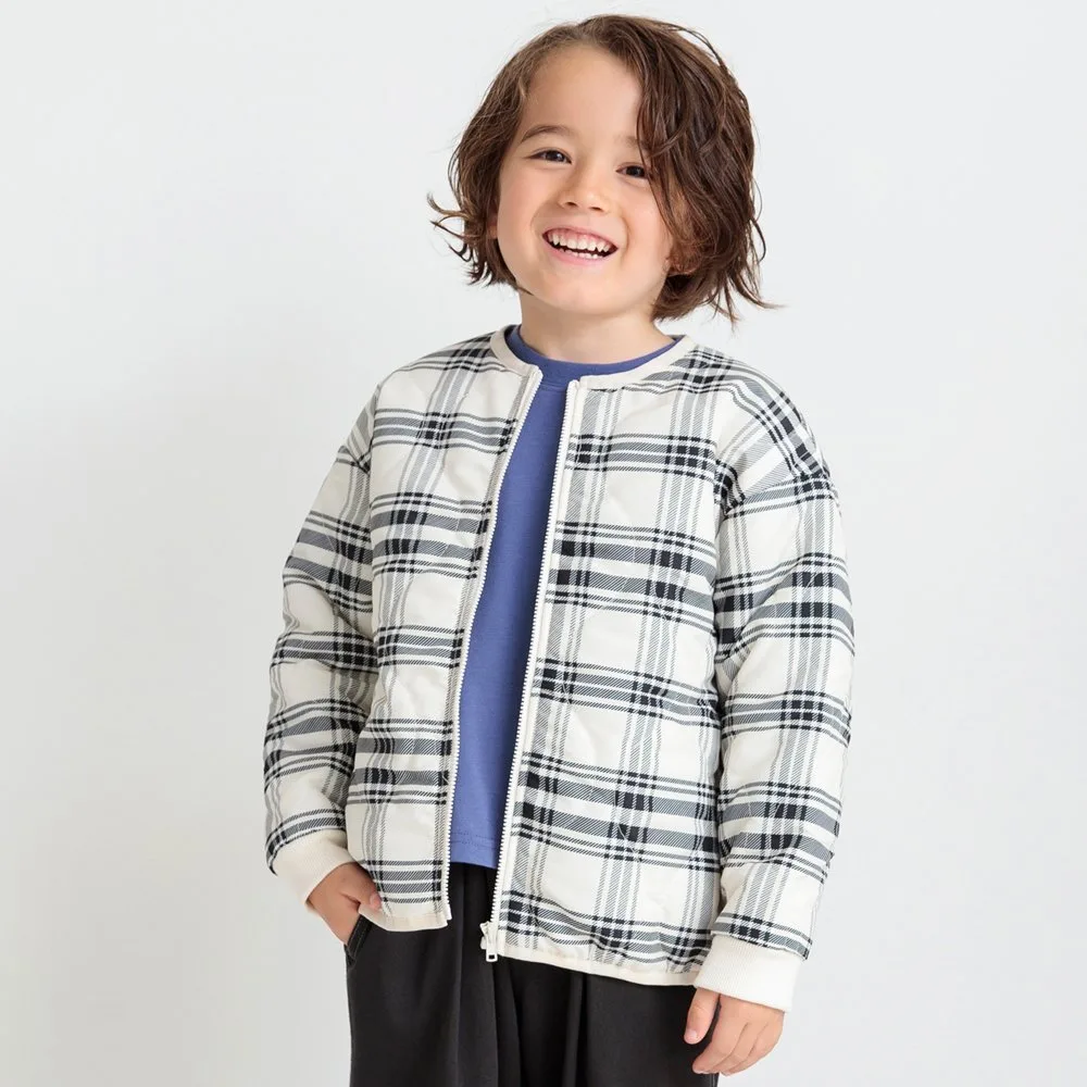 Эта легкая, теплая, стеганая куртка без воротника выполнена с модной волнообразной стежкой.