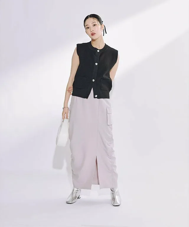 Эта вещь подчеркнет вашу утонченную женственность благодаря сборкам по бокам и стройнящему силуэту I-образной формы. Разрез по низу спереди добавляет расслабленности и элегантности. Дизайн в стиле карго делает эту вещь модной.