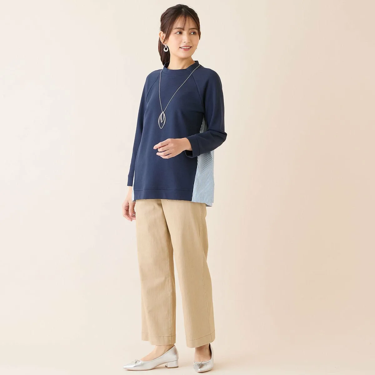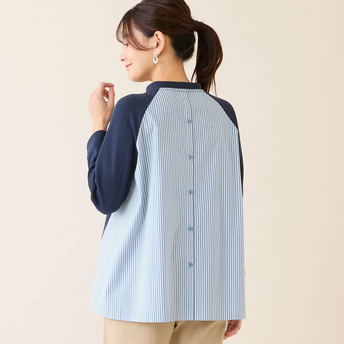 Пуловер из разных материалов, меняющий свой внешний вид спереди и сзади